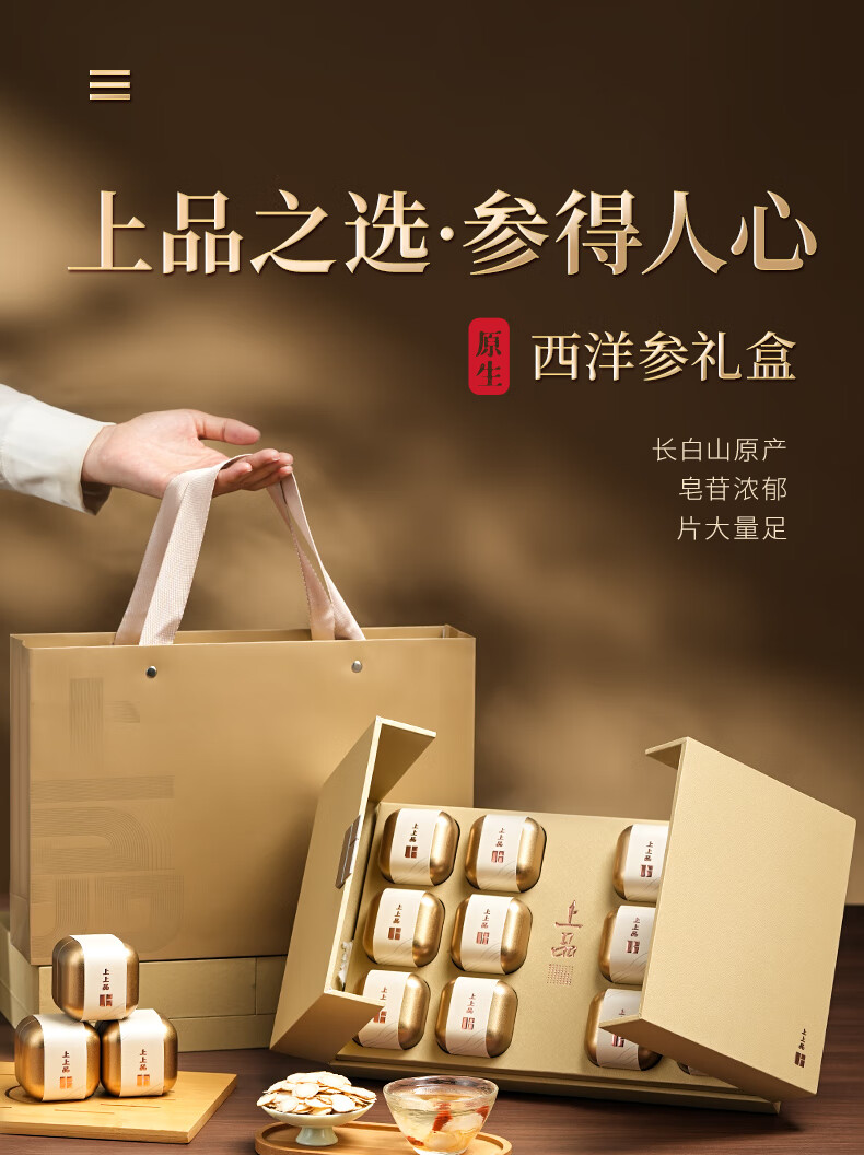 冬海红 西洋参礼盒 长白山花旗参野生地特大片 礼品送长辈客户领导礼物
