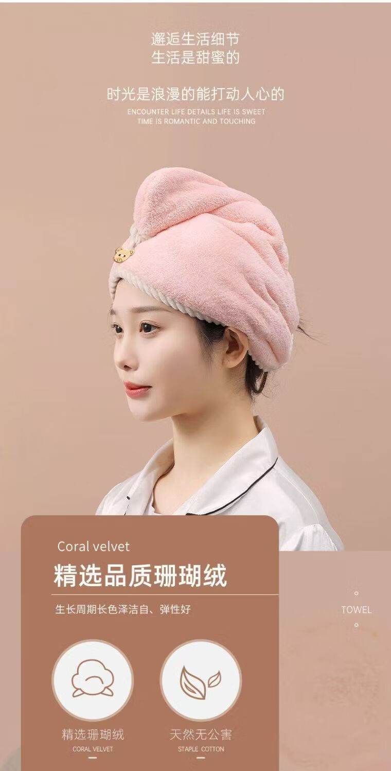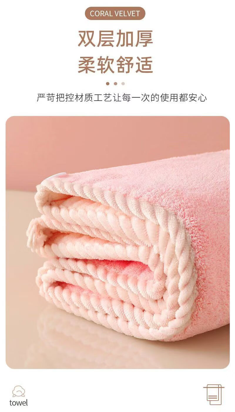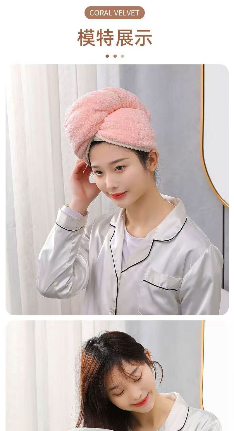 加厚干发帽女60cm长发成人超强吸水新款不掉毛可爱浴帽包头毛巾 升级加厚双层干发帽【粉色】1条