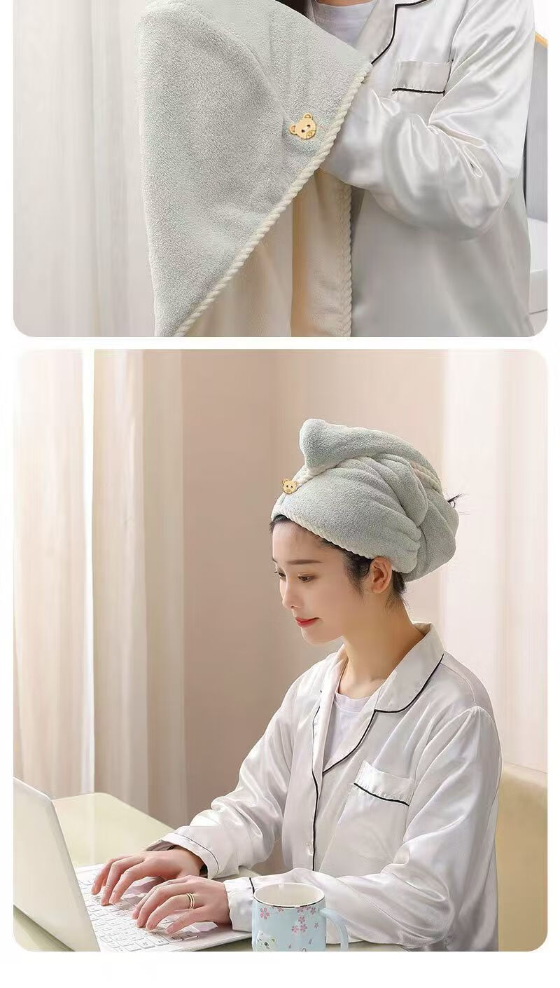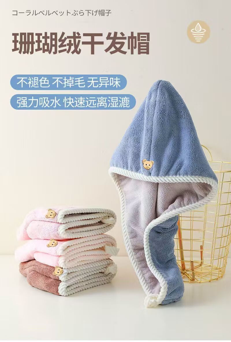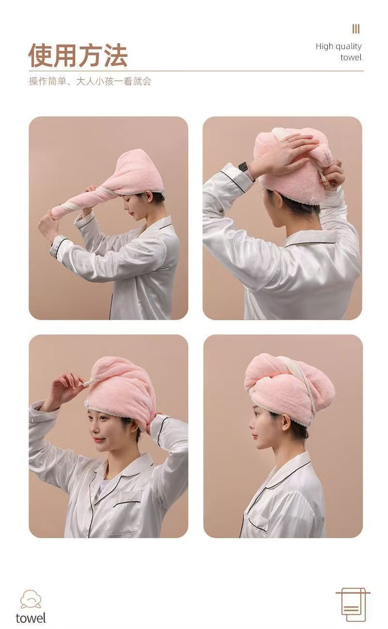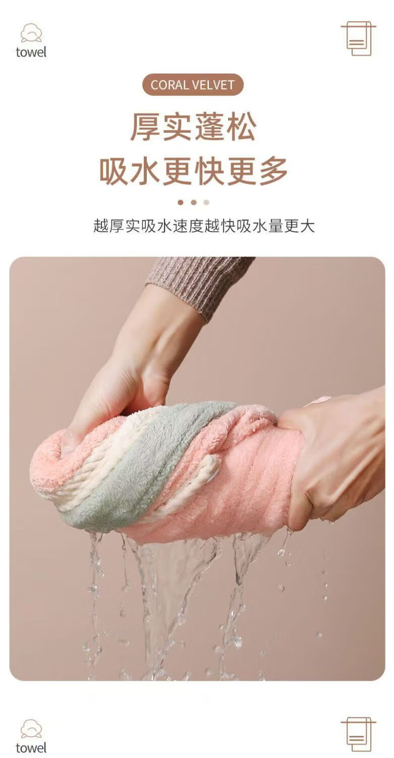 加厚干发帽女60cm长发成人超强吸水新款不掉毛可爱浴帽包头毛巾 升级加厚双层干发帽【粉色】1条