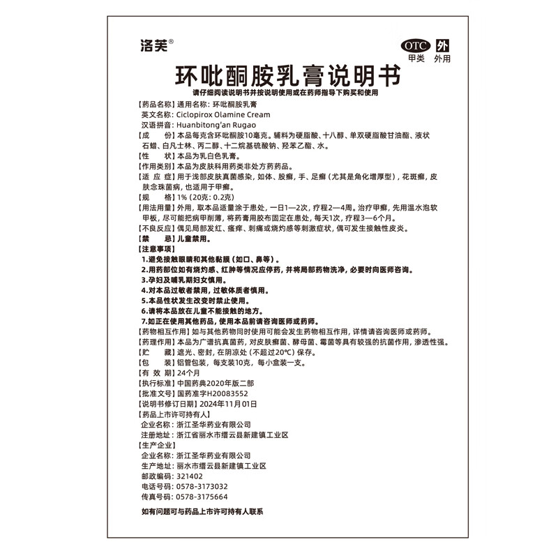 洛芙环吡酮胺乳膏10g治疗脚气止痒脱皮烂脚丫真菌感染自营脚气抗菌角化型干裂脚气药乳膏灰指甲专用药环吡酮搽剂
