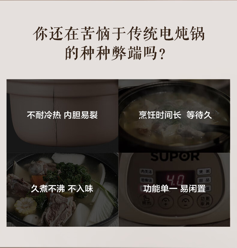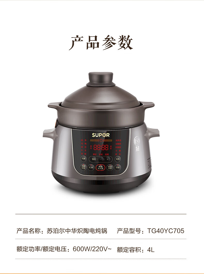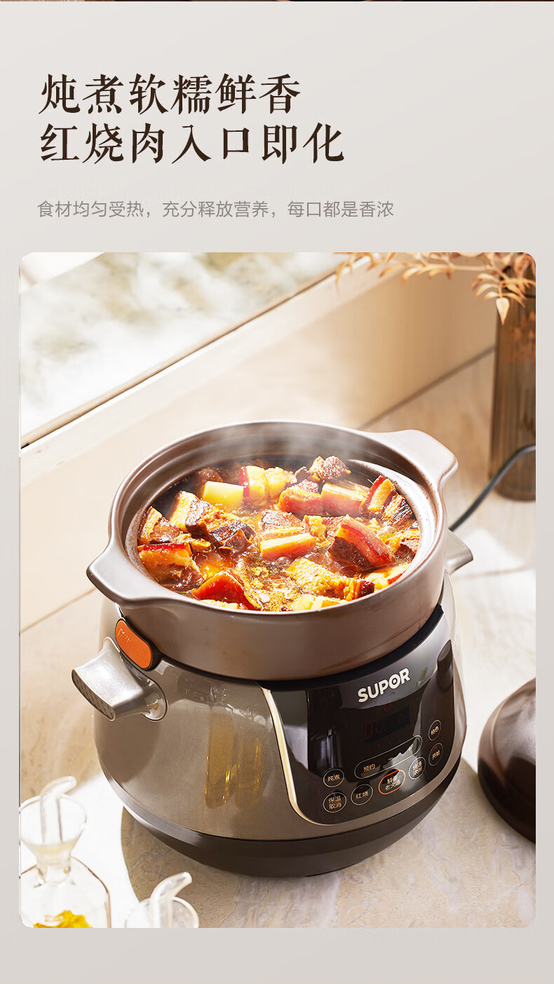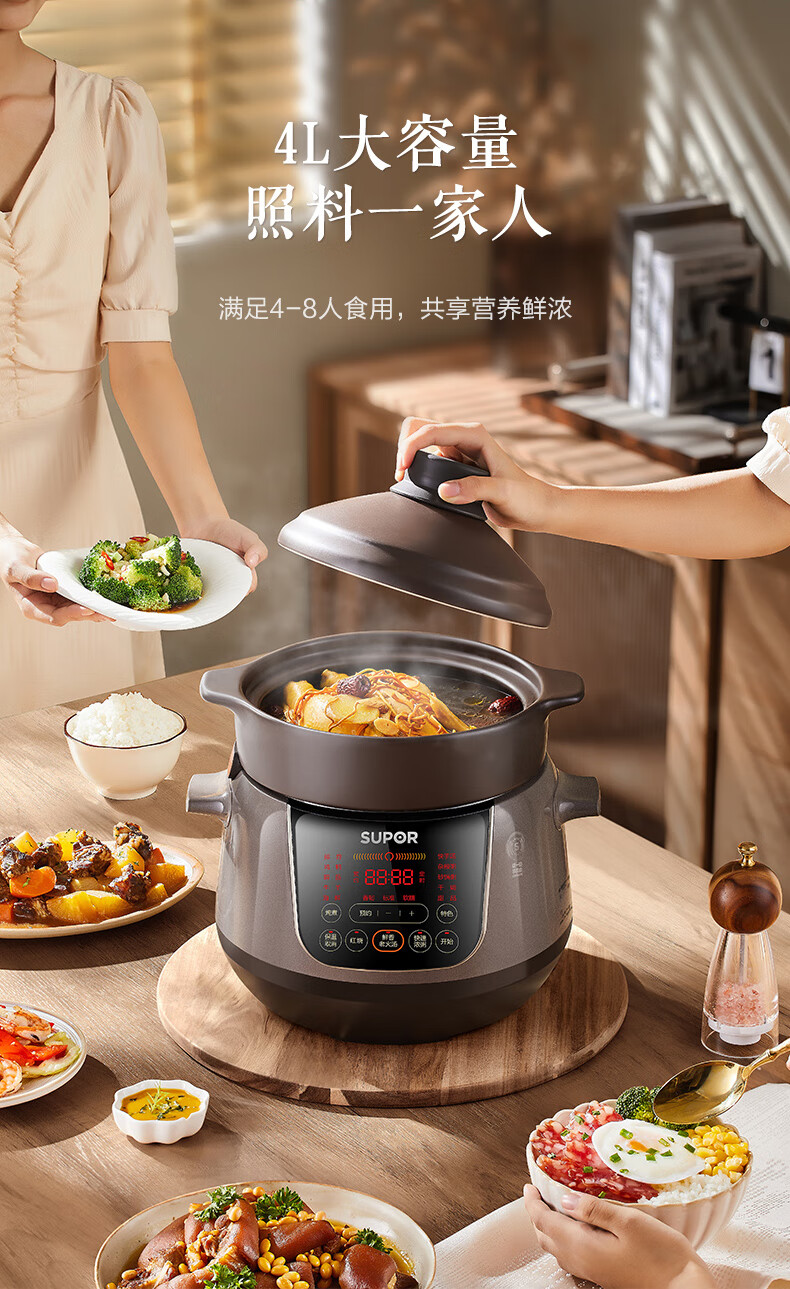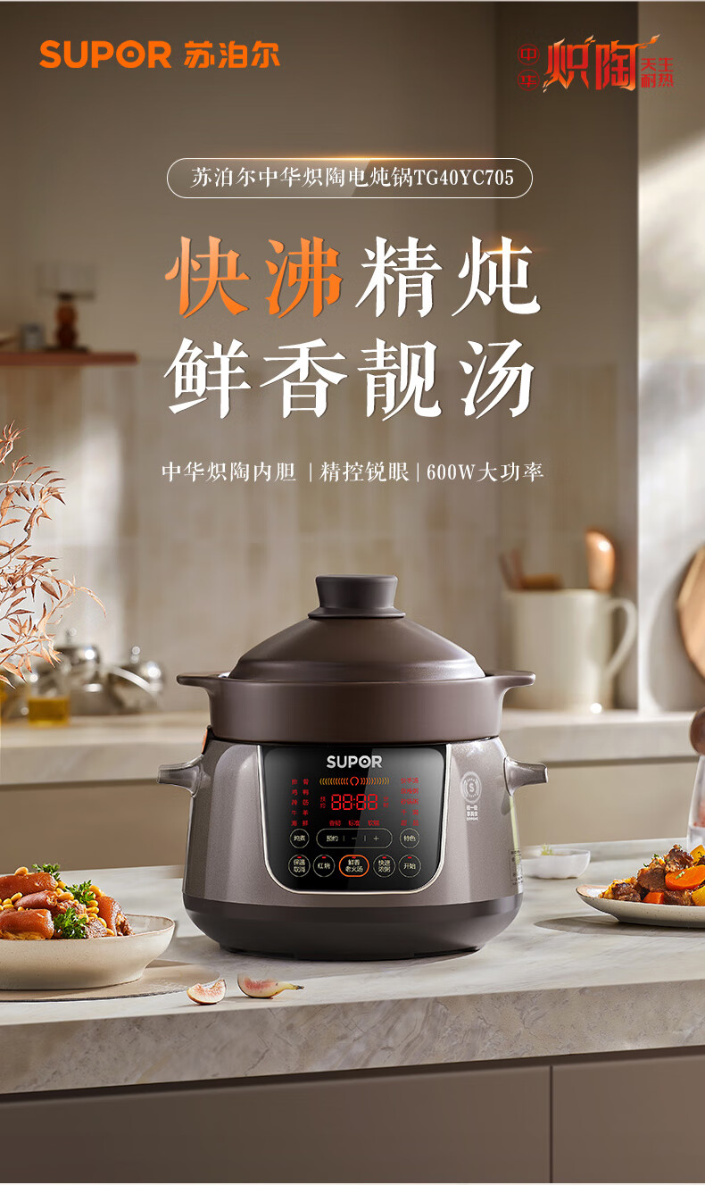 苏泊尔(SUPOR)电炖锅 电炖盅 煲汤锅炖汤锅 煮粥锅 婴儿熬粥专用 电煮锅 4L炽陶 TG40YC705