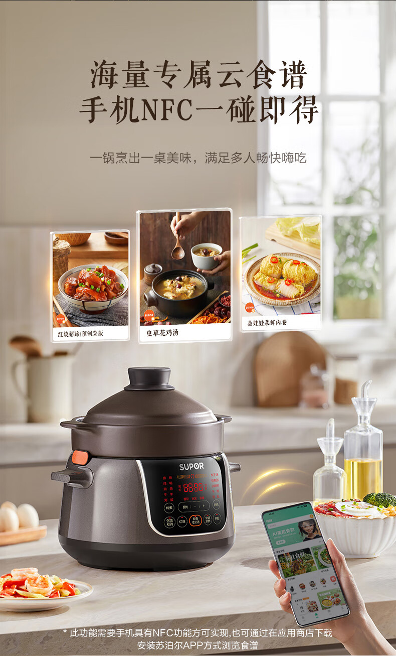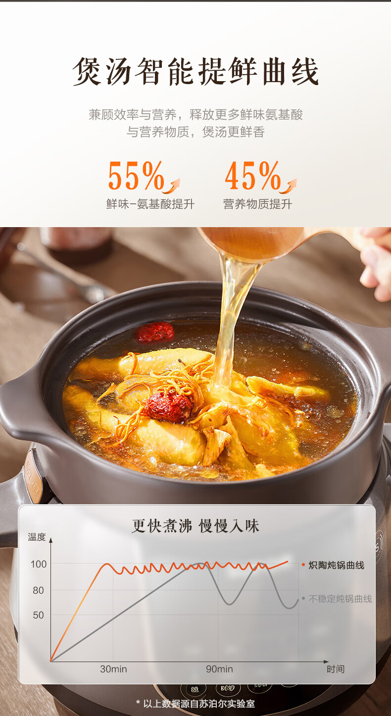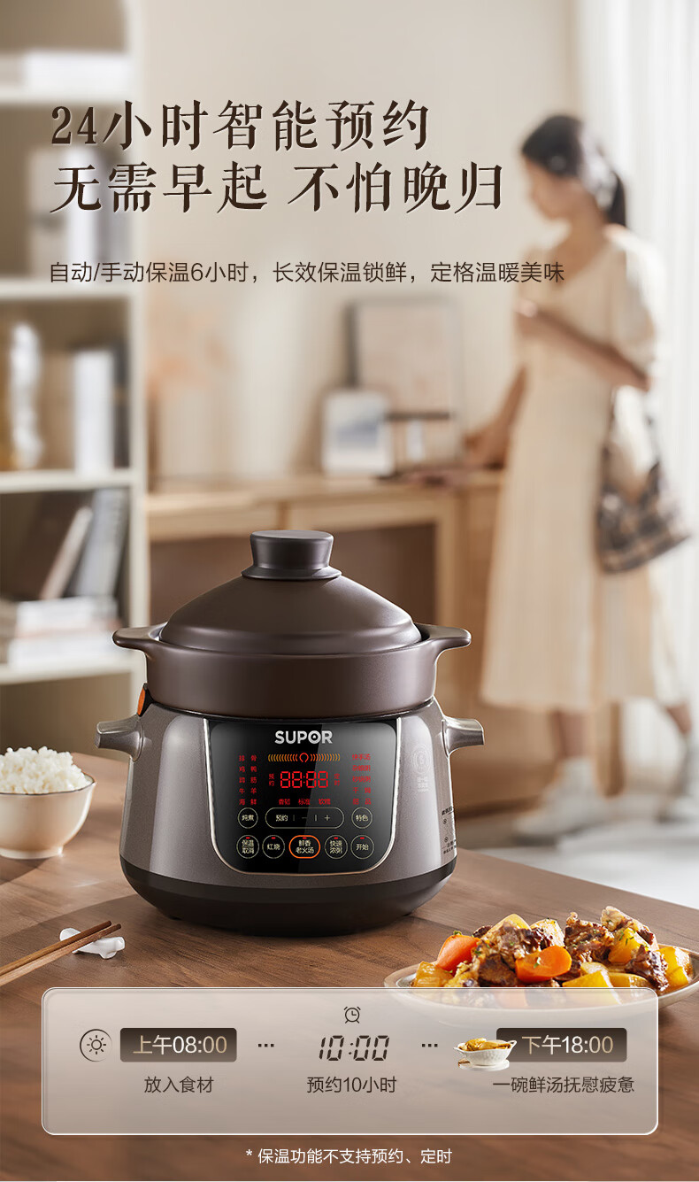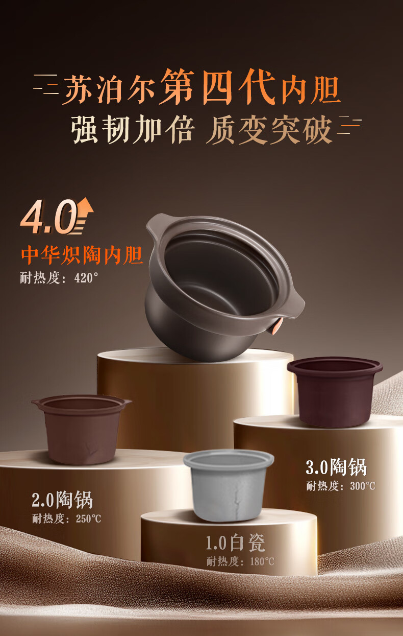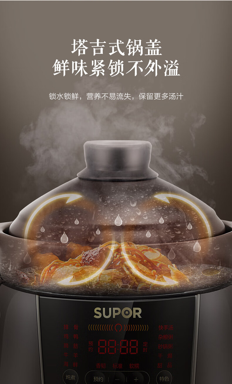 苏泊尔(SUPOR)电炖锅 电炖盅 煲汤锅炖汤锅 煮粥锅 婴儿熬粥专用 电煮锅 4L炽陶 TG40YC705