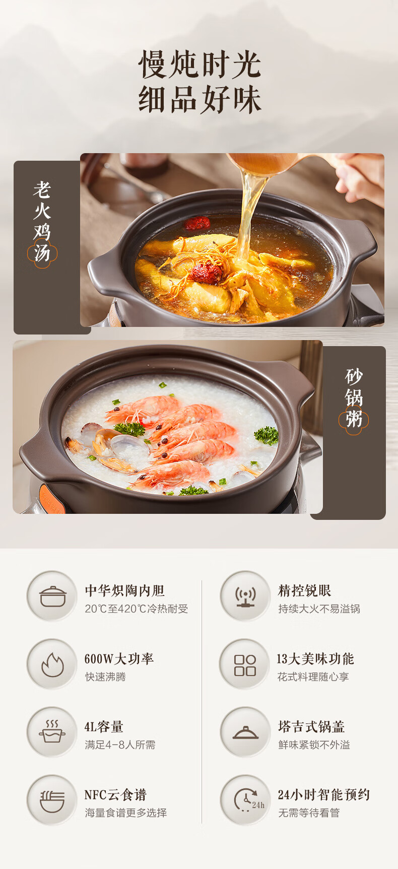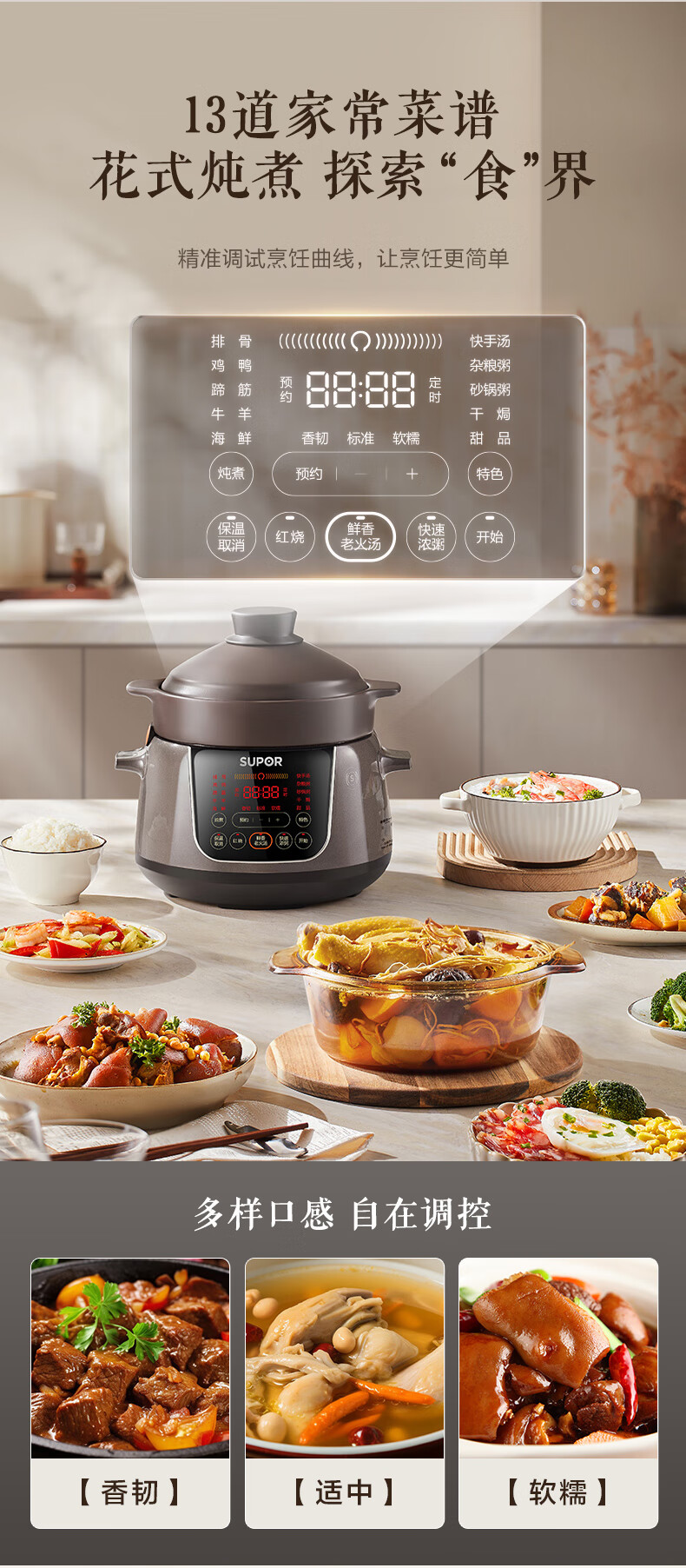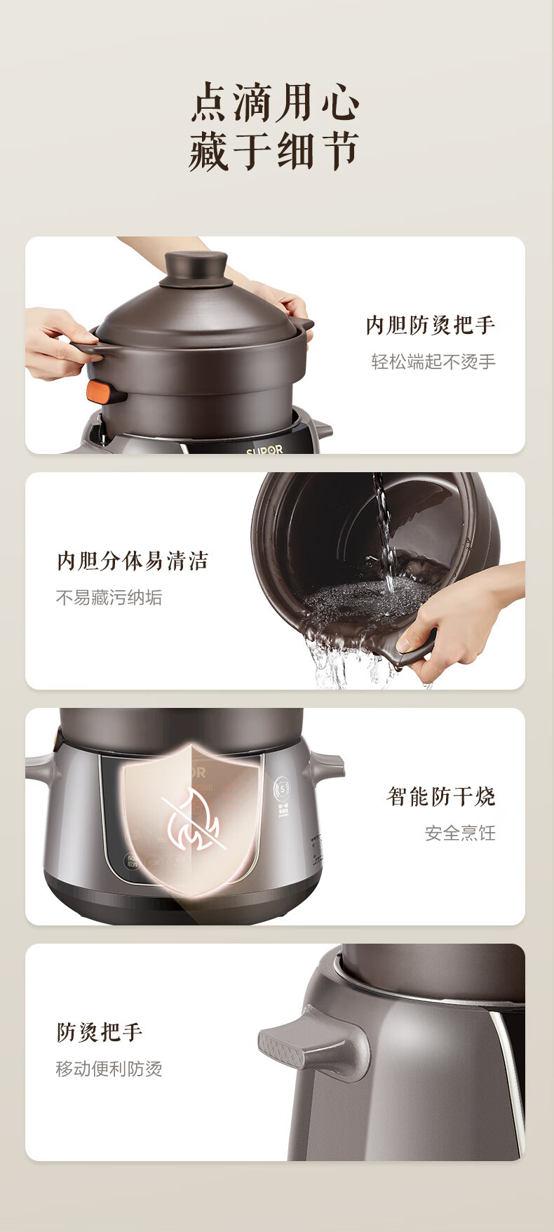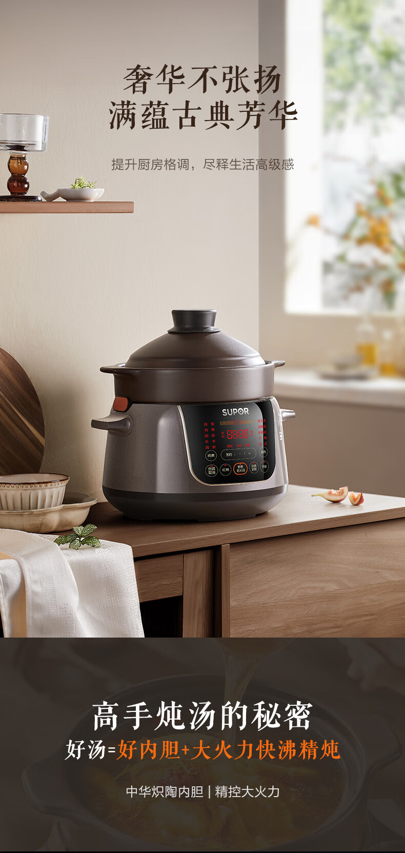 苏泊尔(SUPOR)电炖锅 电炖盅 煲汤锅炖汤锅 煮粥锅 婴儿熬粥专用 电煮锅 4L炽陶 TG40YC705