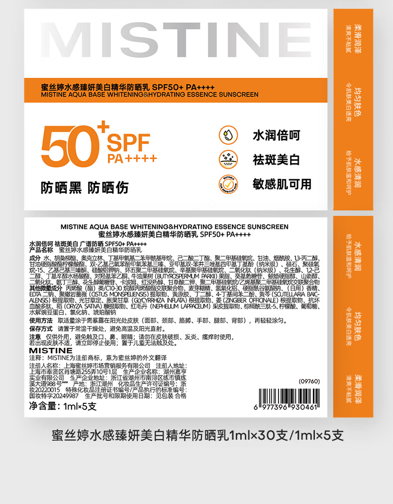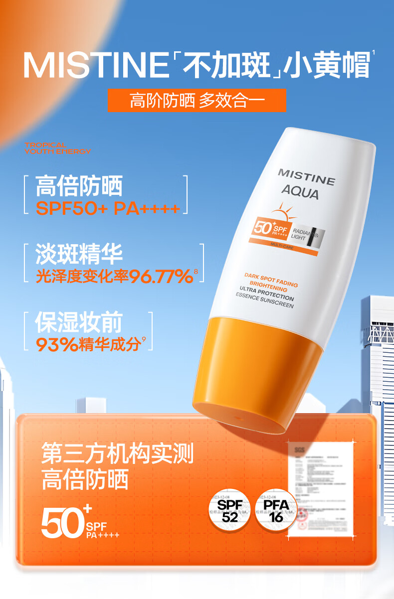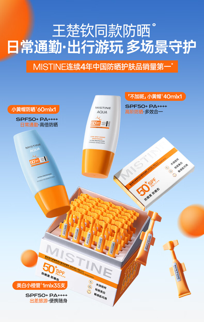 Mistine【王楚钦防晒限量套组】蜜丝婷防晒霜小黄帽防晒次抛不加斑