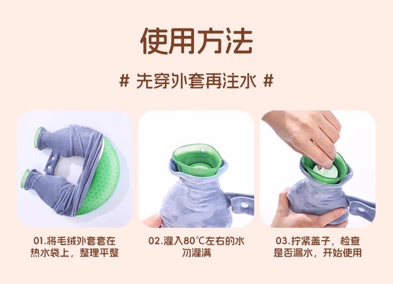 DEATKN德国热水袋注水暖水袋U型护颈椎热敷专用暖宝宝防爆加厚挂脖围脖 炊烟灰-【热敷肩颈专用】送水晶绒布套/加厚防爆内胆