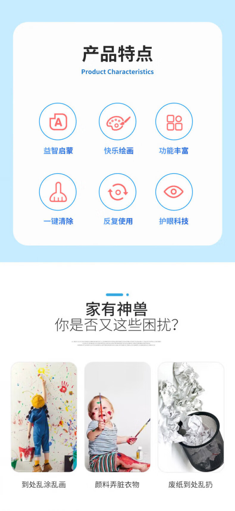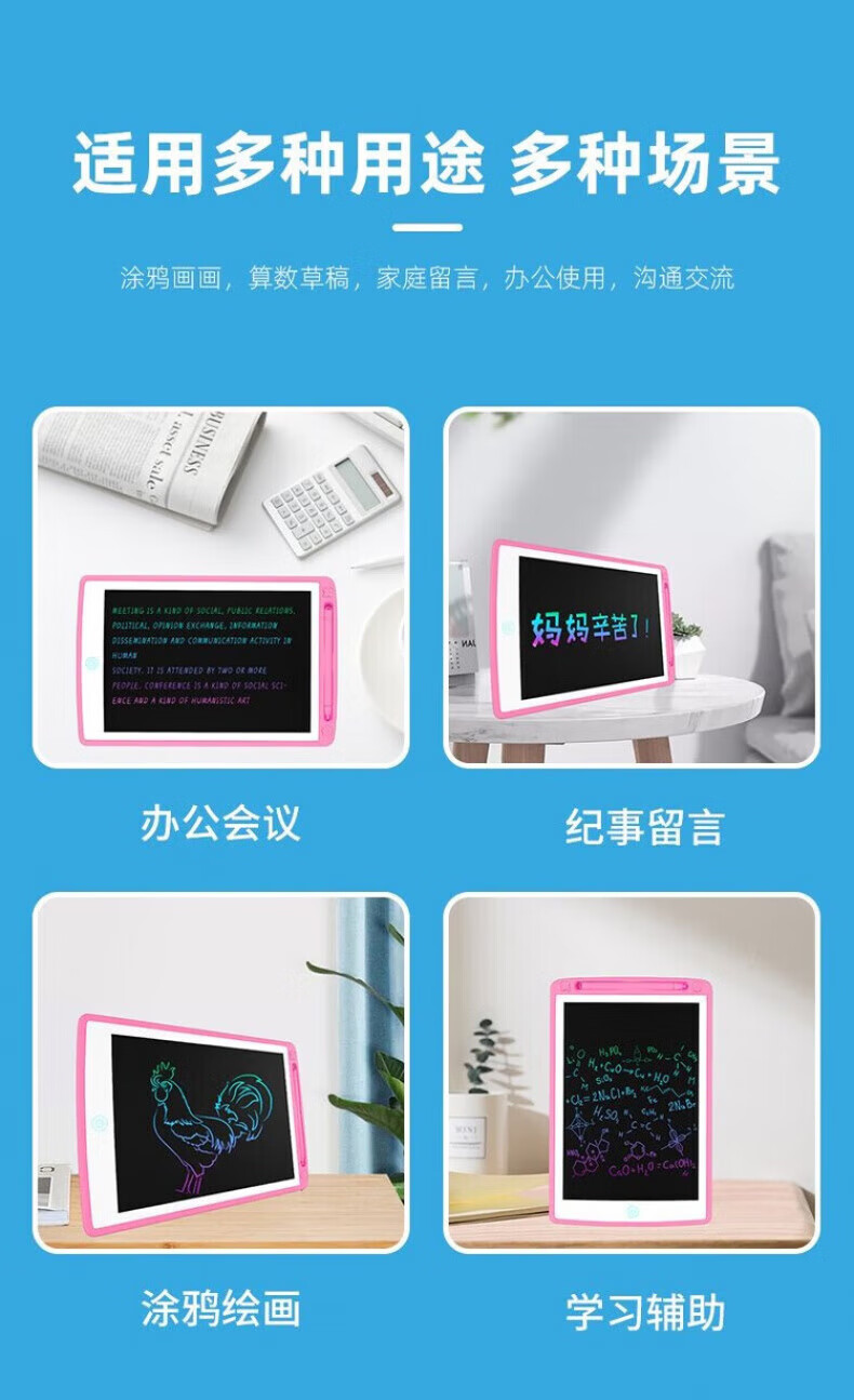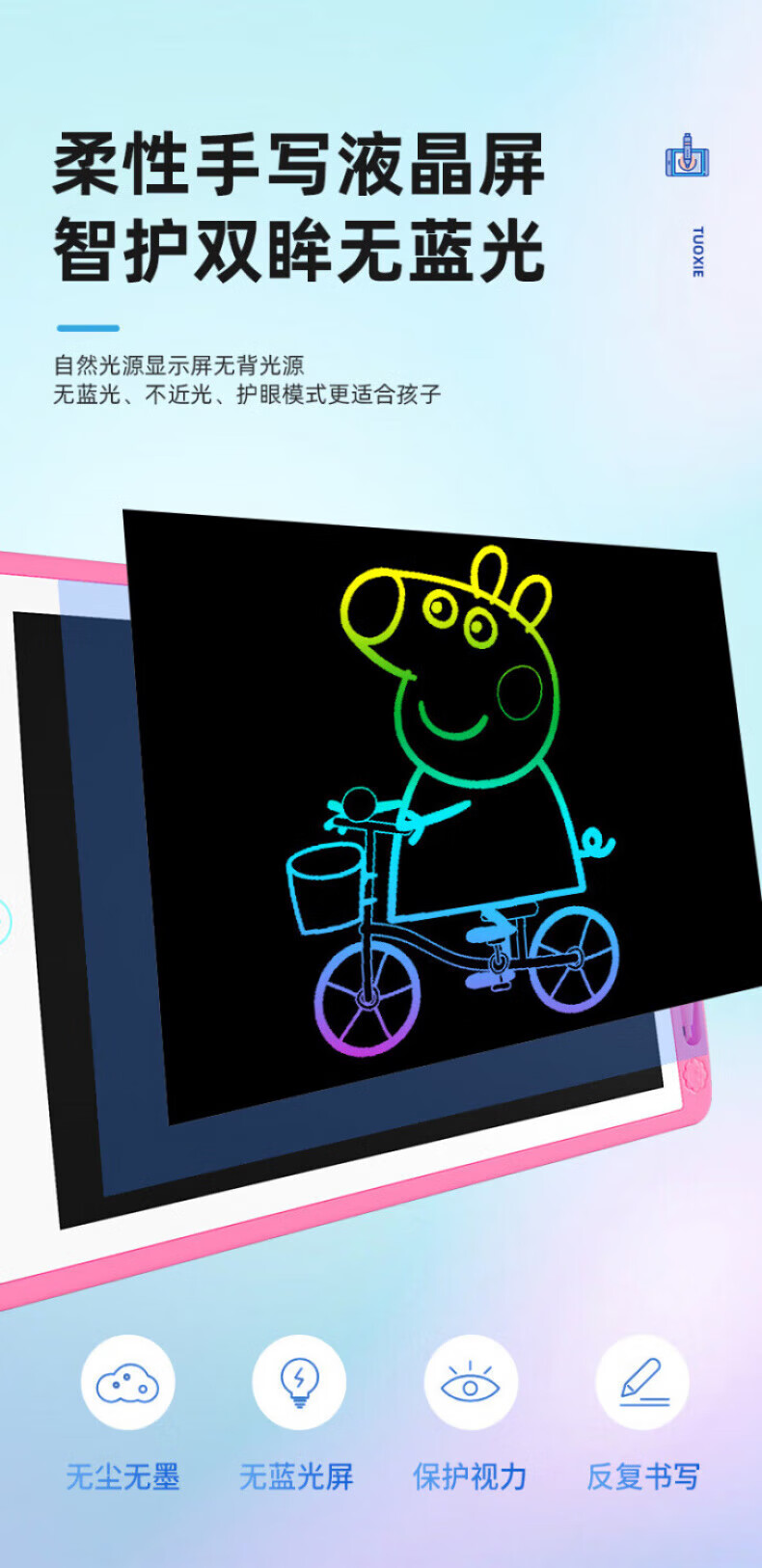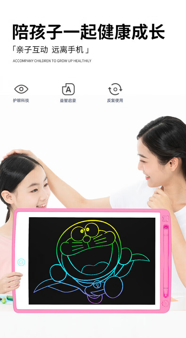 DEATKN画板儿童液晶手写板学习用品玩具宝宝画画板小黑板儿童学生写 特大粉33*22CM+彩色护眼