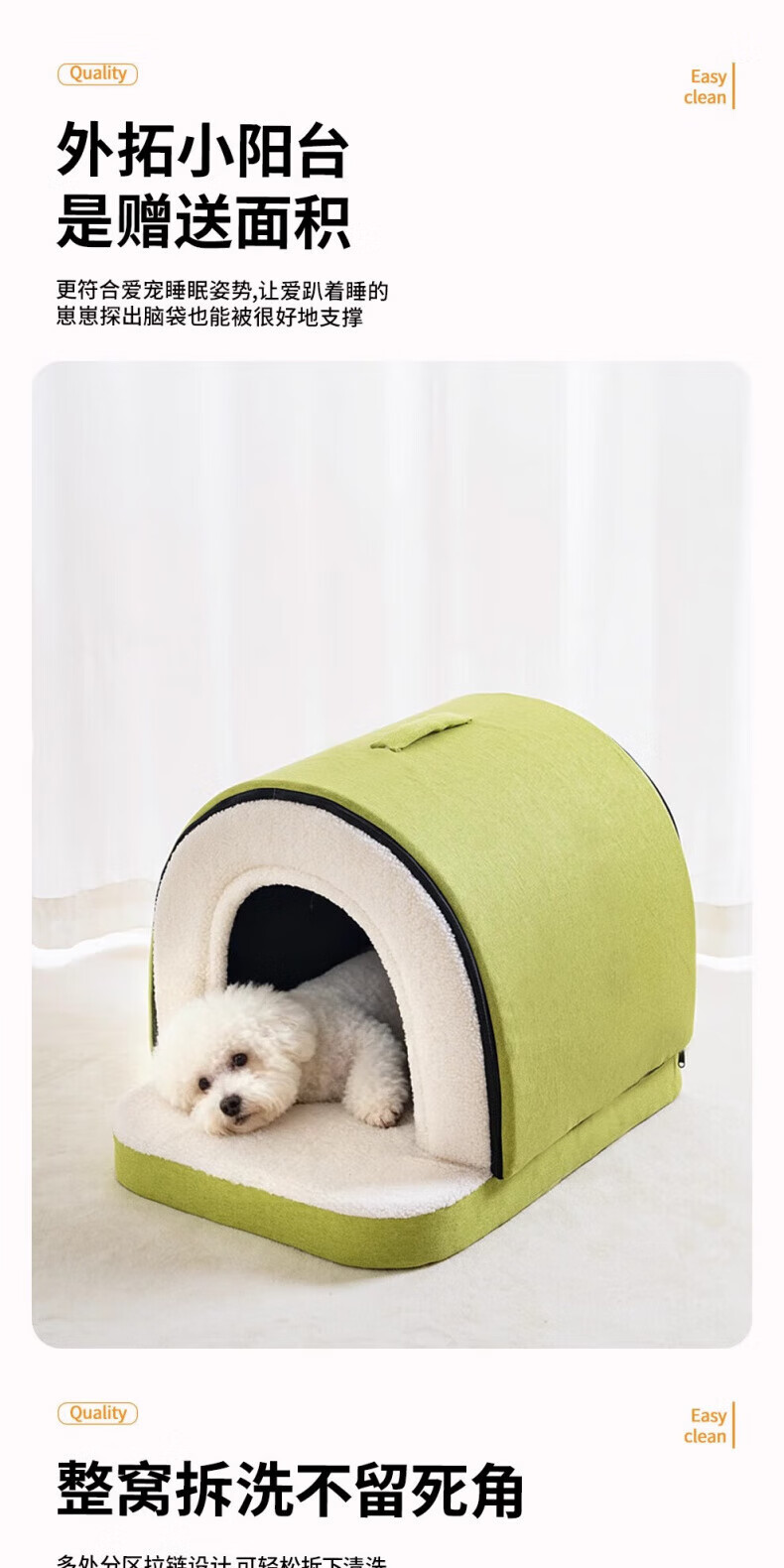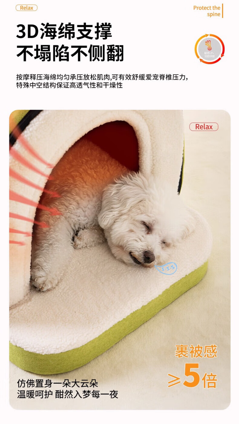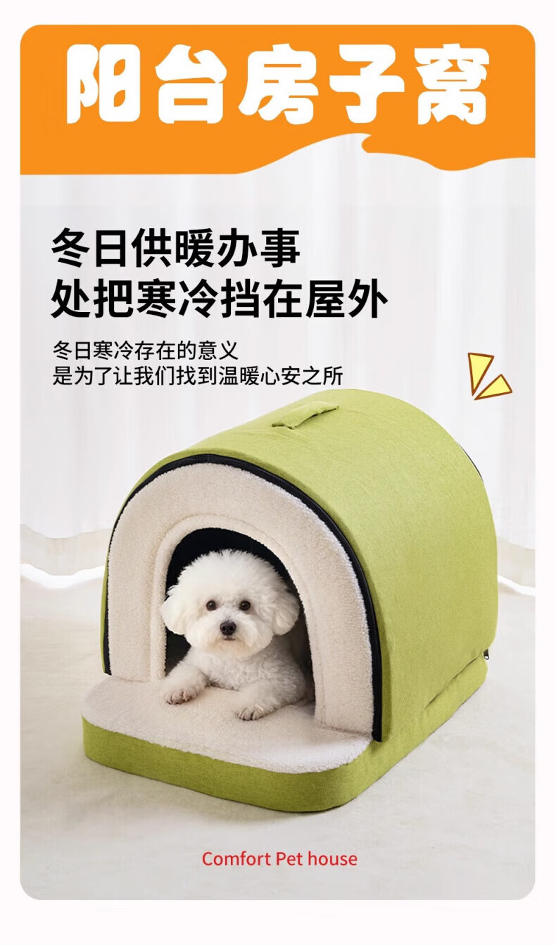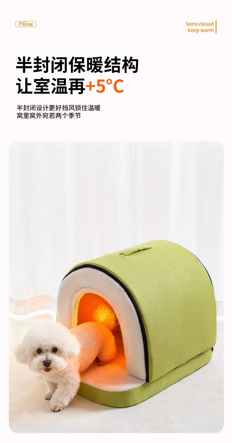 AILUKI日本高端狗窝冬季加厚保暖半封闭可拆洗大中小型犬泰迪比熊睡觉床 房子窝封闭式【S码】40*34*34cm