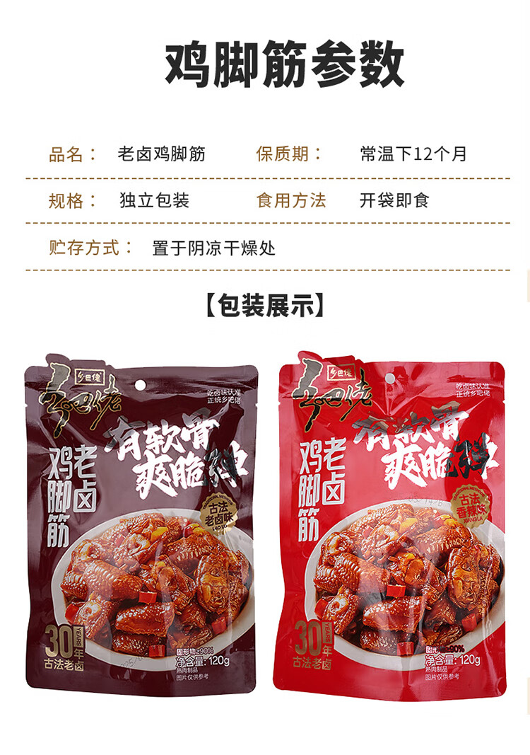 乡吧佬鸡脚筋老卤味零食小吃解馋零嘴独立包装解馋休闲追剧 老卤味 120g