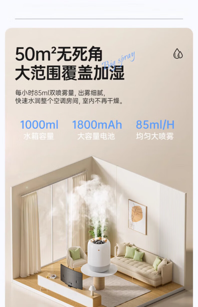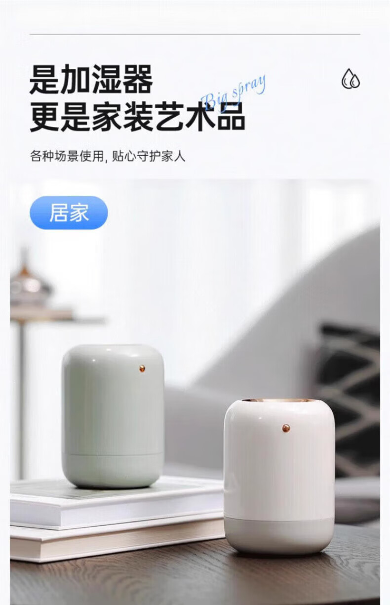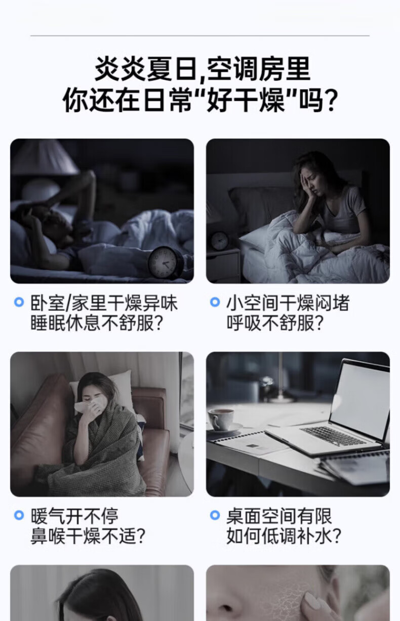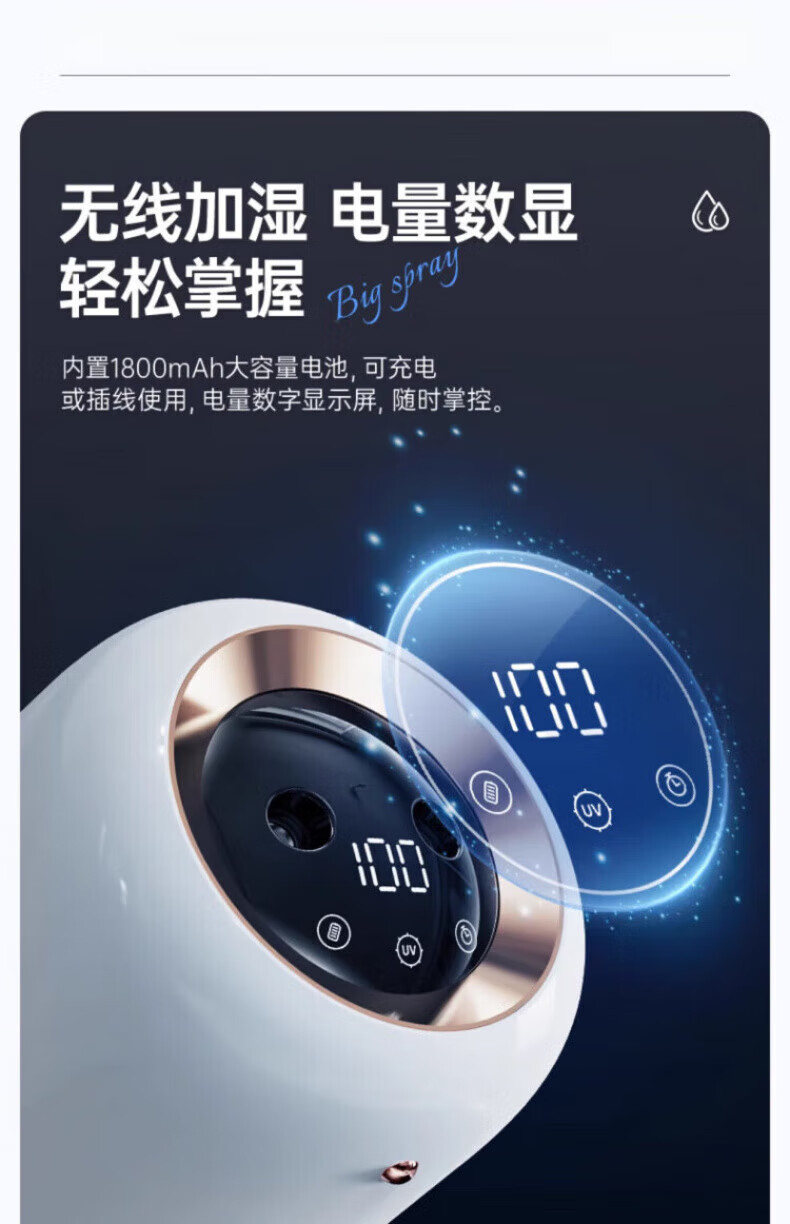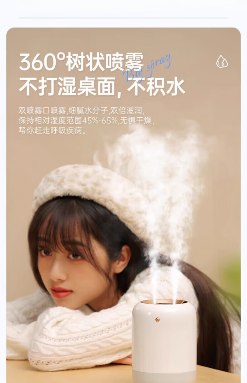 DEATKN德国高端加湿器静音小型办公室桌面无线宿舍家用卧室迷你便携 冰川白mini版[UVC除菌99.9%充插