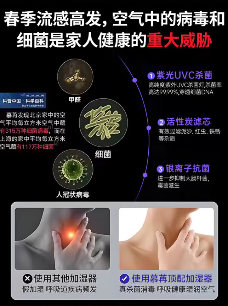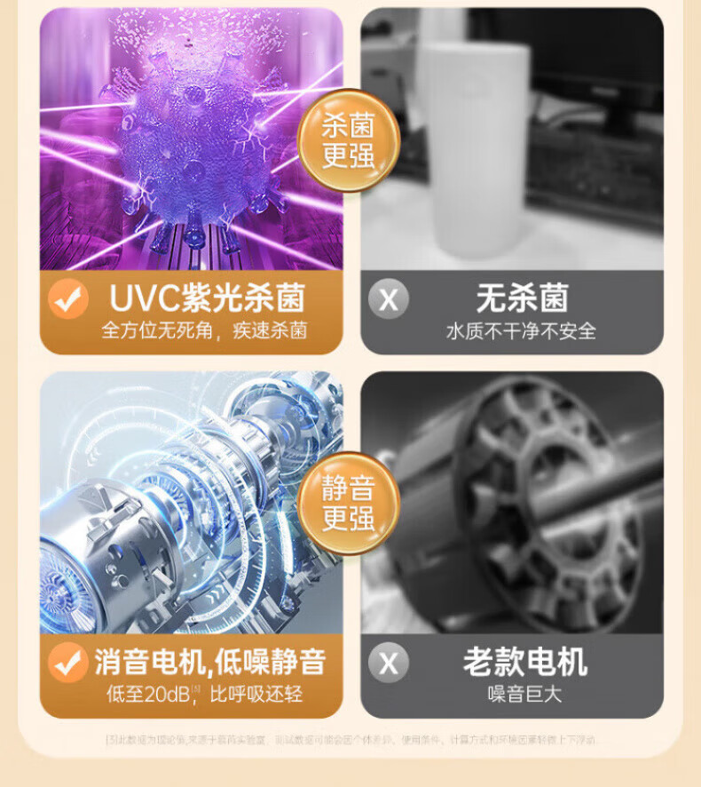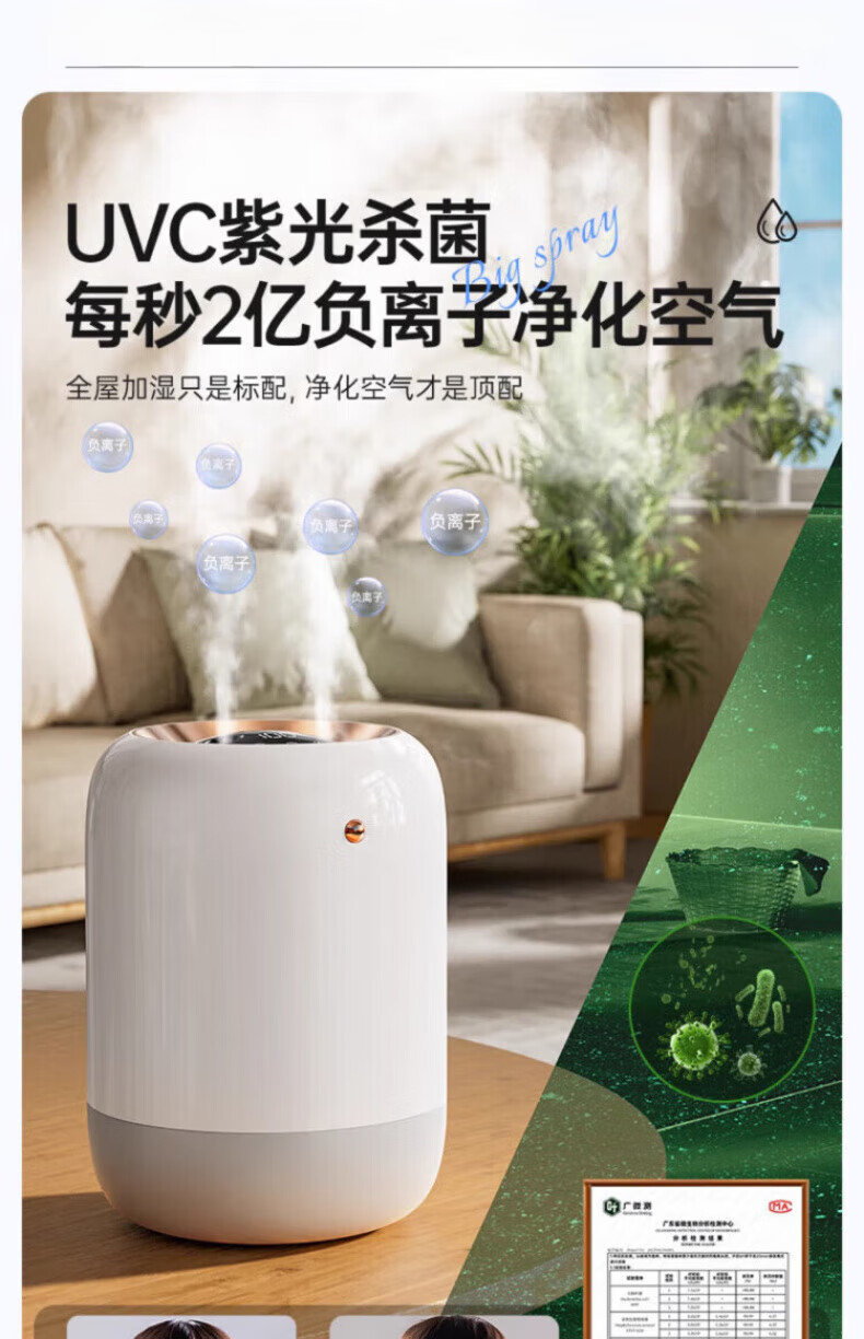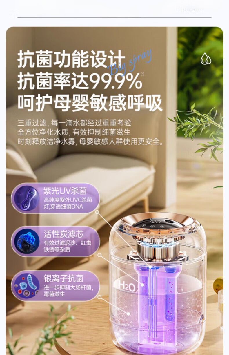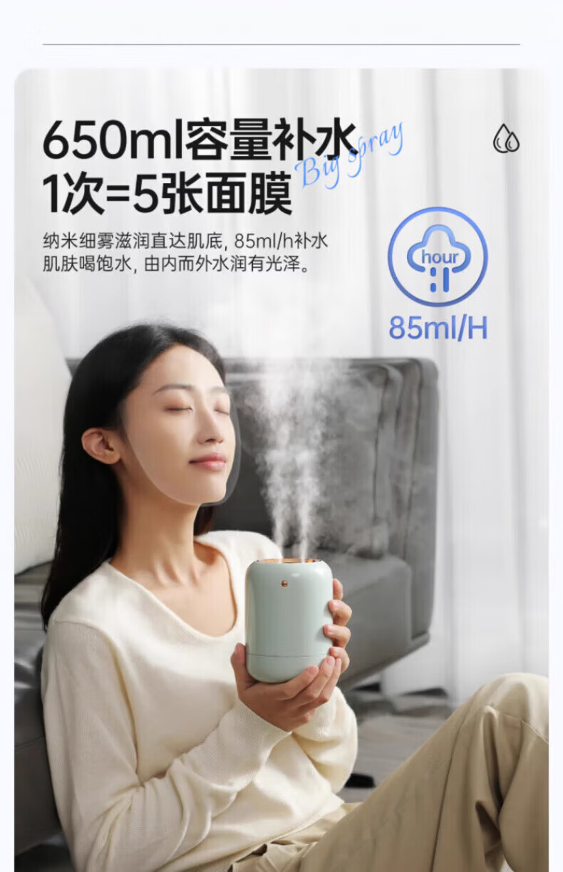 DEATKN德国高端加湿器静音小型办公室桌面无线宿舍家用卧室迷你便携 冰川白mini版[UVC除菌99.9%充插