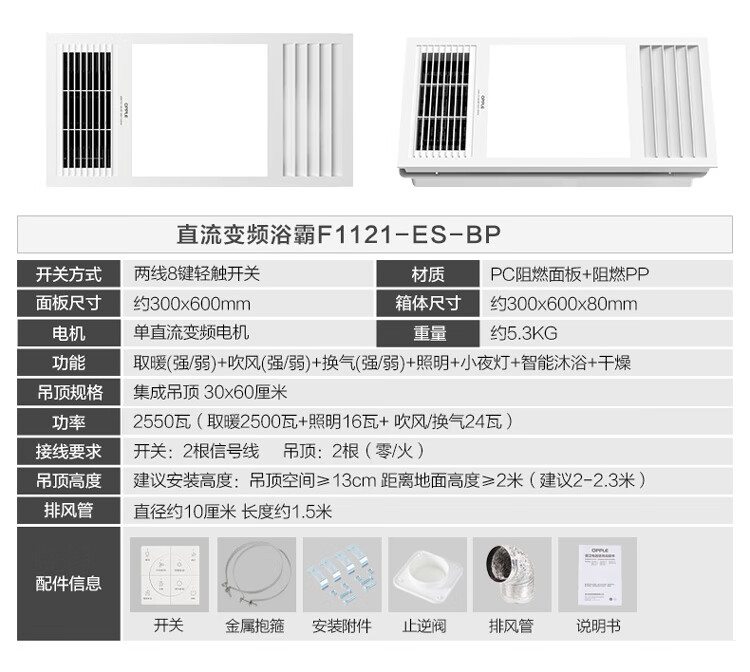 欧普(OPPLE)超薄大功率风暖浴霸照明暖风机浴霸灯暖照明排气一体集成300x600