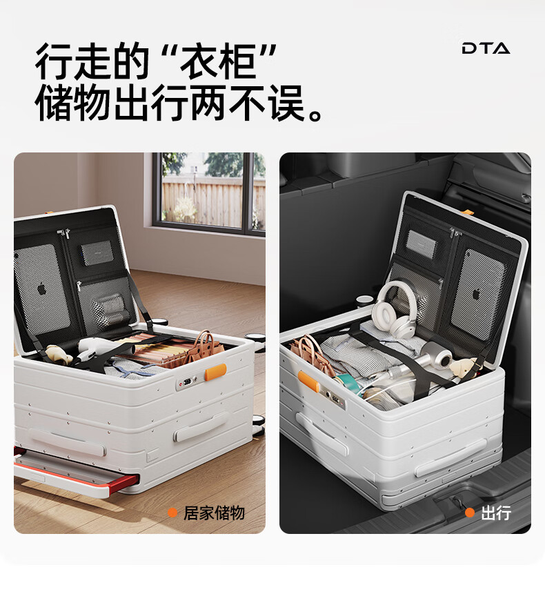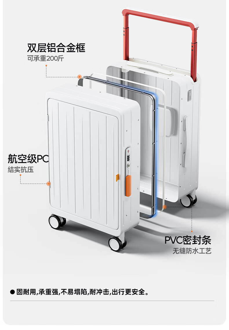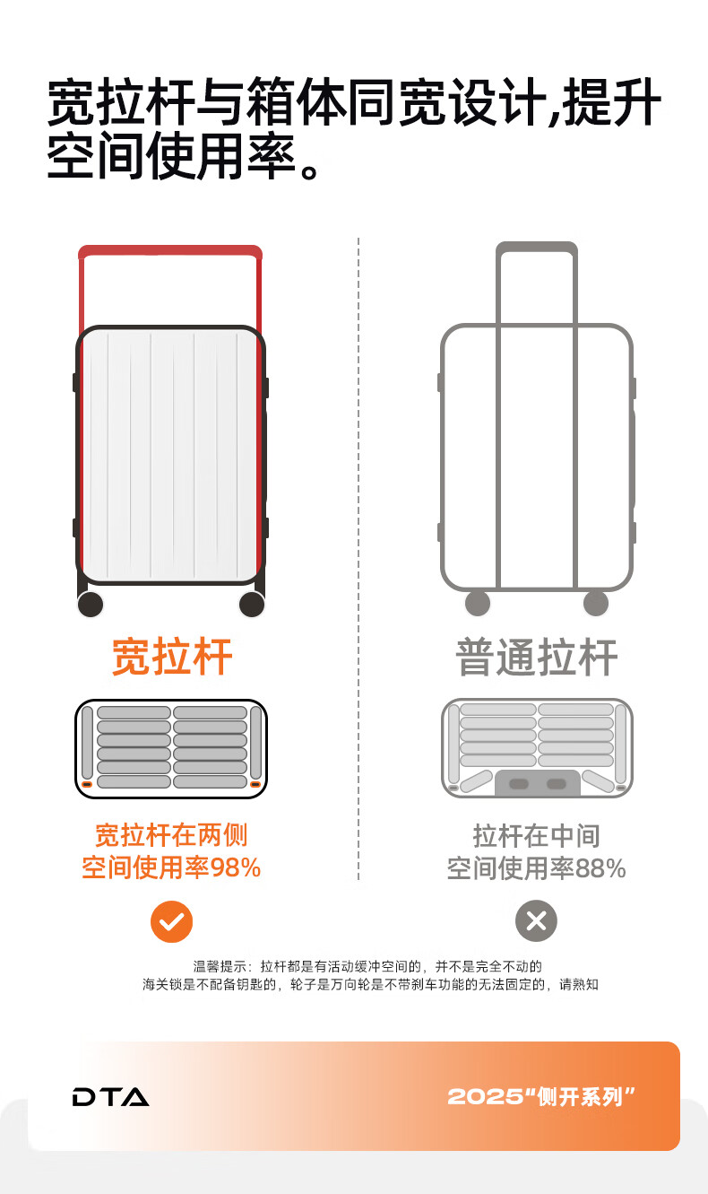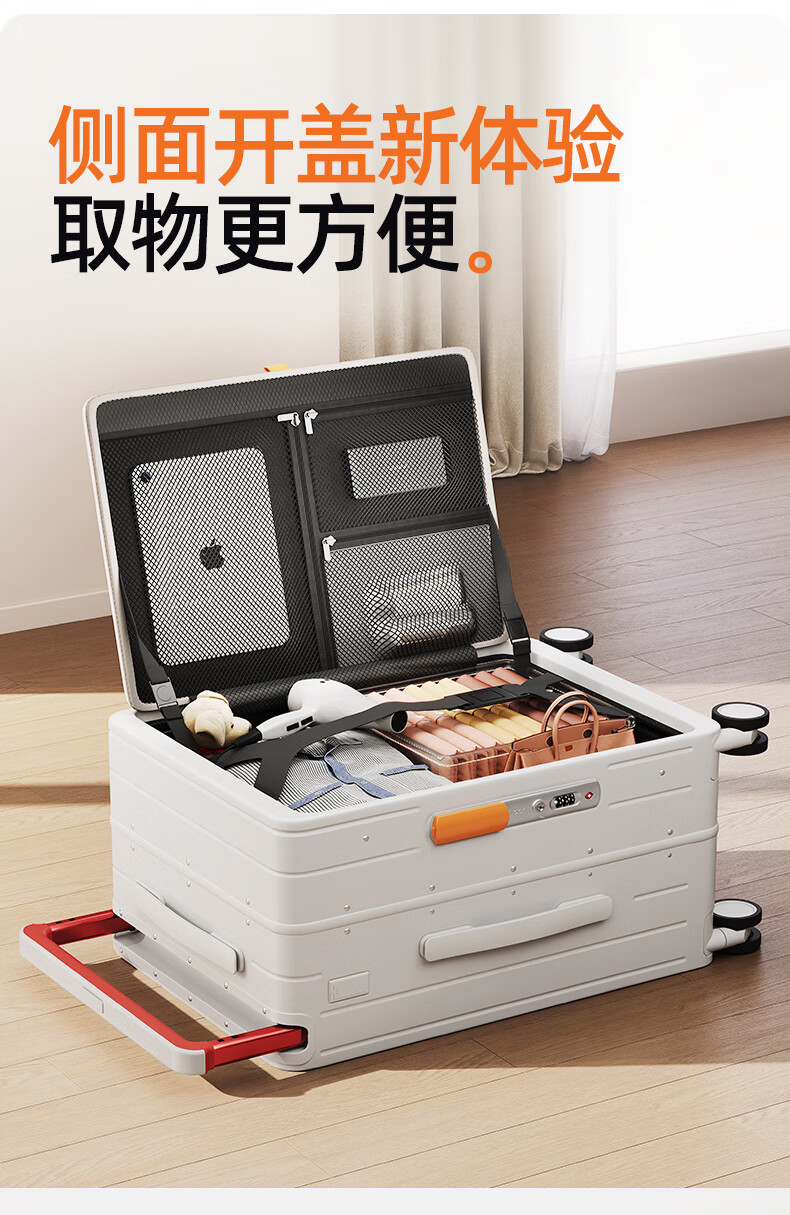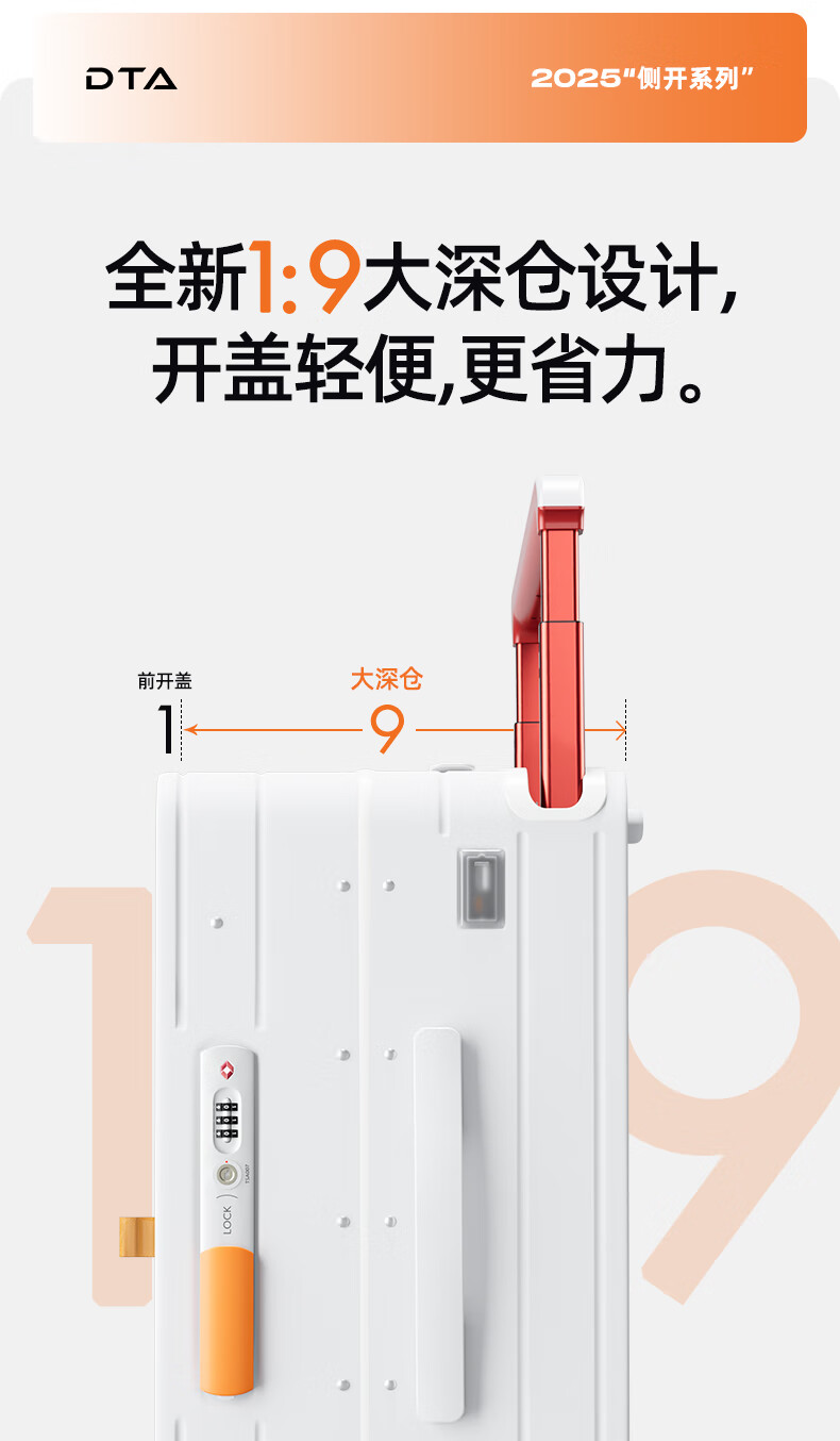 DTA侧开盖行李箱大容量可登机拉杆箱女多功能旅行皮箱子男黑色20英寸