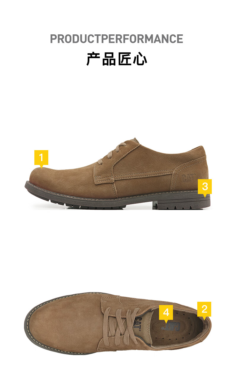 卡特卡特男款时尚舒适低帮牛皮鞋日常通勤鞋户外休闲鞋 褐色 41