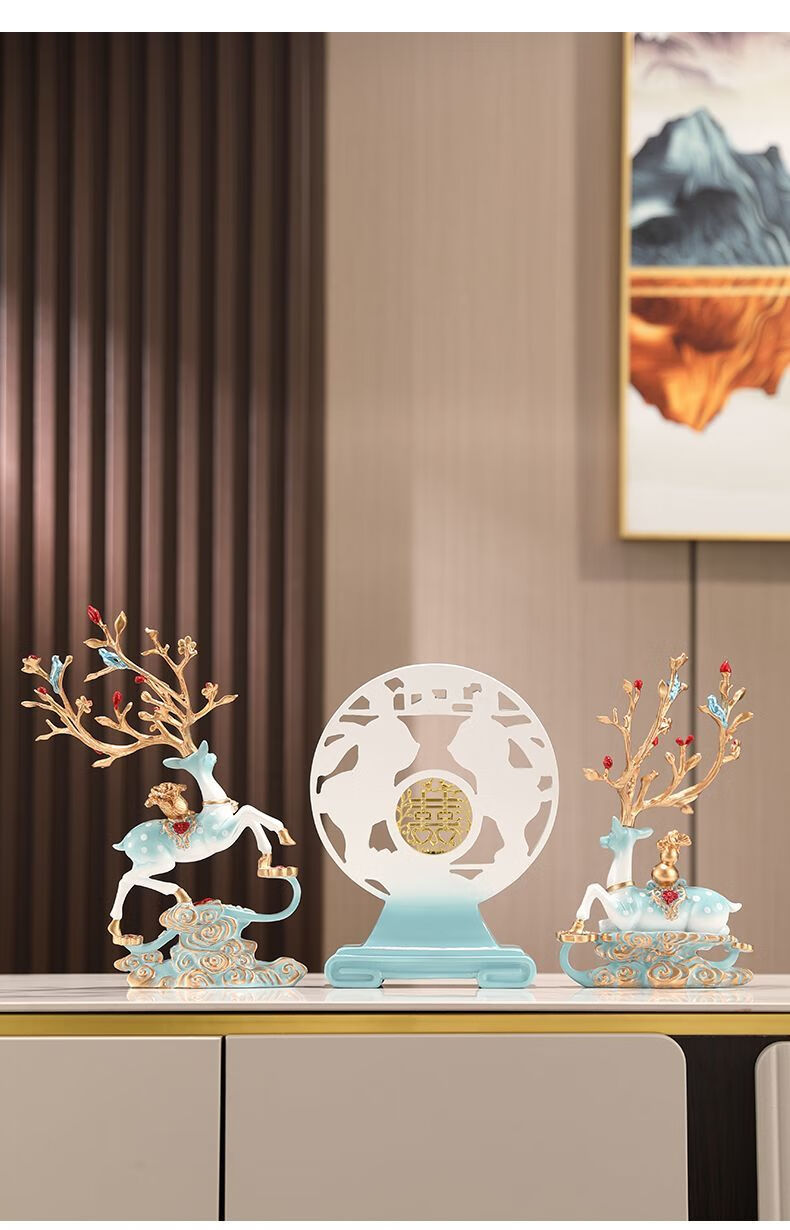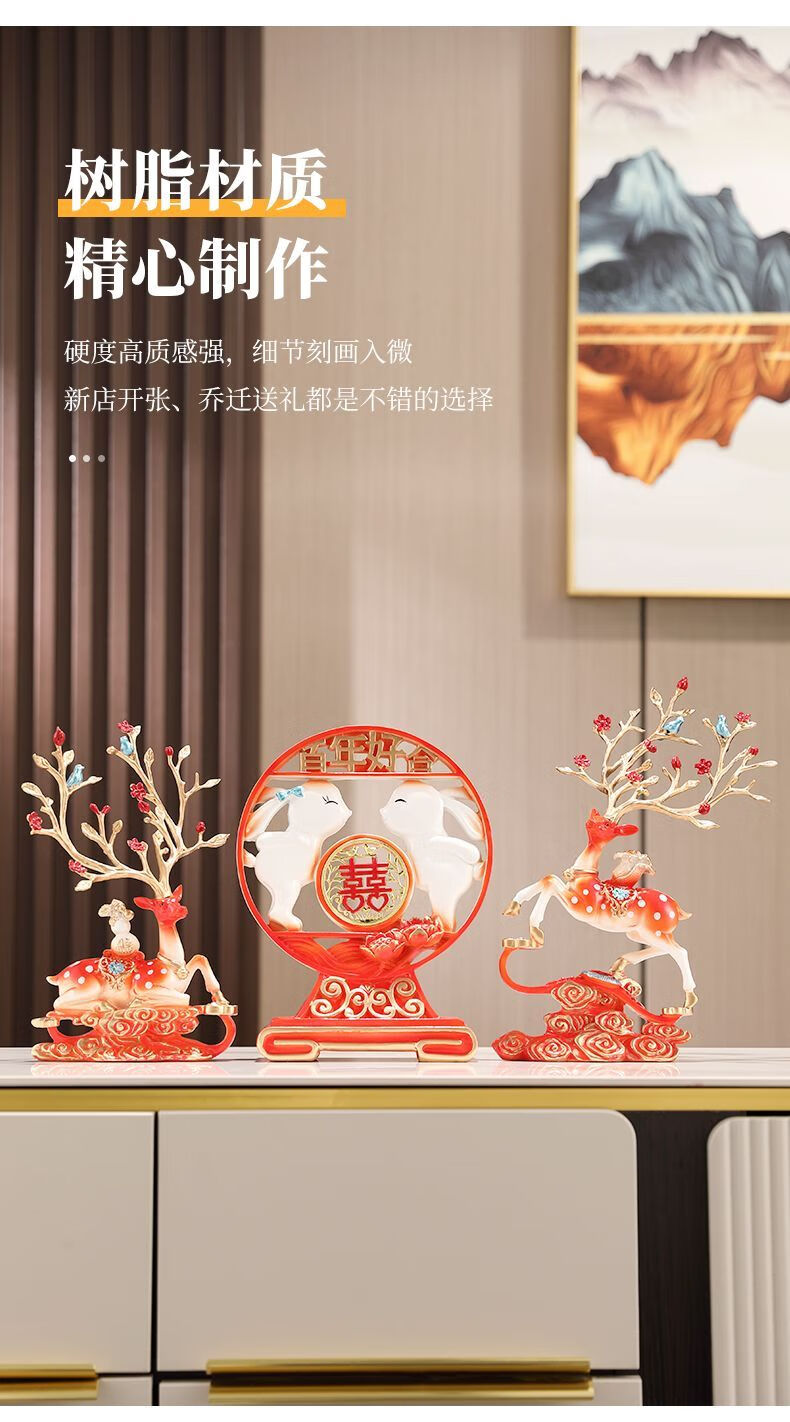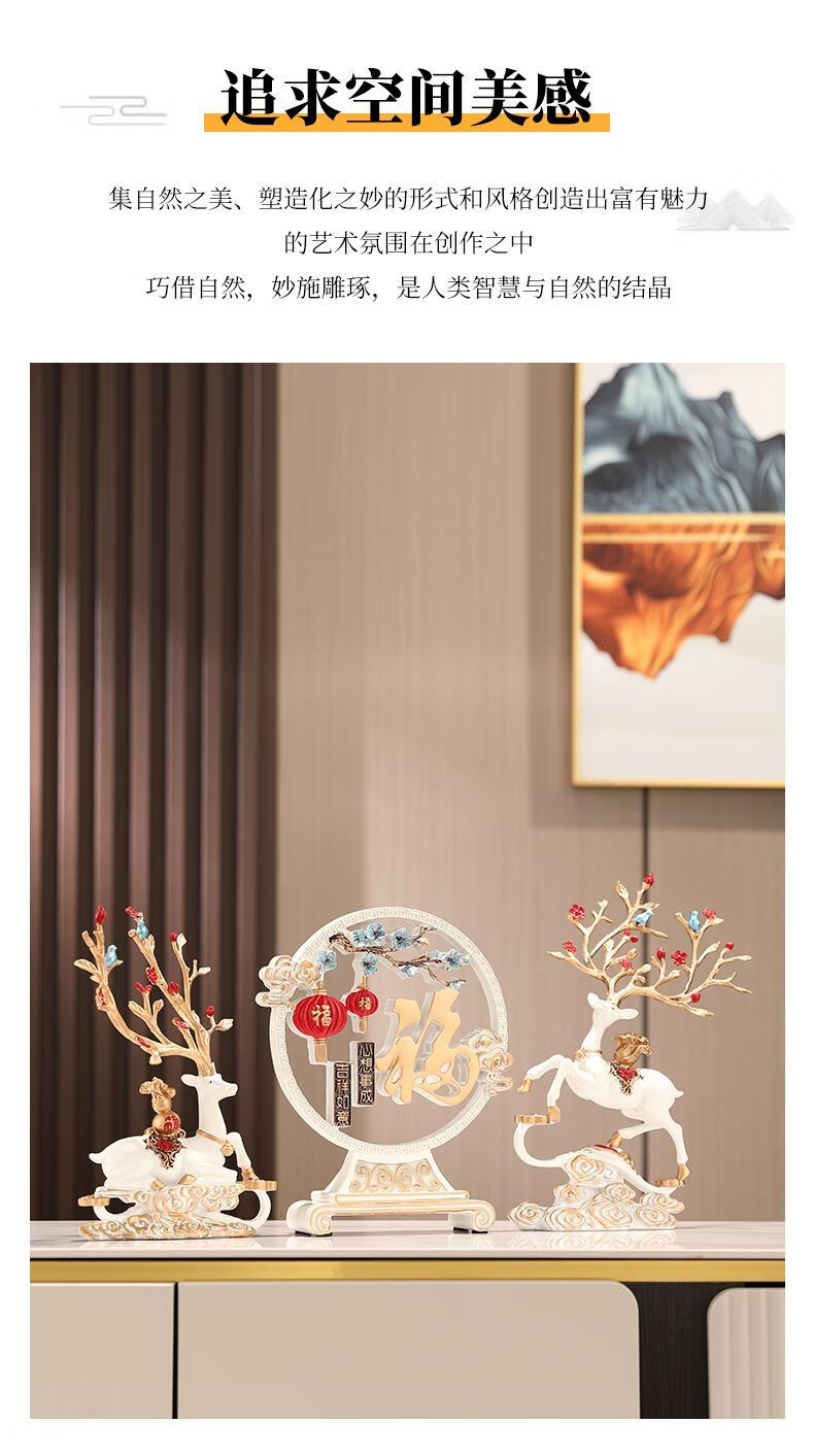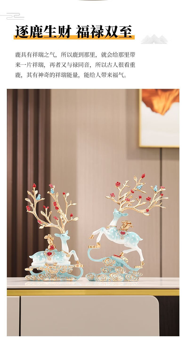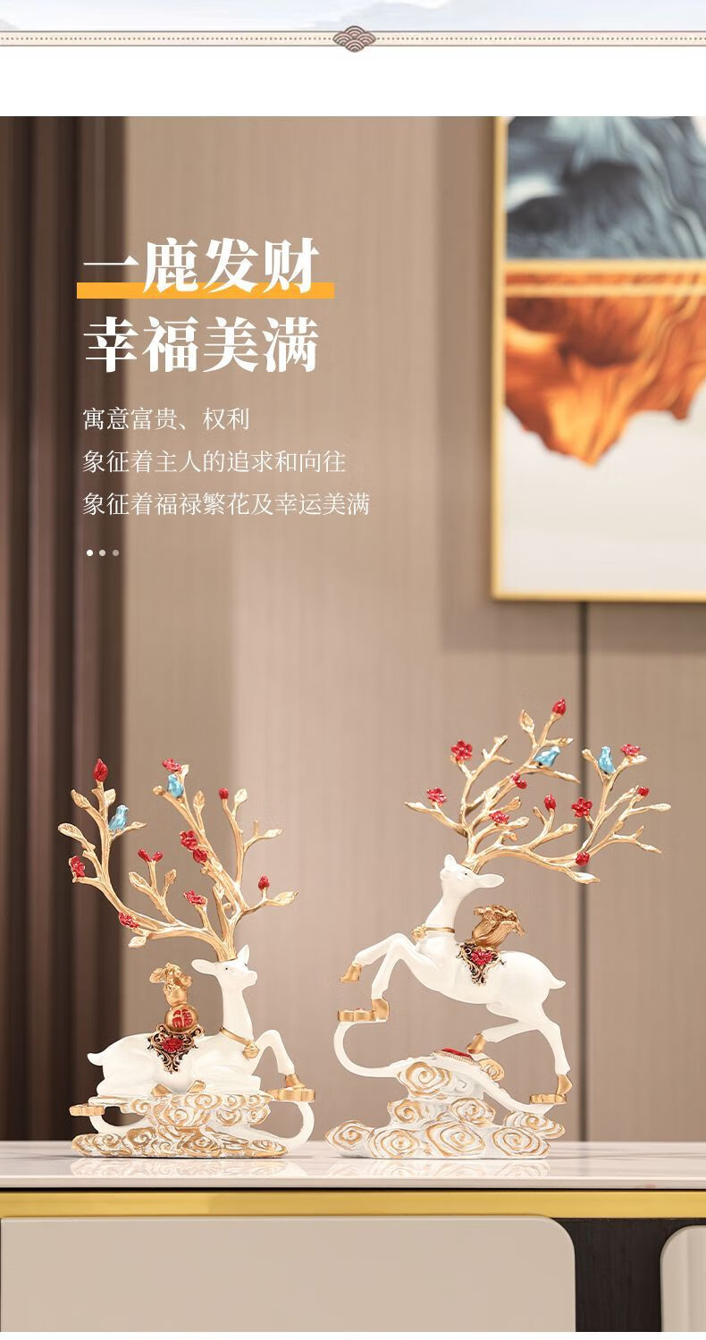 OYKTN创意鹿摆件客厅电视柜酒柜玄关家居装饰品乔迁新居礼品结婚礼物 q如意鹿(米白色)-无百年摆件