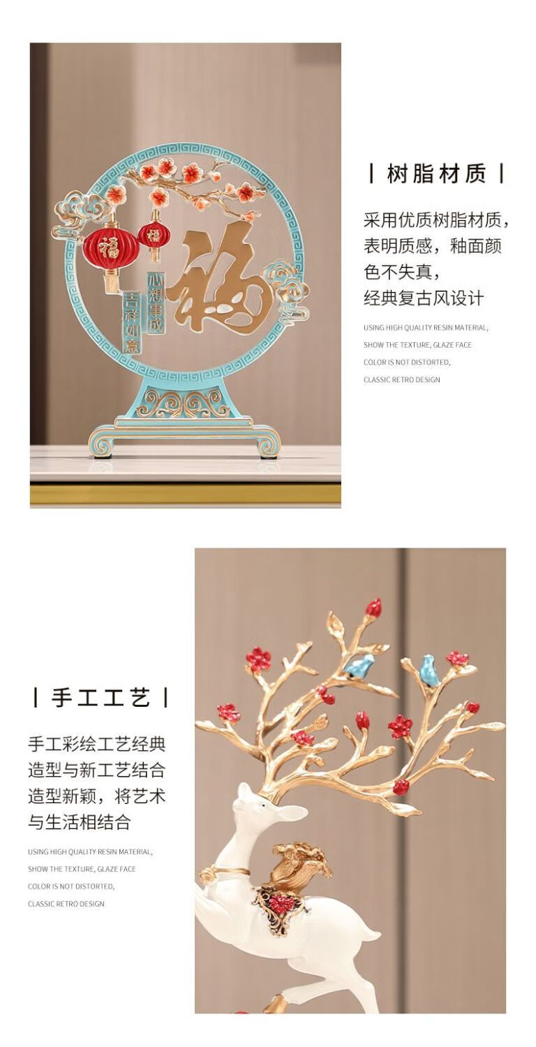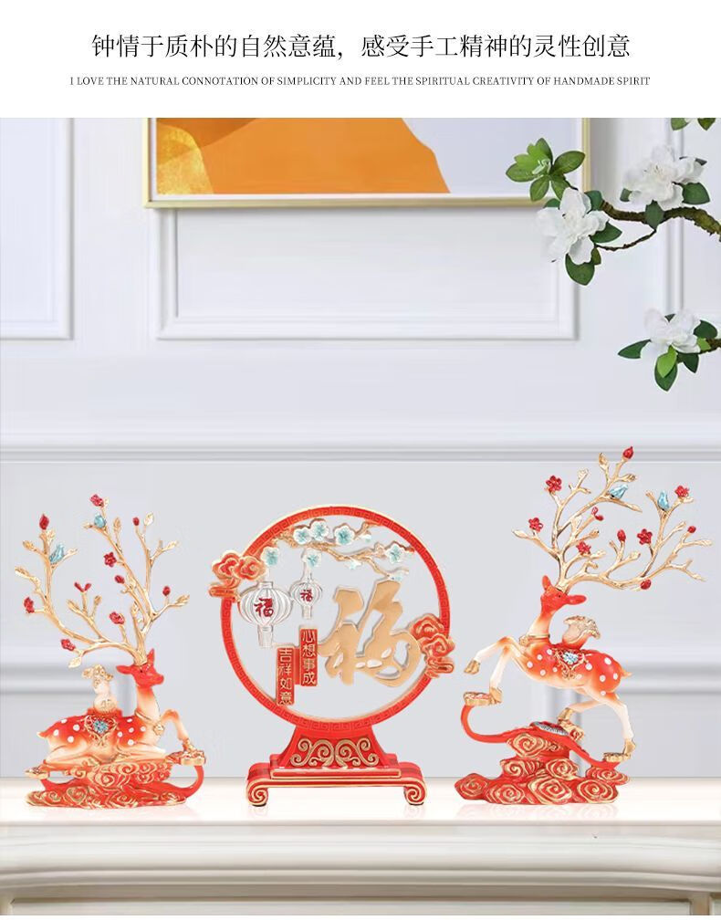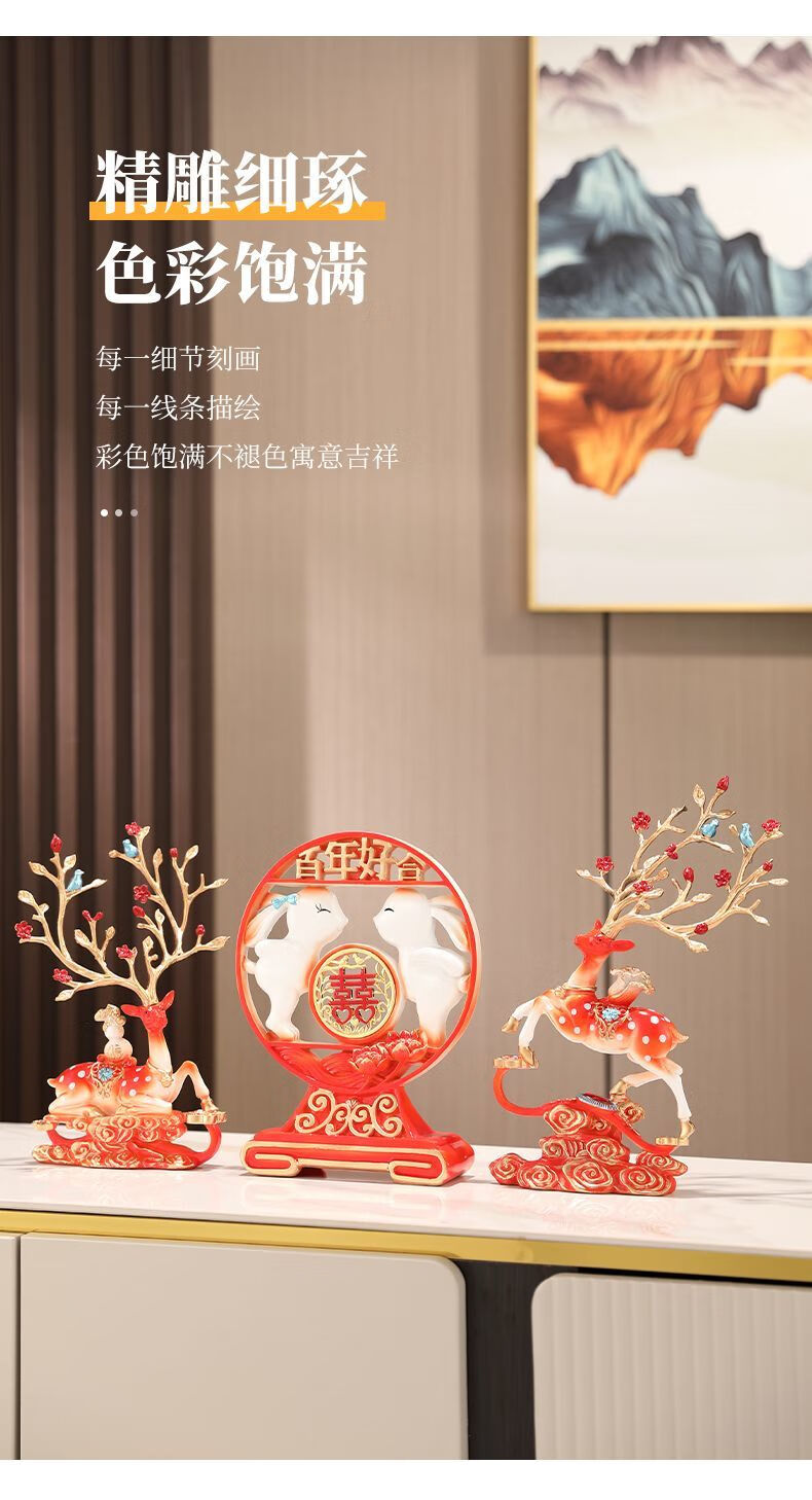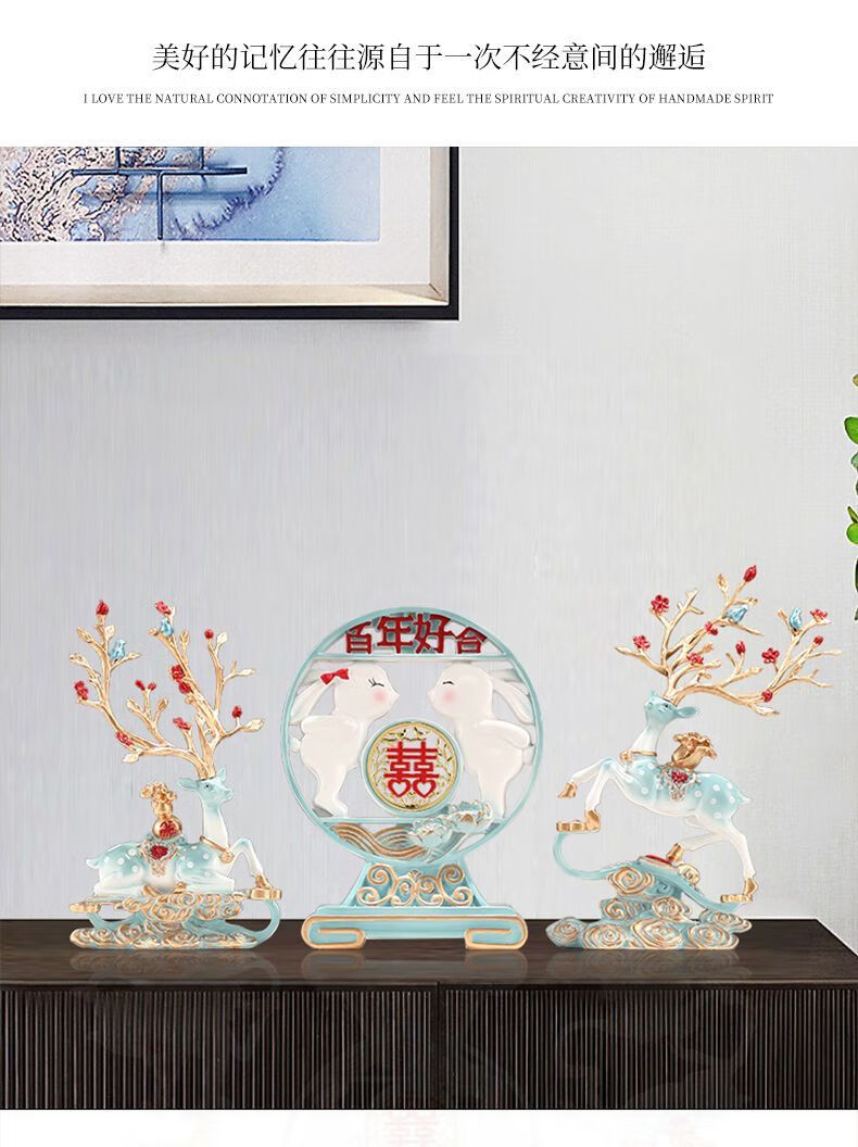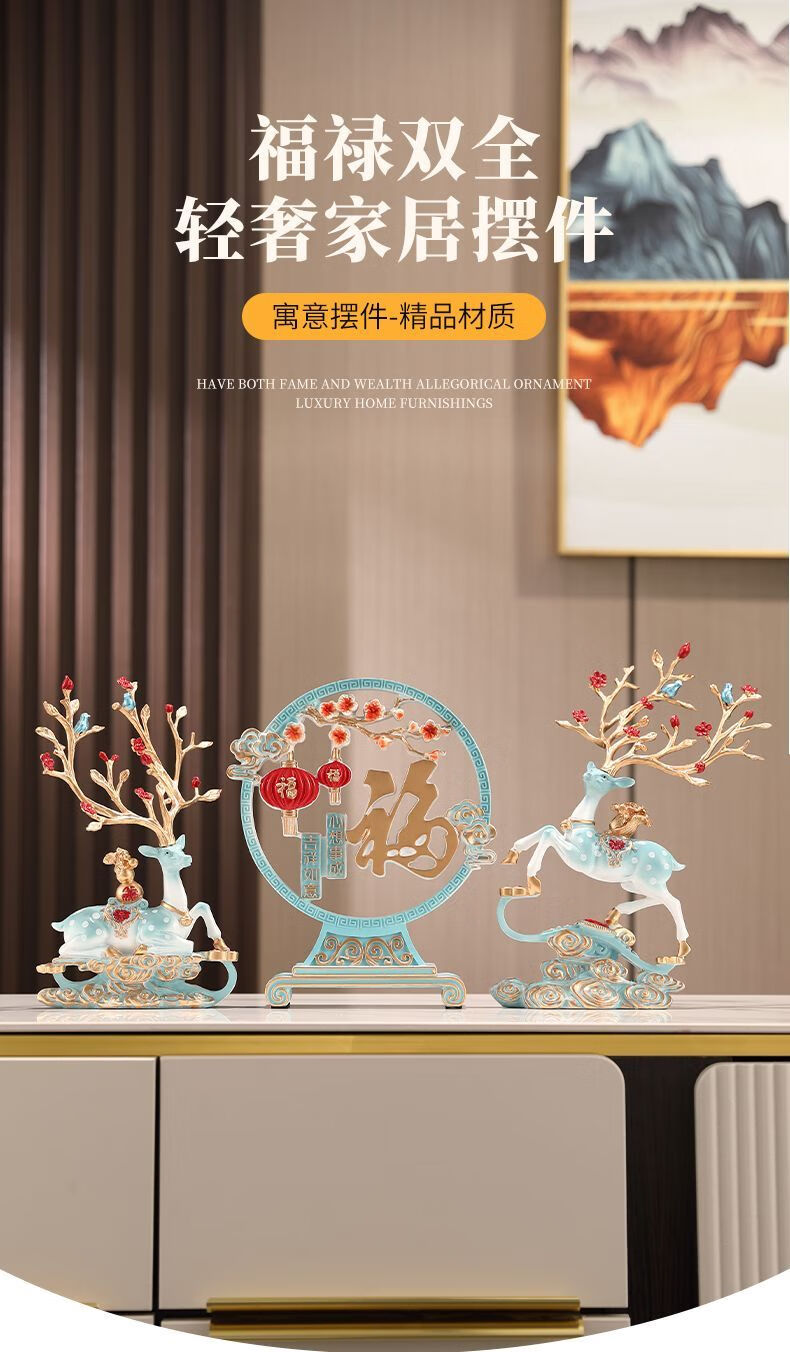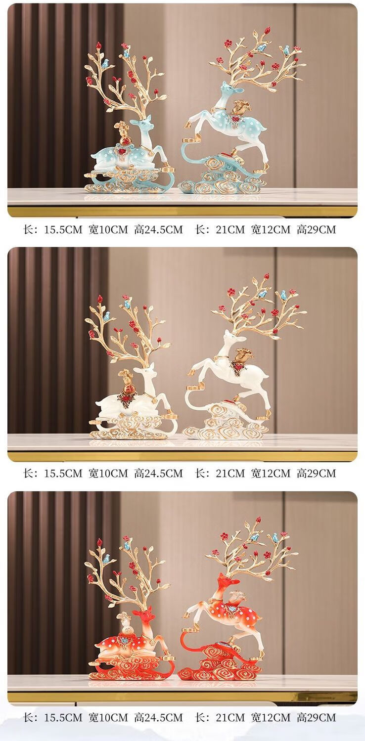 OYKTN创意鹿摆件客厅电视柜酒柜玄关家居装饰品乔迁新居礼品结婚礼物 q如意鹿(米白色)-无百年摆件