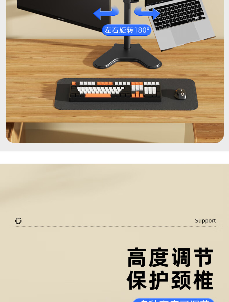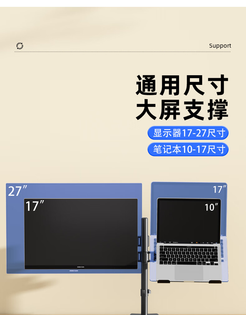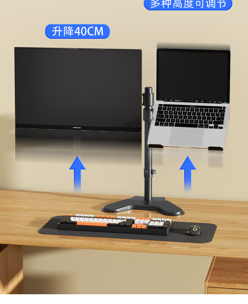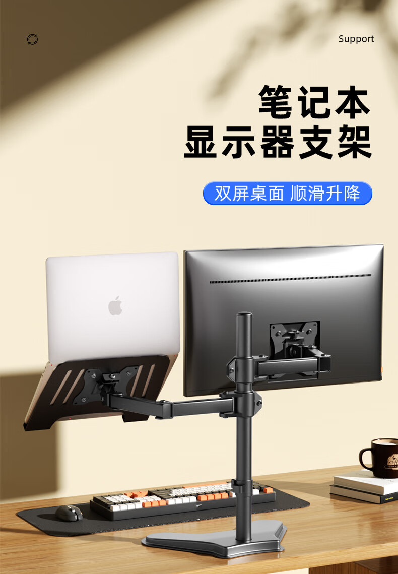 星凯仕显示器笔记本二合一支架电脑屏幕分屏增高架机械臂双屏架一拖二 底座升级款-50cm立柱【17-27英寸】