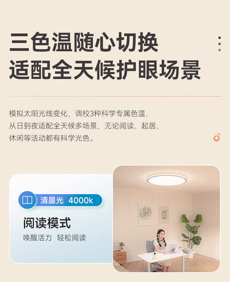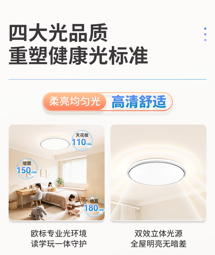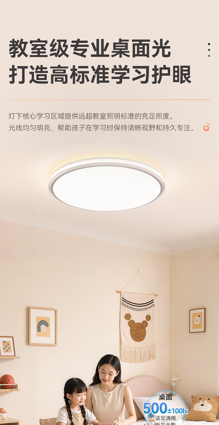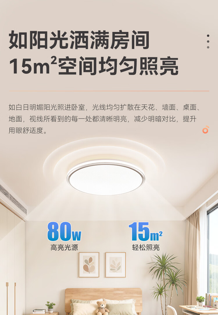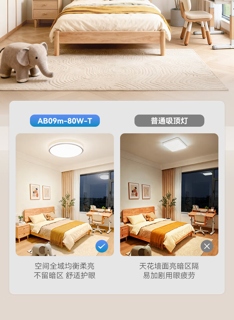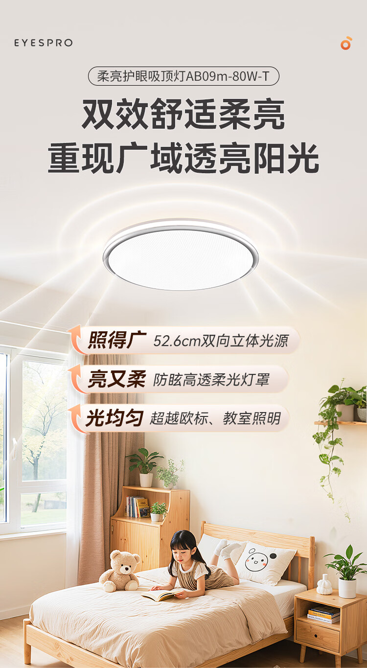孩视宝全光谱护眼吸顶灯80W儿童书房卧室led灯具包安装 80W 20㎡内适用 3712.8lm 舒适高亮无暗区AB09m-80W-T