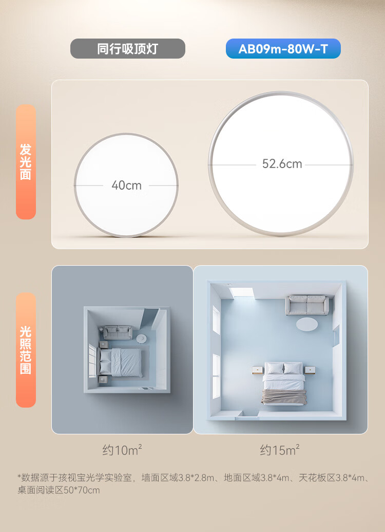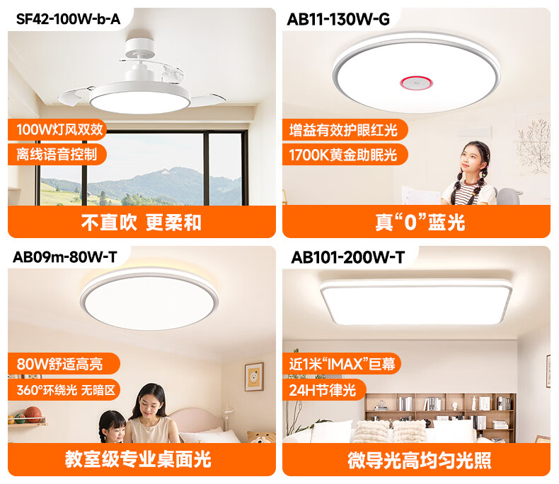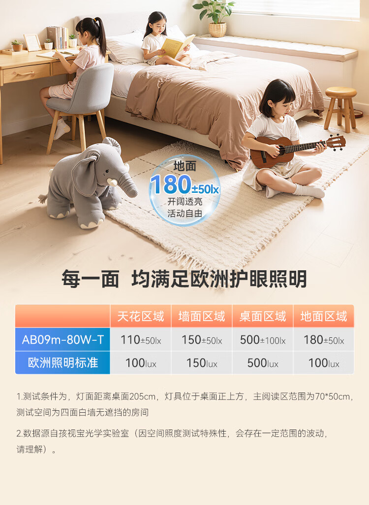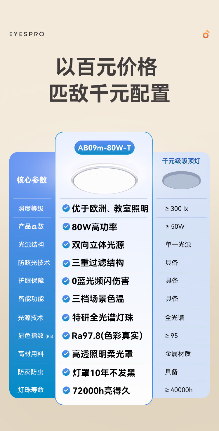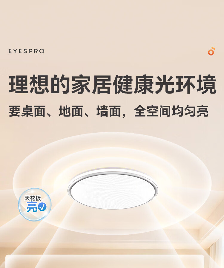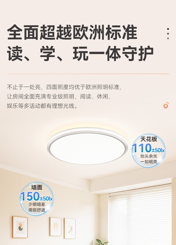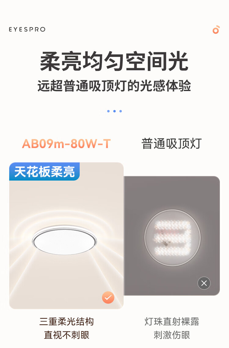 孩视宝全光谱护眼吸顶灯80W儿童书房卧室led灯具包安装 80W 20㎡内适用 3712.8lm 舒适高亮无暗区AB09m-80W-T