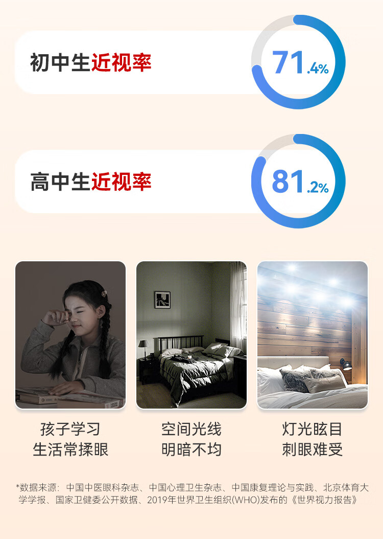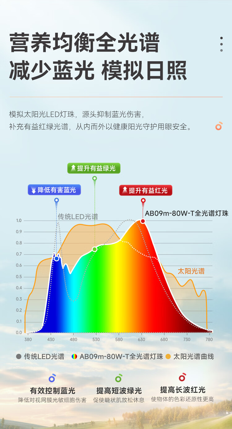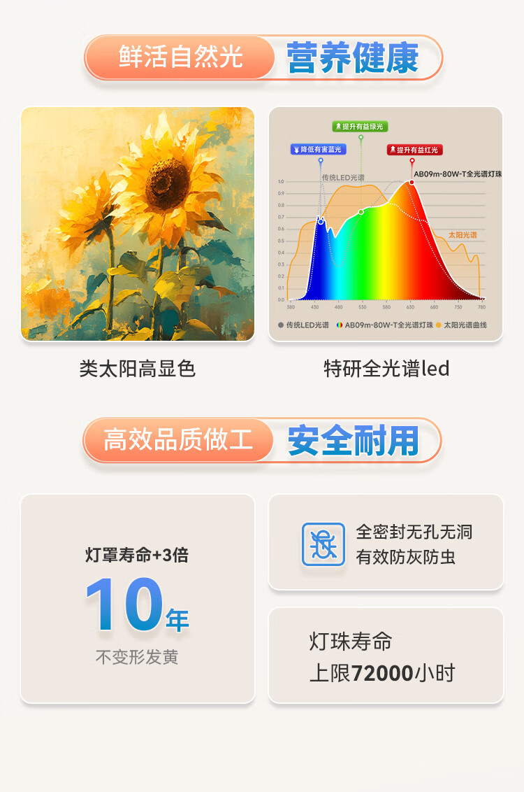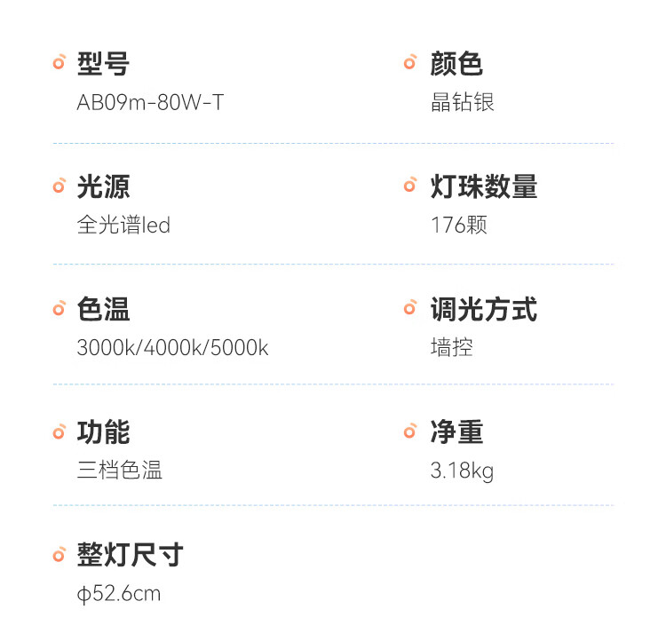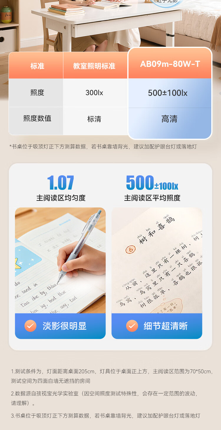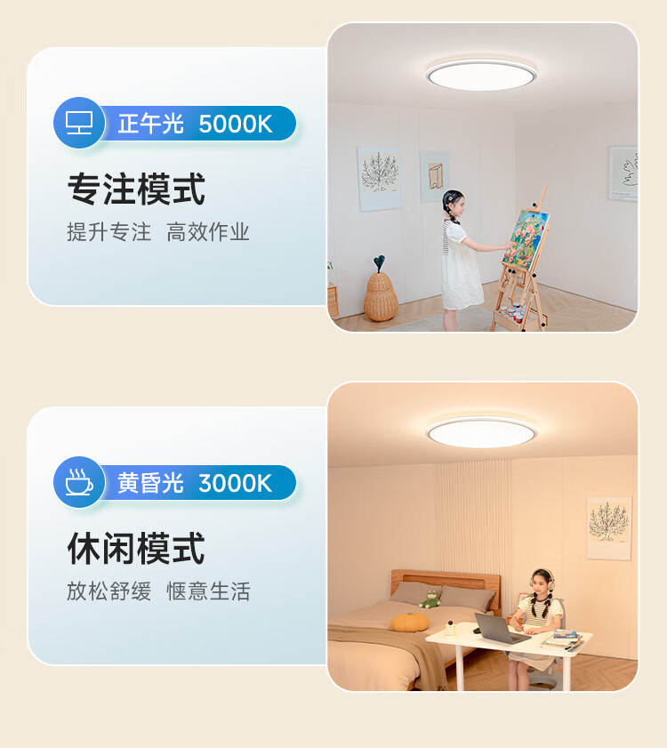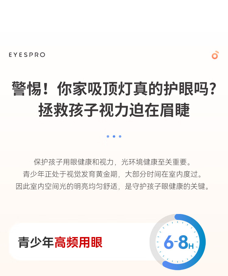 孩视宝全光谱护眼吸顶灯80W儿童书房卧室led灯具包安装 80W 20㎡内适用 3712.8lm 舒适高亮无暗区AB09m-80W-T