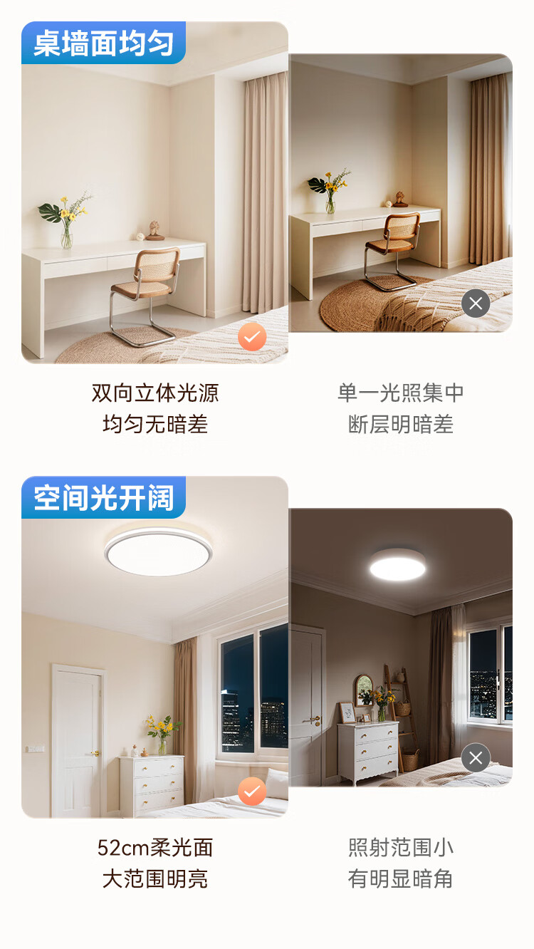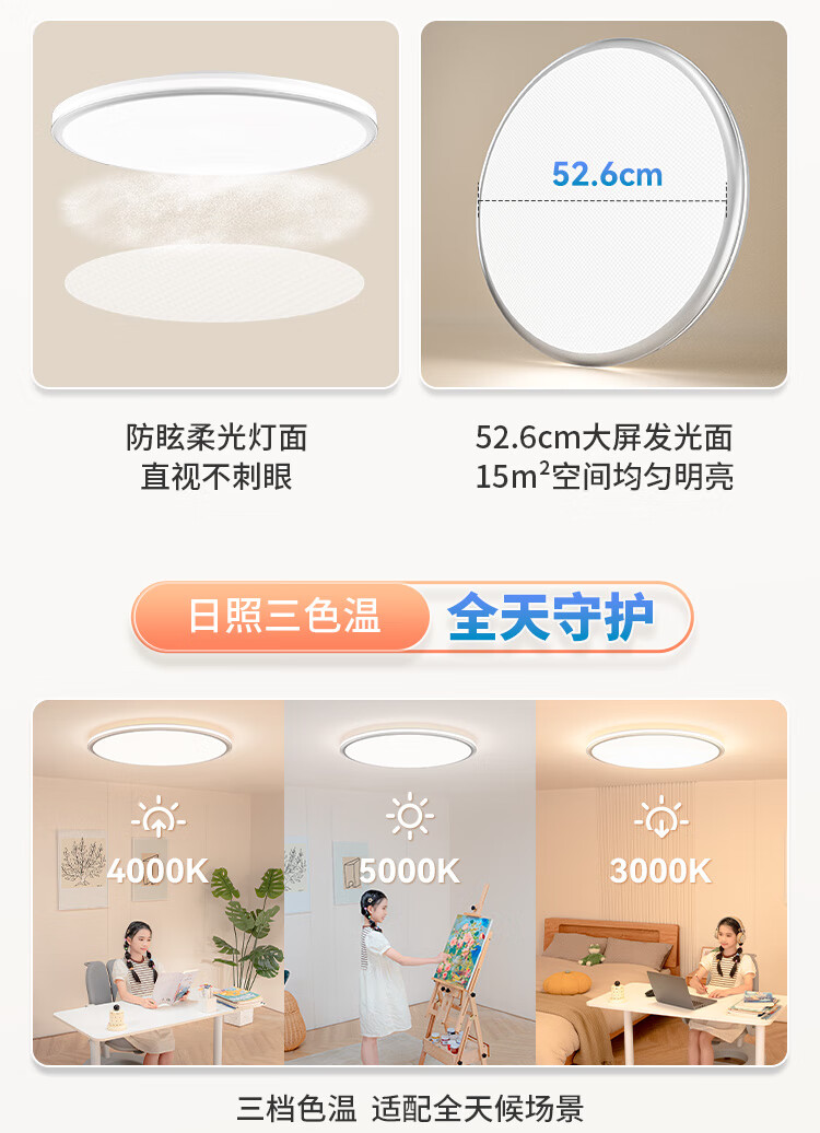 三雄极光led吸顶灯全光谱护眼客厅灯餐厅灯防蓝光书房灯具 128W 30㎡内适用 6800lm P3智控·接入米家app