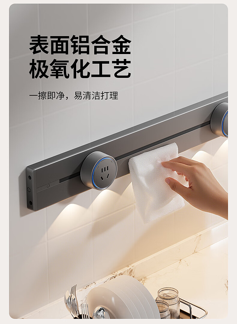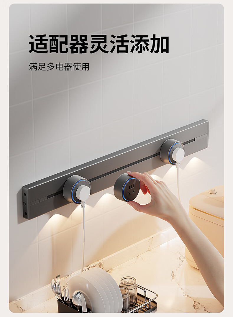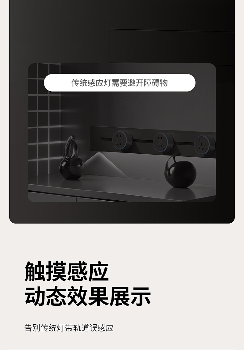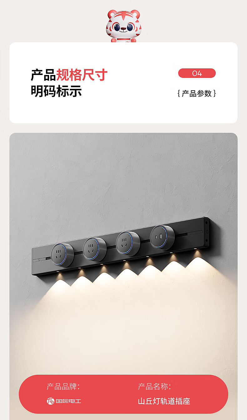 国际电工触摸感应灯轨道插座山丘灯可移动家用厨房客厅滑轨滑动明装插排 柔光白 60厘米山丘灯轨道+4个五孔