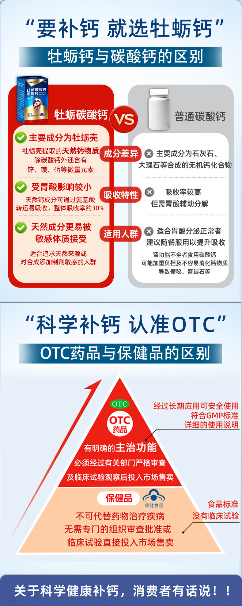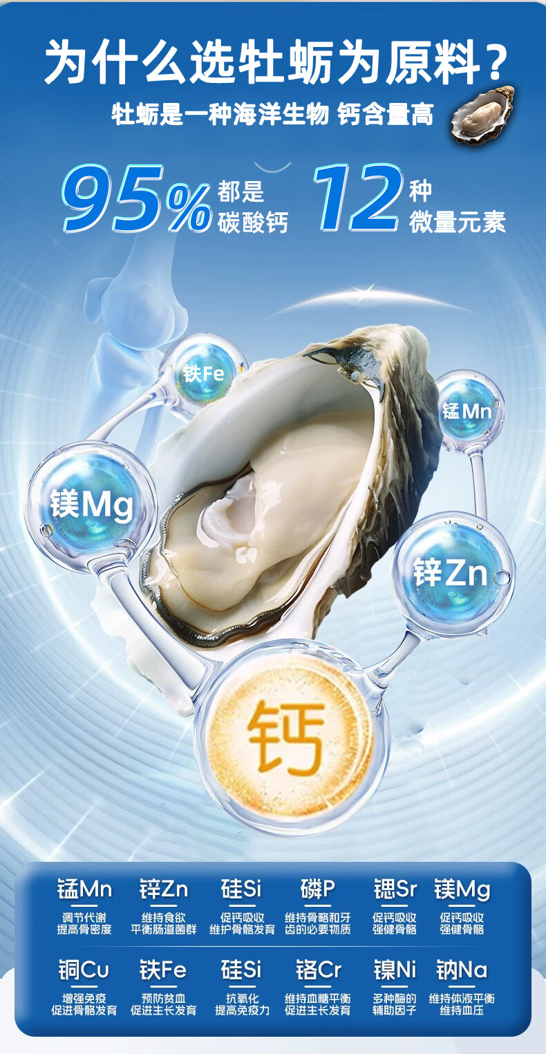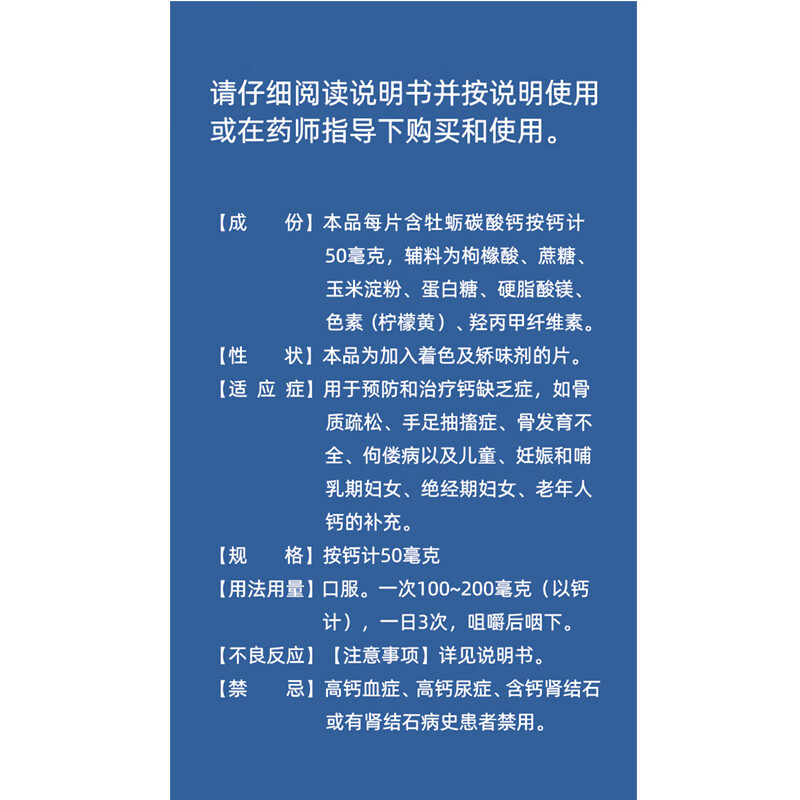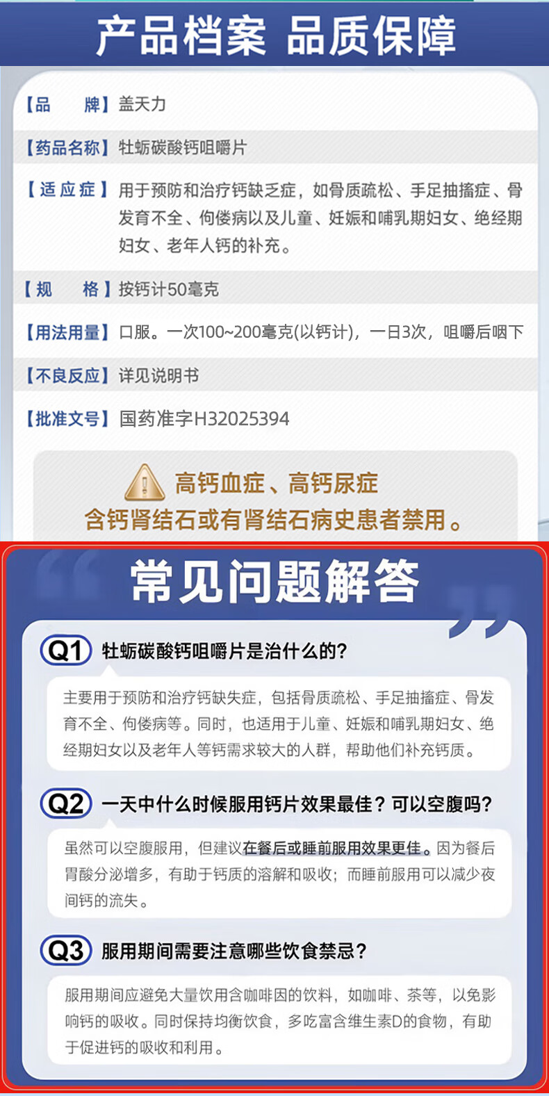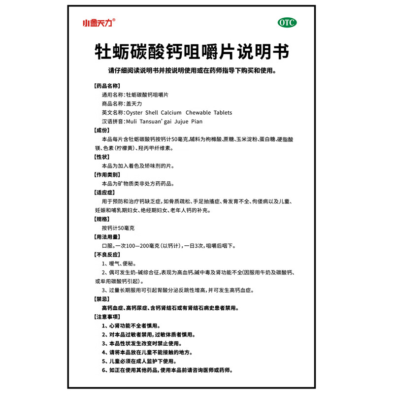 [盖天力]牡蛎碳酸钙咀嚼片 50mg*60片 1盒装 钙片适用于儿童孕妇中老年补钙 预防缺钙骨质疏松尔奇蚝贝钙片成人女士补钙 约10天量