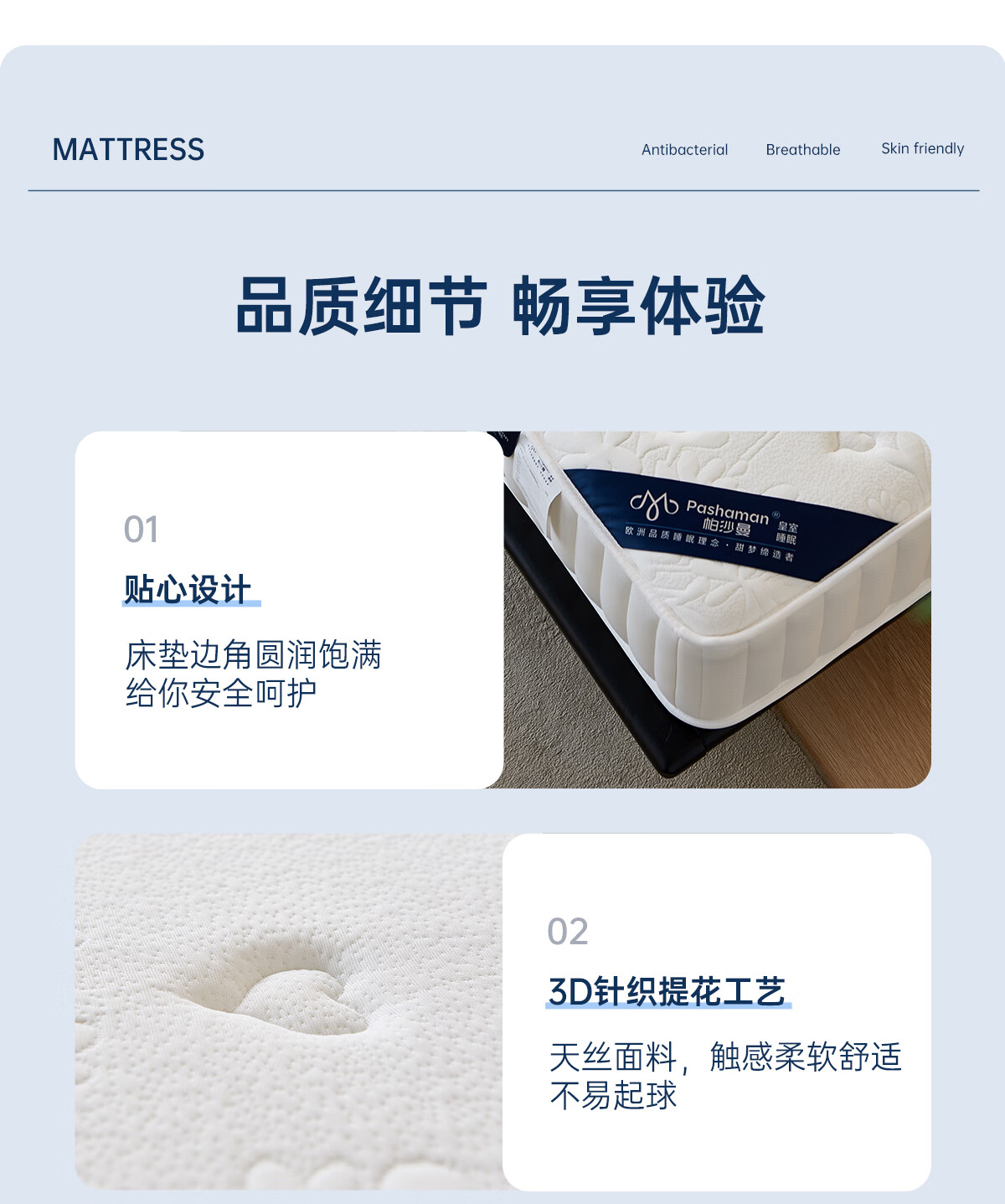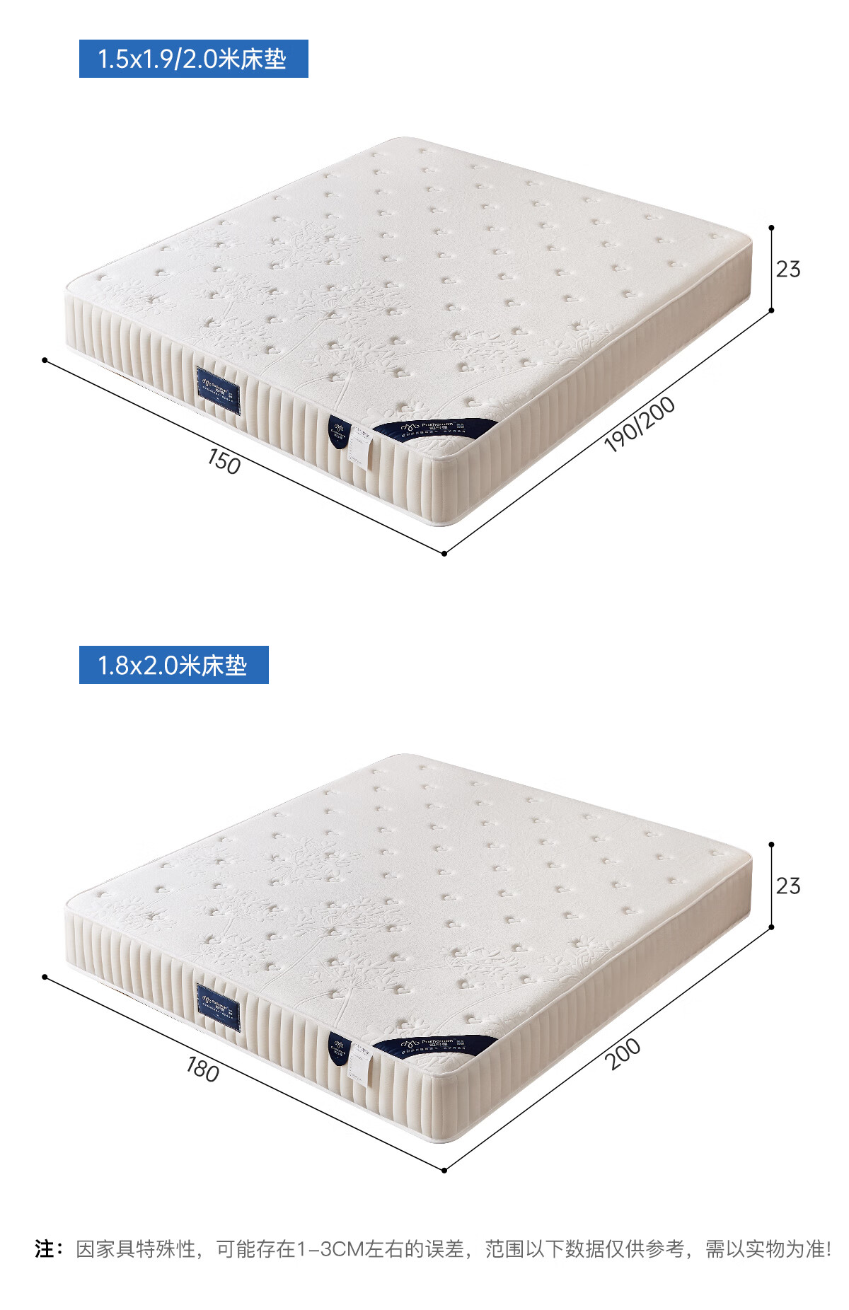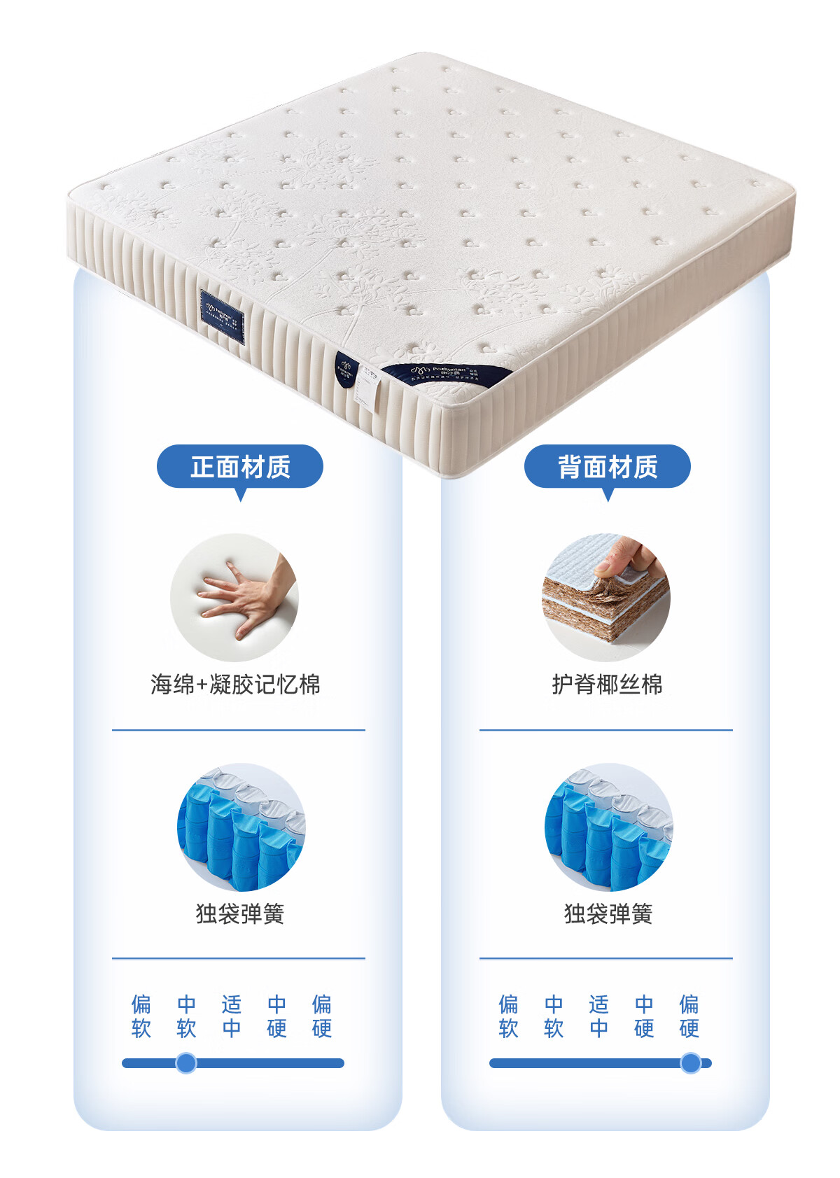 帕沙曼护脊床垫软硬两用卧室席梦思零压力记忆棉棕垫DN50859 床垫 【软硬两面 适合大部分人群】四季舒睡床垫23cm厚 1800mm*2000mm