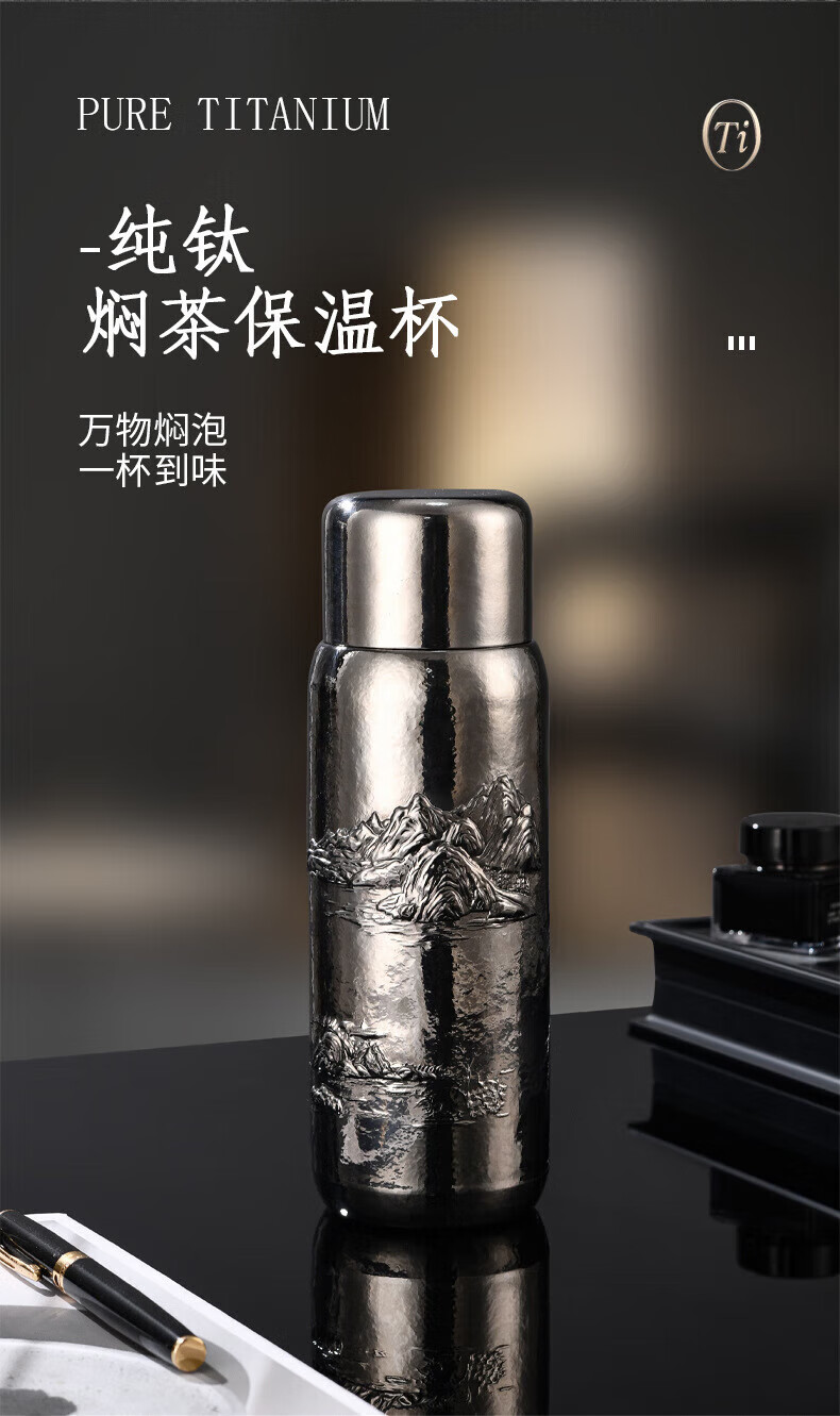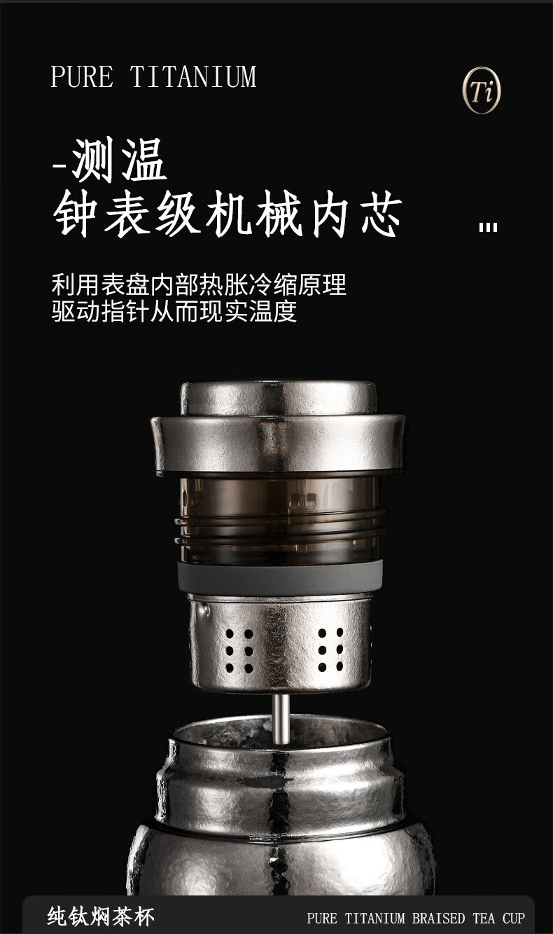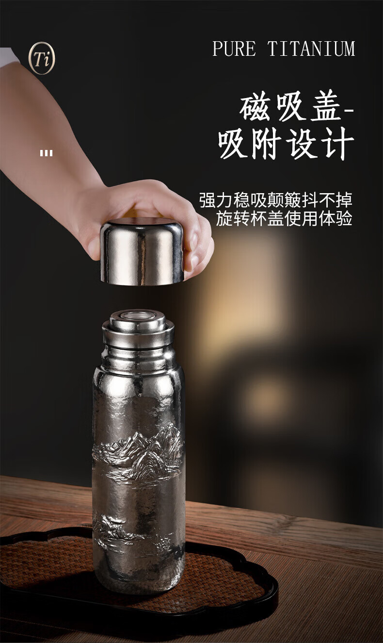 WFFPM德国品牌纯钛无缝内胆磁吸盖保温杯纯钛机械温显焖茶水分离泡茶杯 山水钛杯---钛本色 420ml