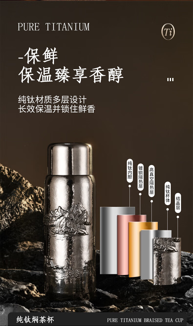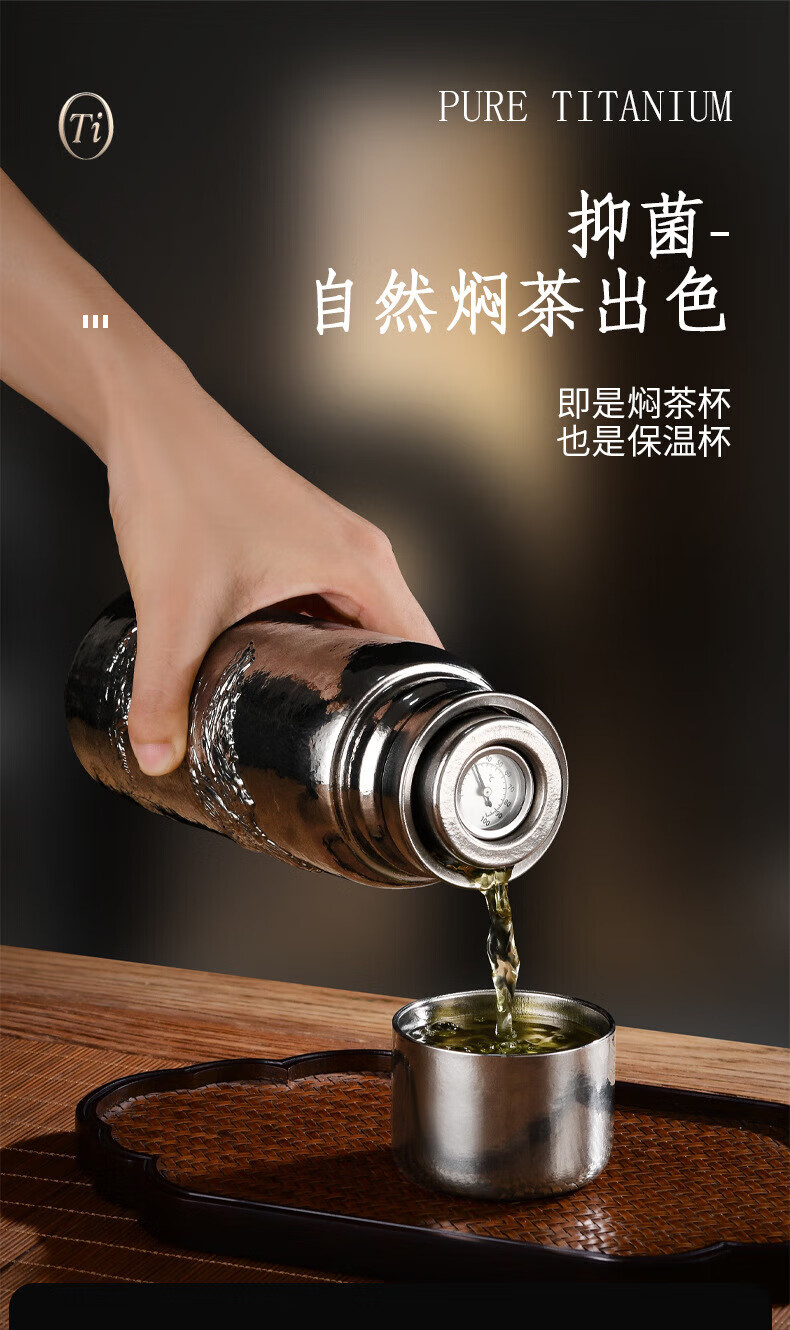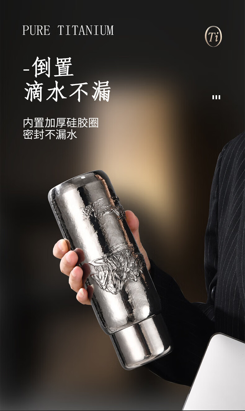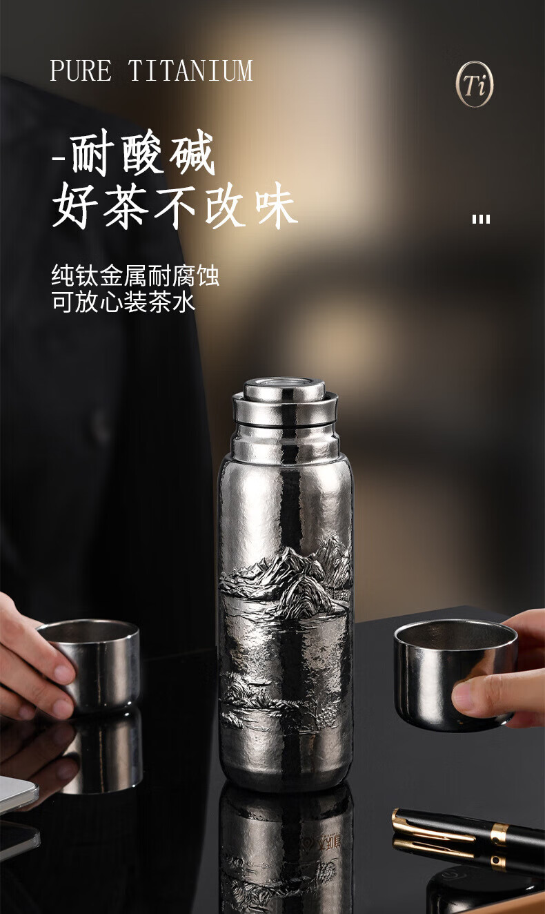 WFFPM德国品牌纯钛无缝内胆磁吸盖保温杯纯钛机械温显焖茶水分离泡茶杯 山水钛杯---钛本色 420ml