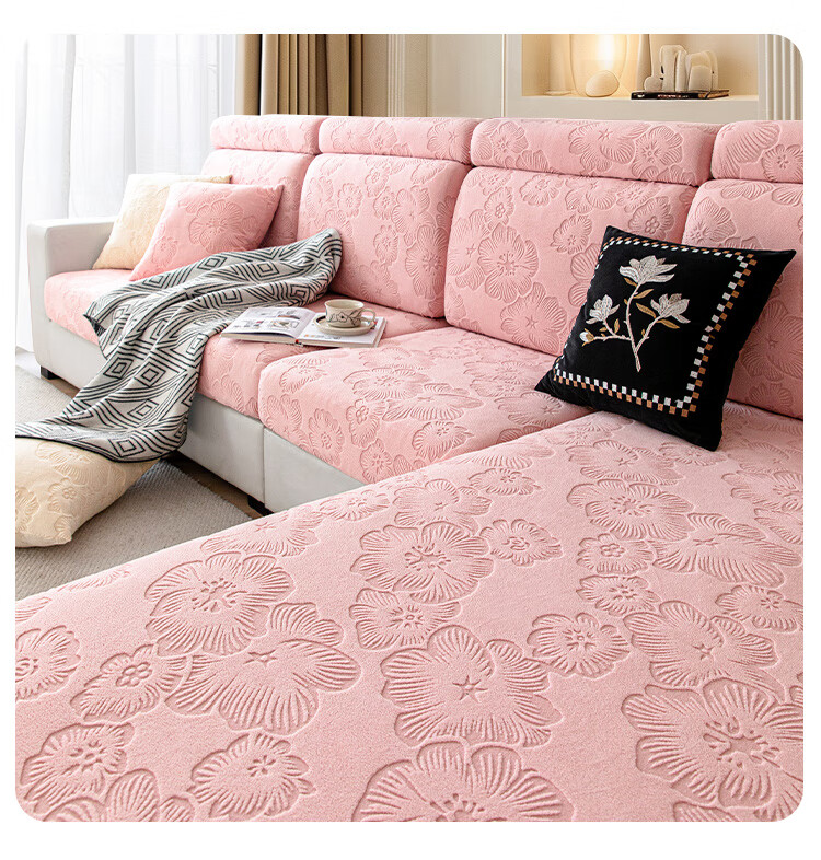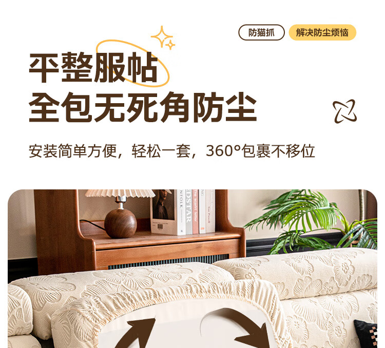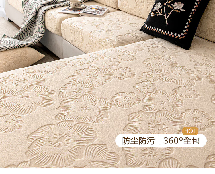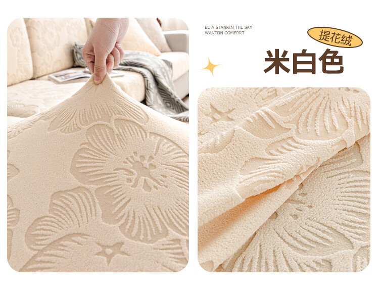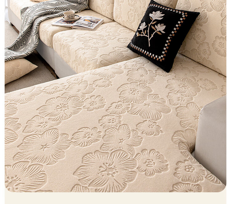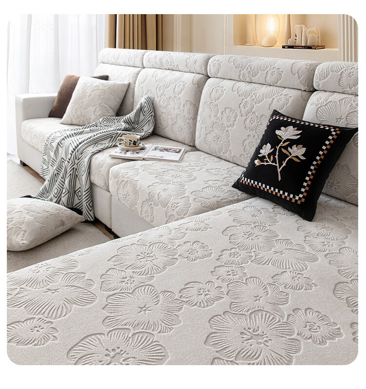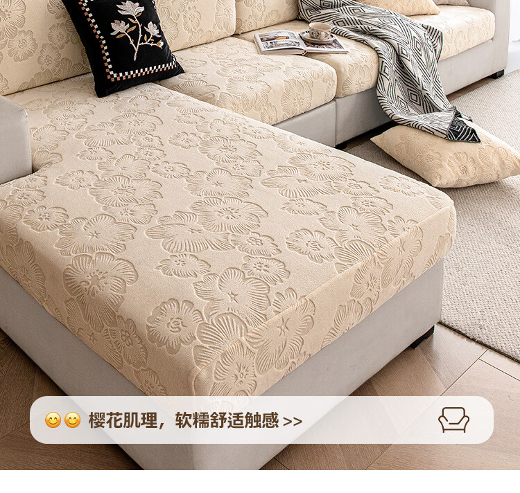 金拾美月防猫抓提花绒沙发套罩2025新款四季通用型坐垫笠全包万能盖布巾 樱花笠-米白 单人加大S宽65-85cm*长65-95cm