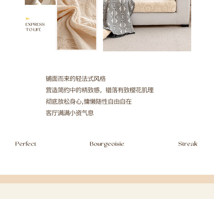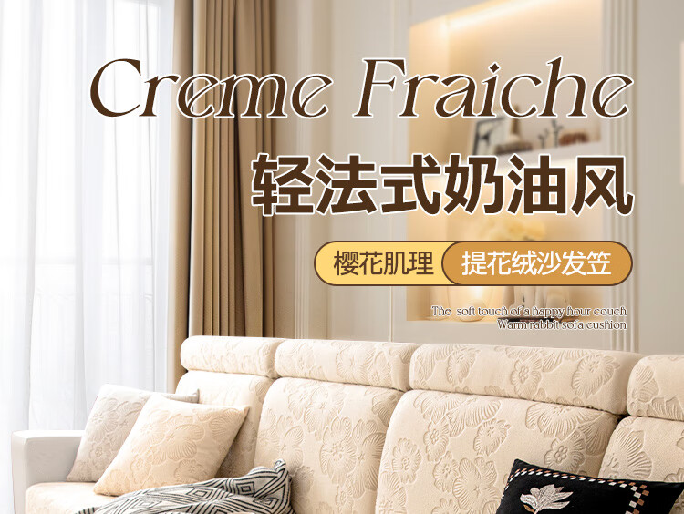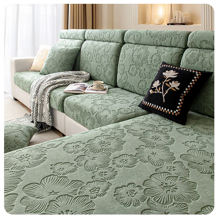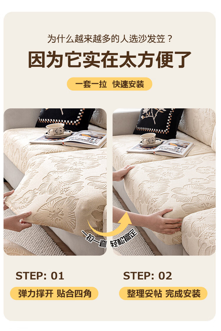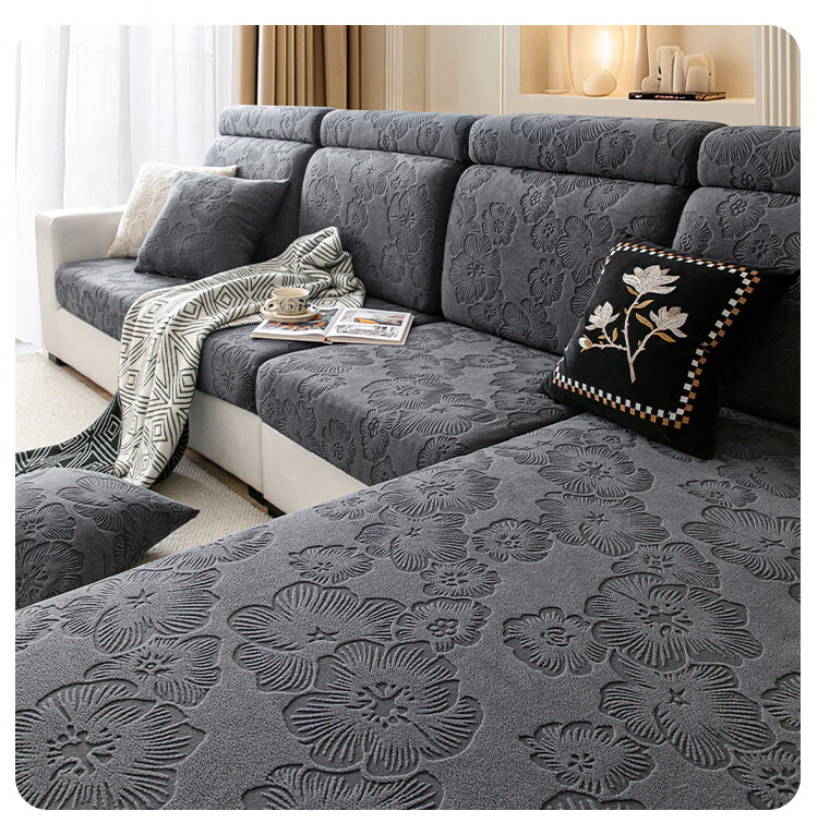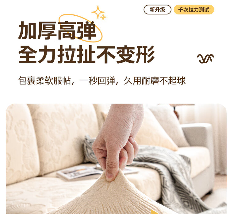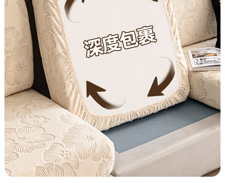金拾美月防猫抓提花绒沙发套罩2025新款四季通用型坐垫笠全包万能盖布巾 樱花笠-米白 单人加大S宽65-85cm*长65-95cm