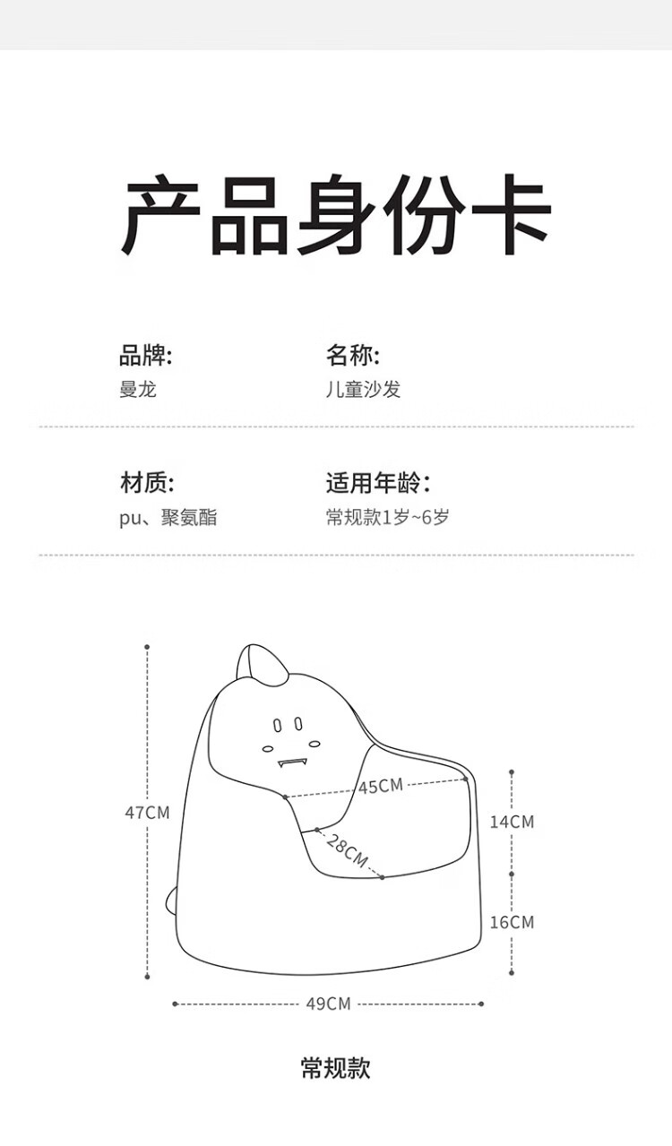 曼龙儿童沙发卡通动物沙发女男孩婴儿宝宝可爱座椅学生坐凳生日礼物 曼龙尼尼狮【适合1岁-6岁】 40