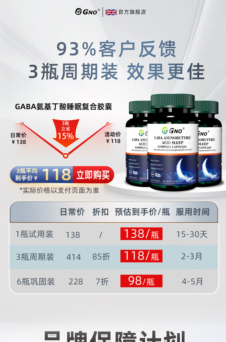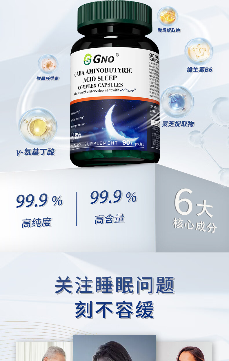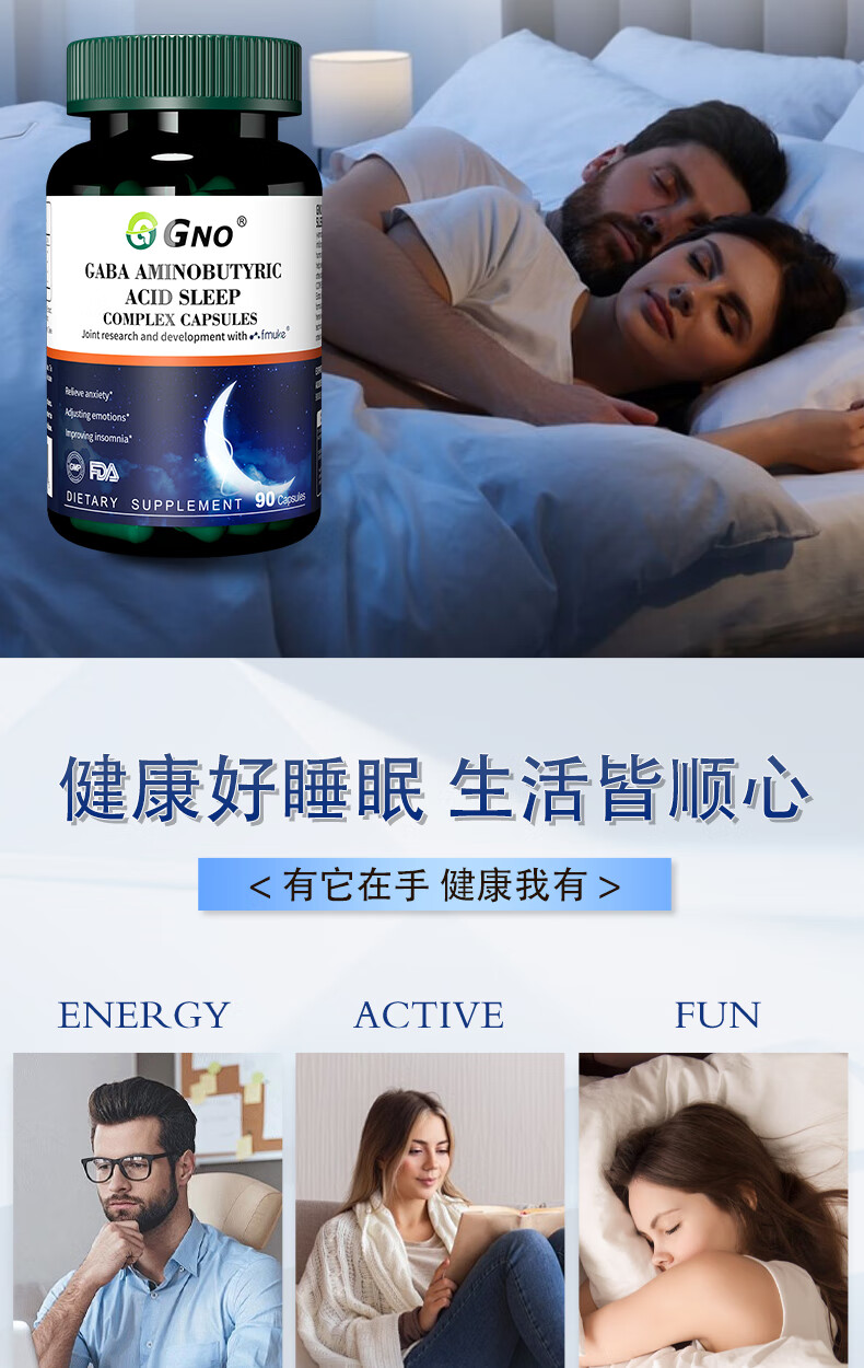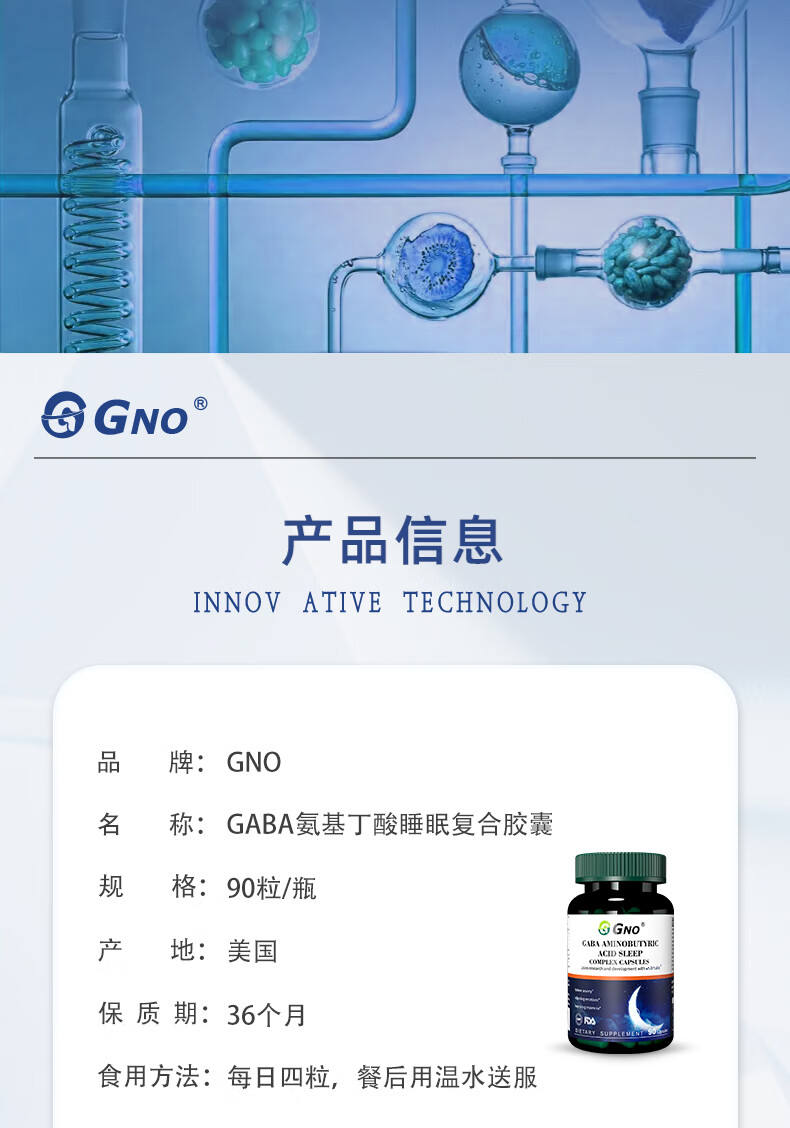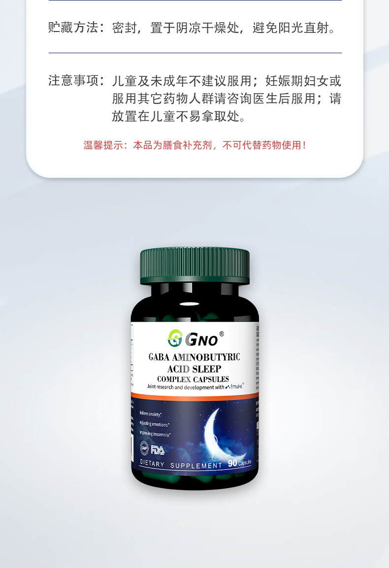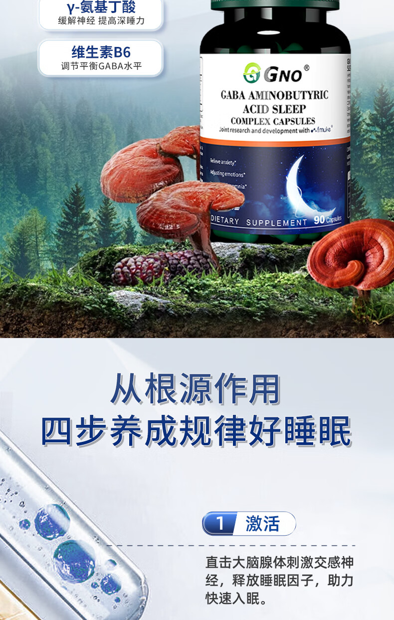 GNO氨基丁酸gaba失眠睡眠片褪黑素维生素b6改善睡眠失眠焦虑 90粒/瓶