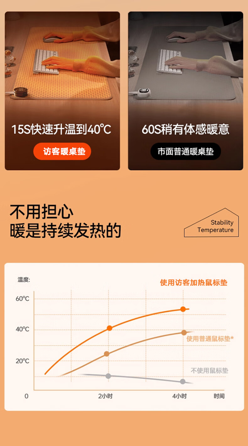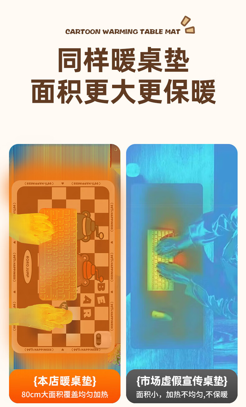 箱居加热鼠标垫大号发热暖桌垫办公室桌面发热垫学生写作业暖手垫 每日开心 中号60*36cm智能定时款