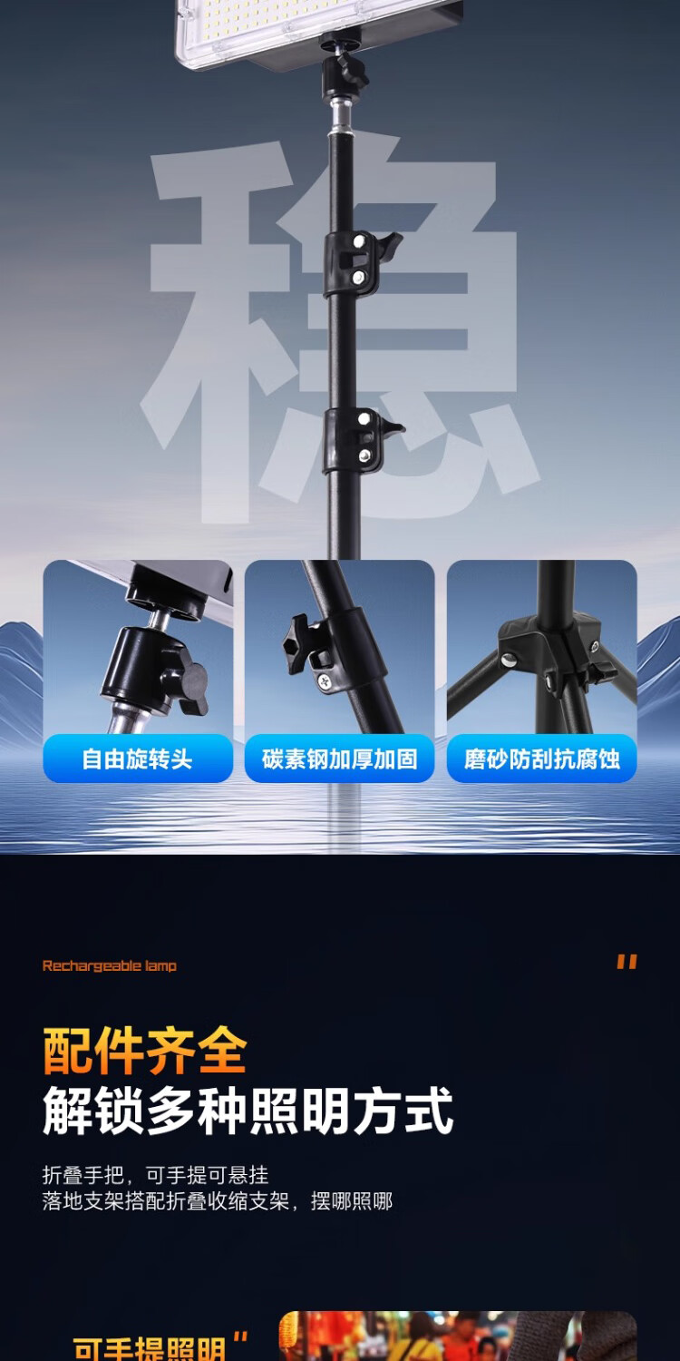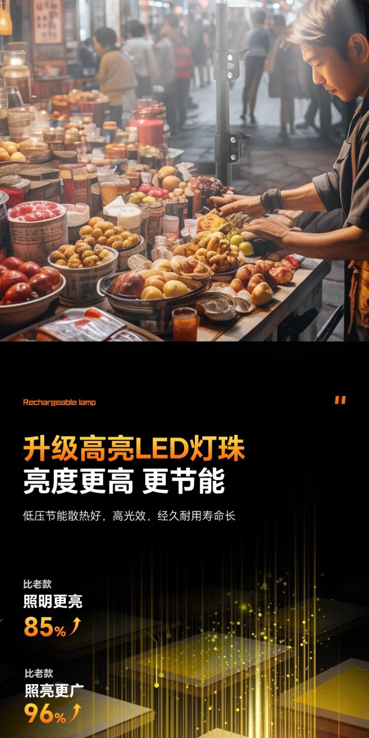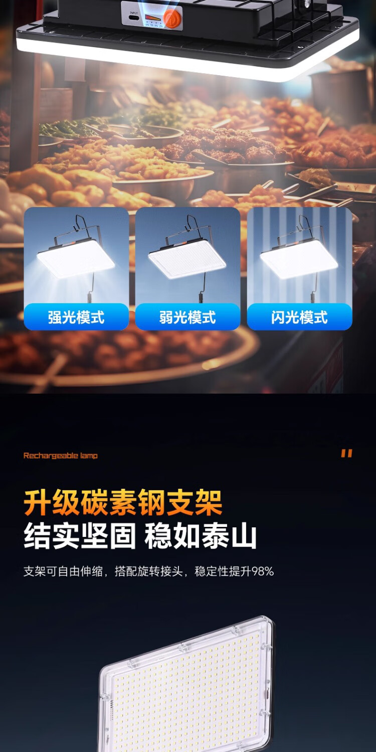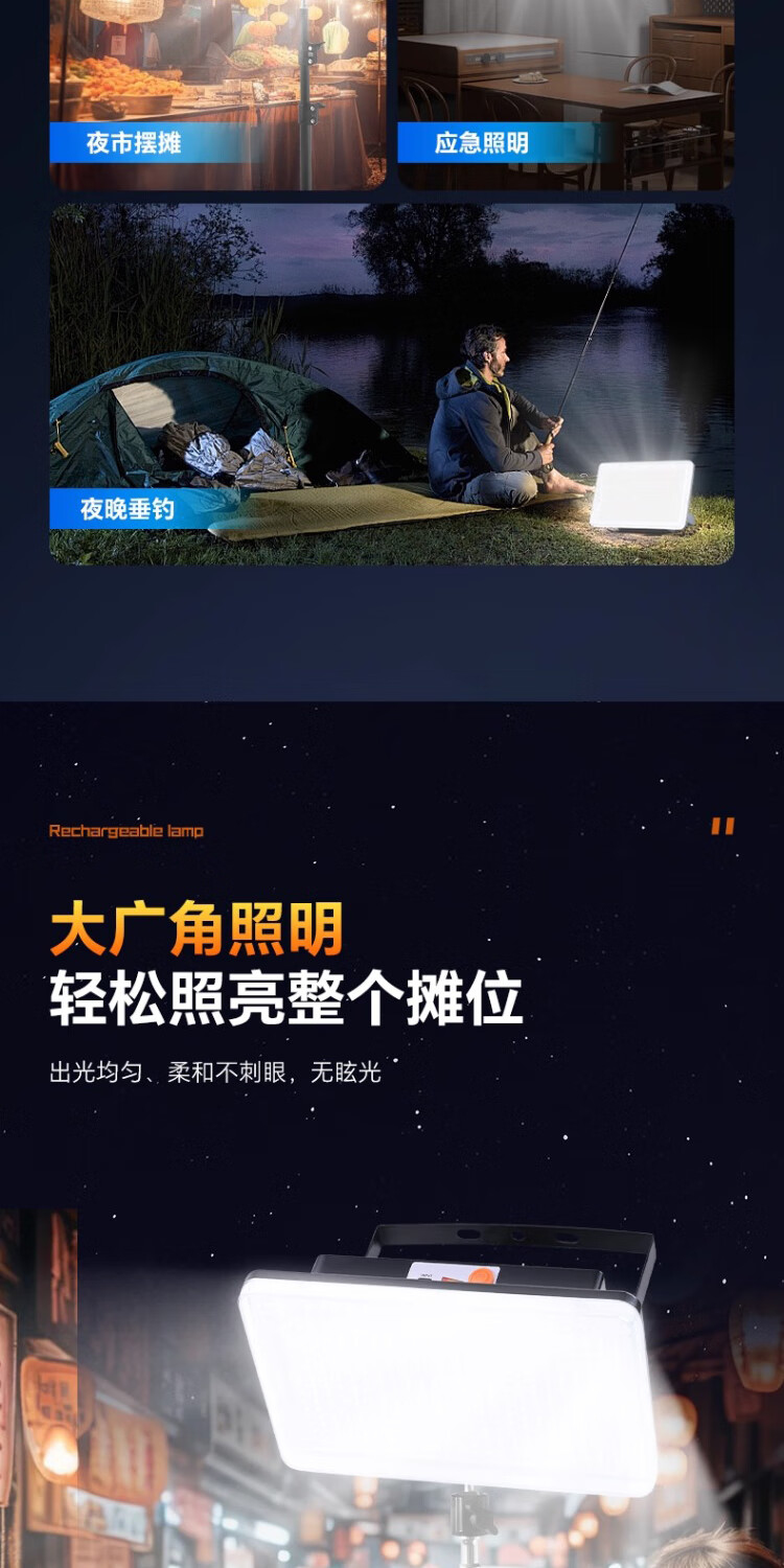振牛夜市摆摊照明灯爆亮充电led户外庭院灯超长续航大容量专用露营灯 【单灯款-白光】1200W型【10000毫安】 新升级爆亮灯珠+大广角照明