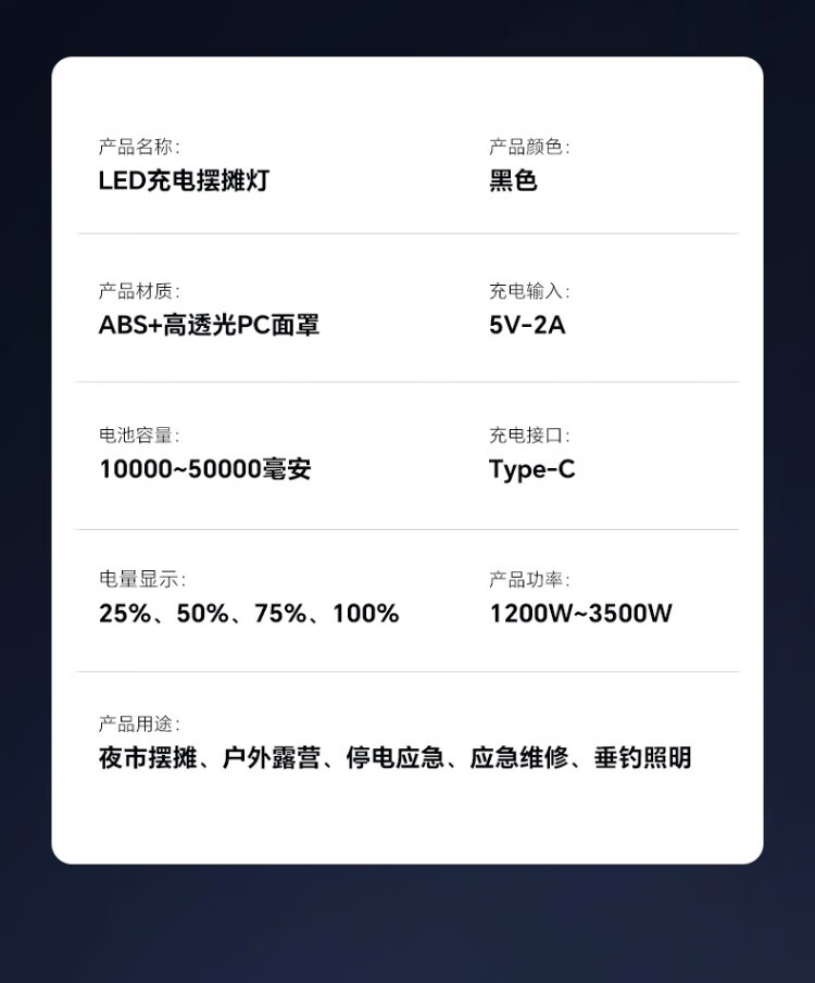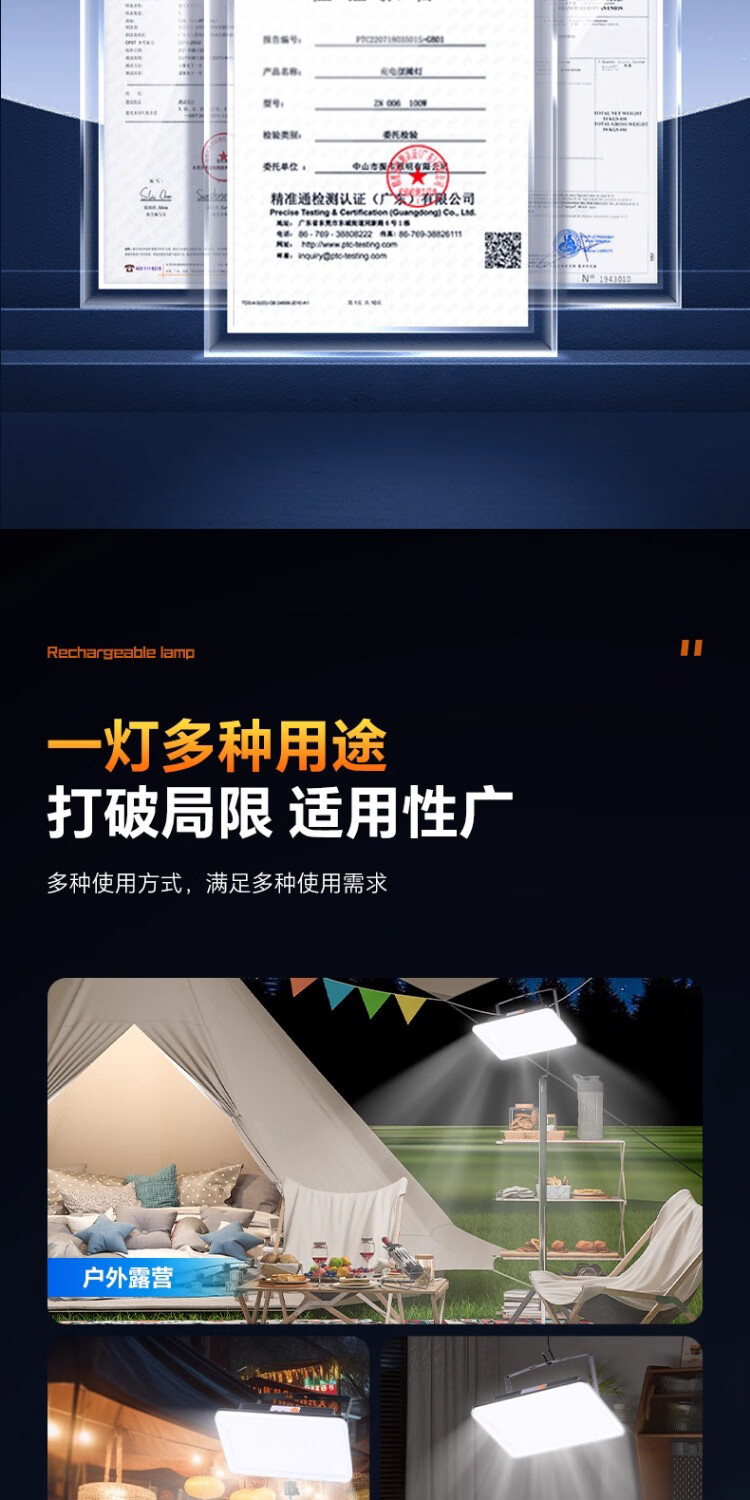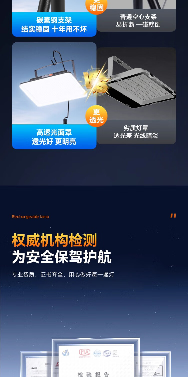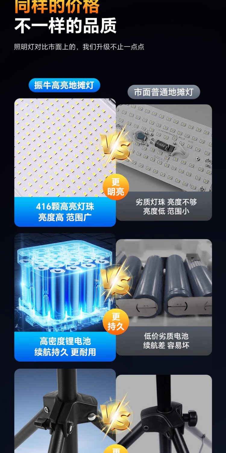 振牛夜市摆摊照明灯爆亮充电led户外庭院灯超长续航大容量专用露营灯 【单灯款-白光】1200W型【10000毫安】 新升级爆亮灯珠+大广角照明