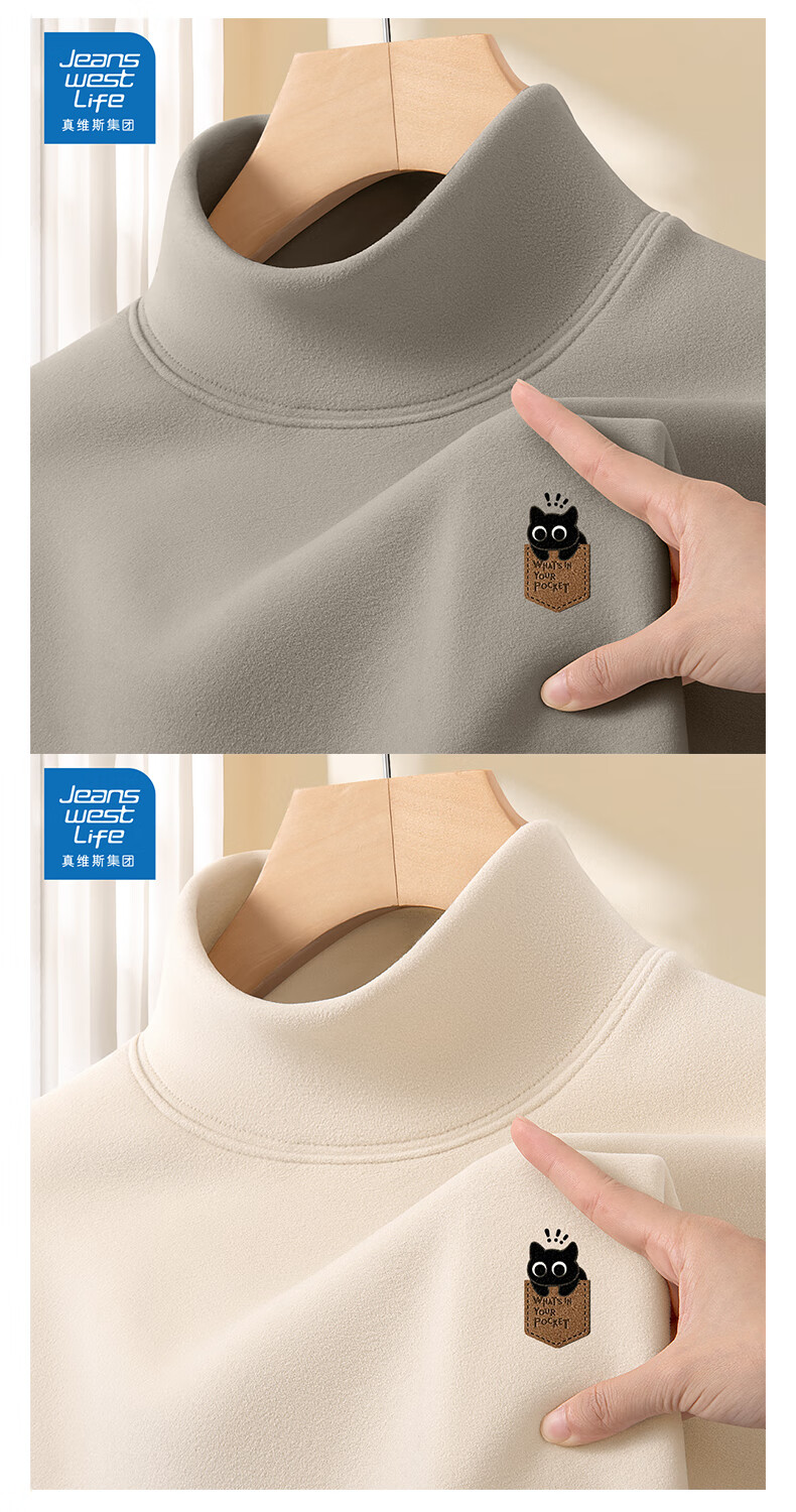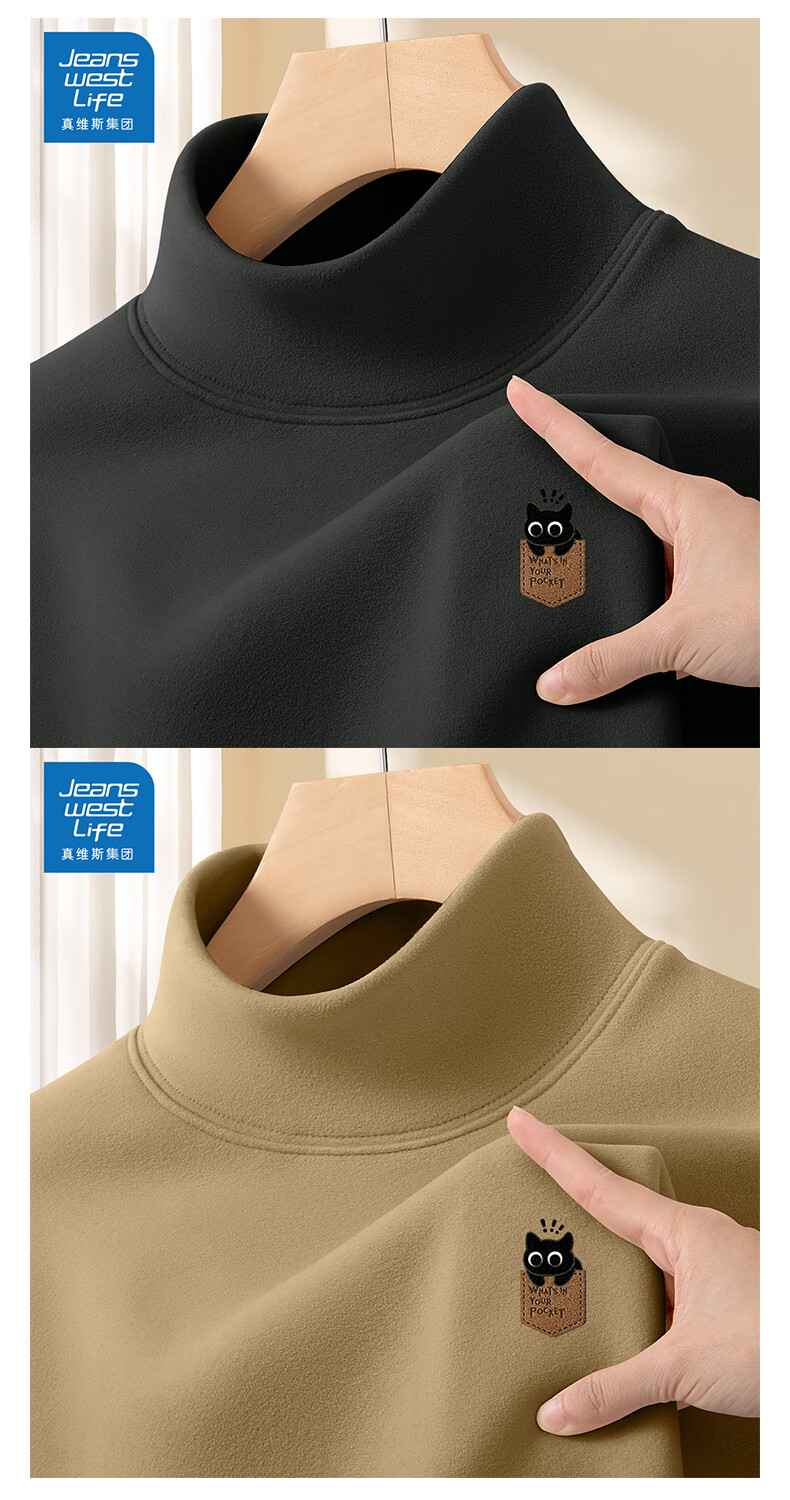 JEANSWEST LIFE真维斯打底衫男半高领德绒保暖青少年上衣秋冬款休闲内搭男士长袖