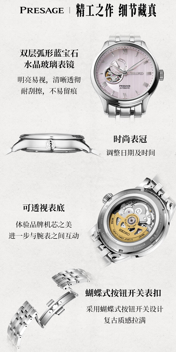 精工(SEIKO)手表 Presage时尚商务腕表防水机械腕表 送礼 SSA465J1 生日礼物