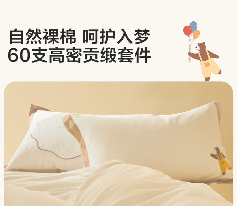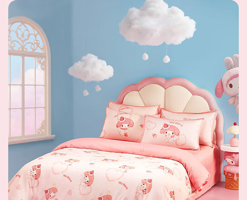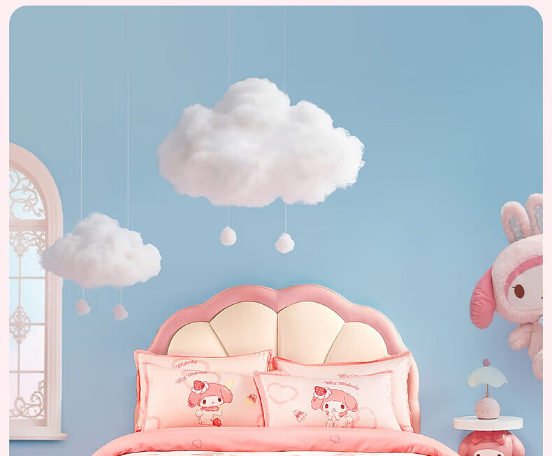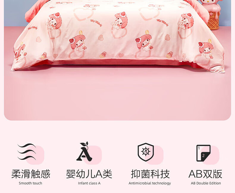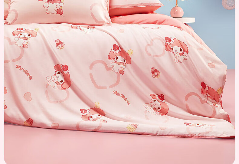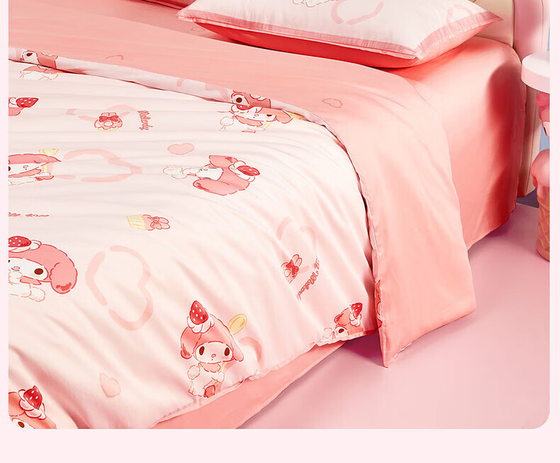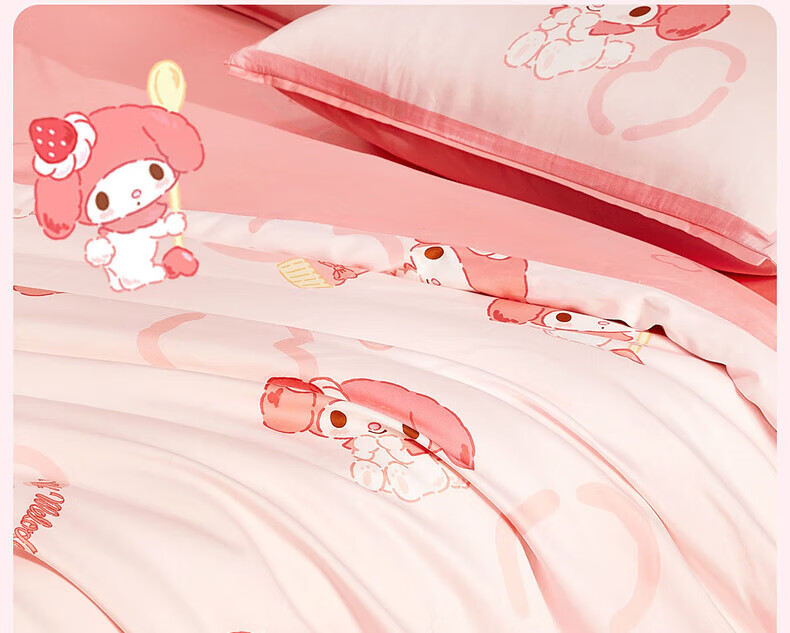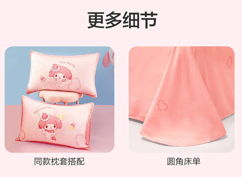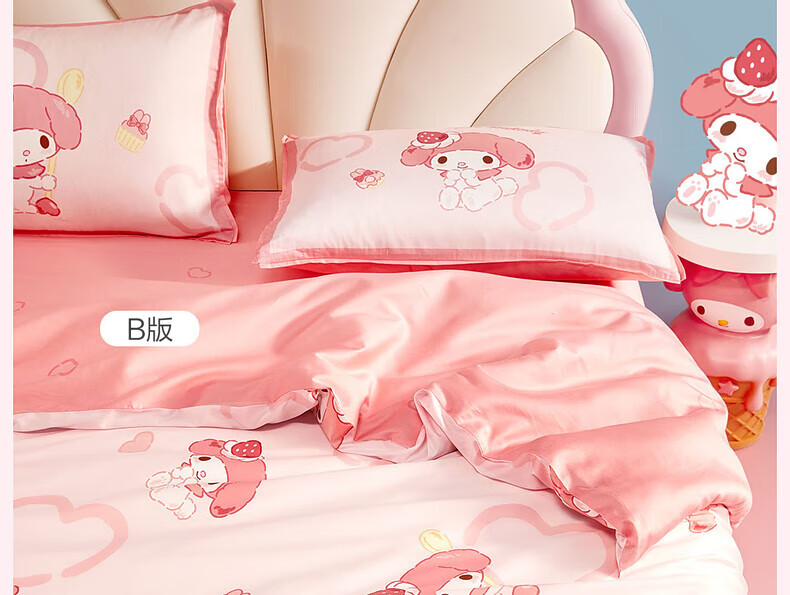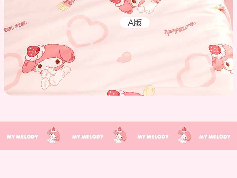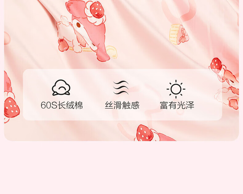 水星家纺三/四件套 60支长绒棉全棉四件套 母婴A类纯棉床单被套枕套套件 草莓美乐蒂 60支 (母婴A类+礼盒装) 1.5米床 床单款 (被套200*230cm)