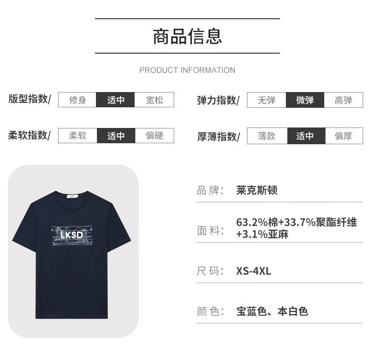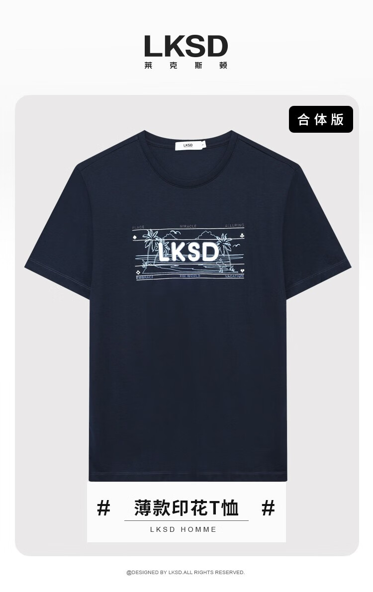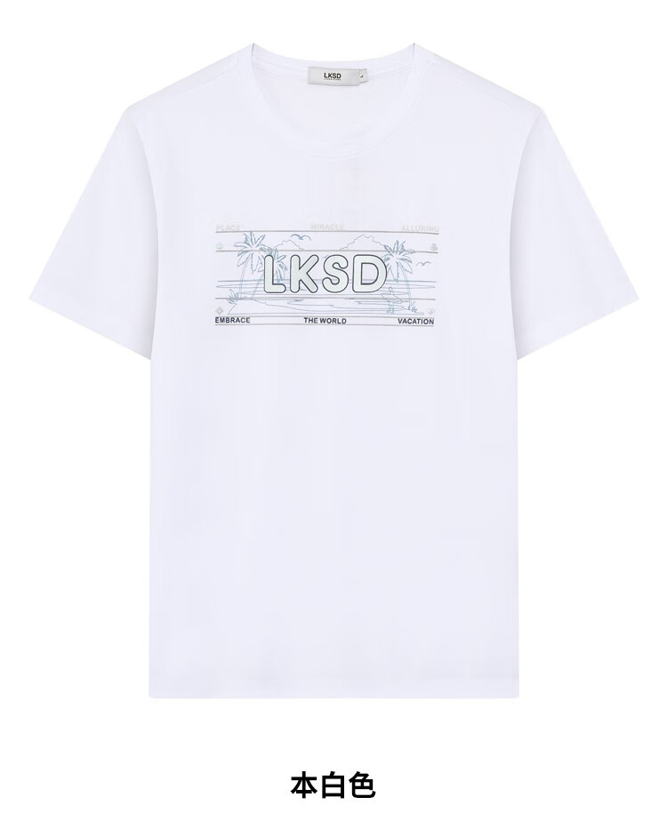 莱克斯顿(laxdn)夏季新款商务半袖t恤男圆领T恤男士印花打底衫体恤 本白 46/S(165/90)