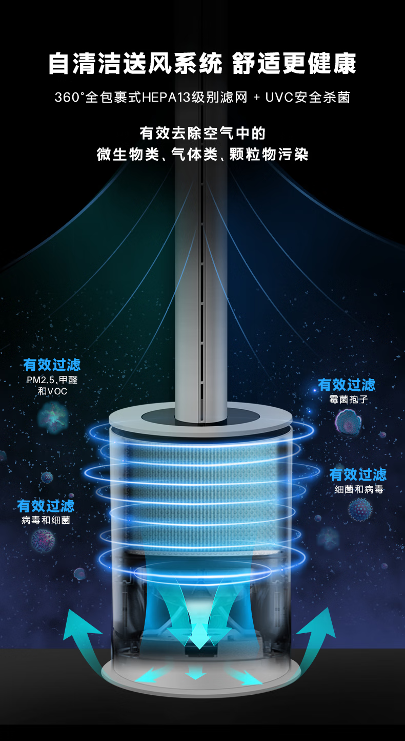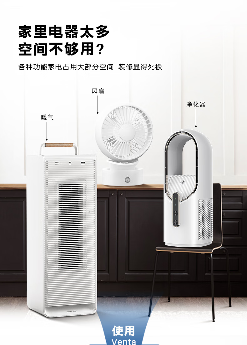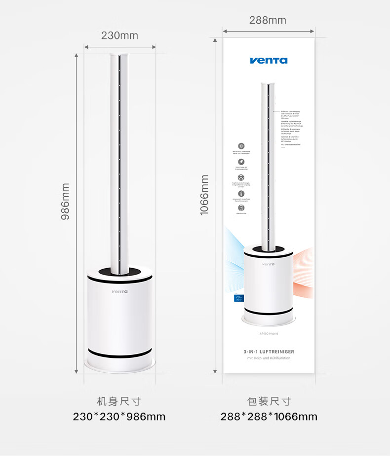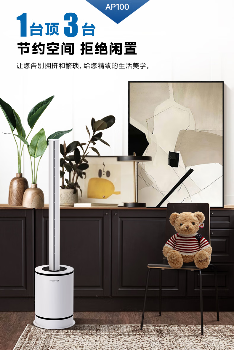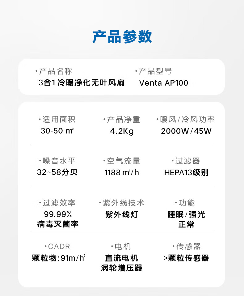 venTa【3年免费滤网】德国无叶风扇冷暖风扇静音家用落地取暖器空气循环扇电暖器立式净化扇文塔中秋礼 3合1冷暖风+空气净化