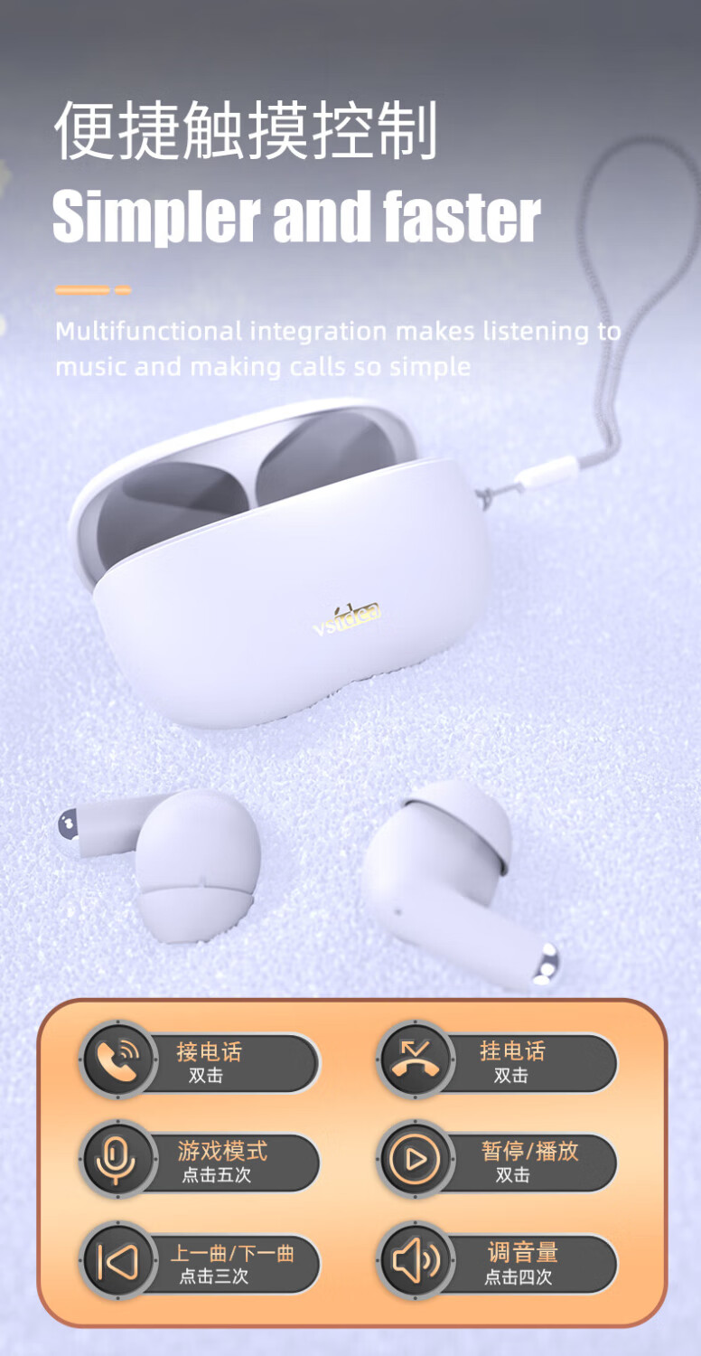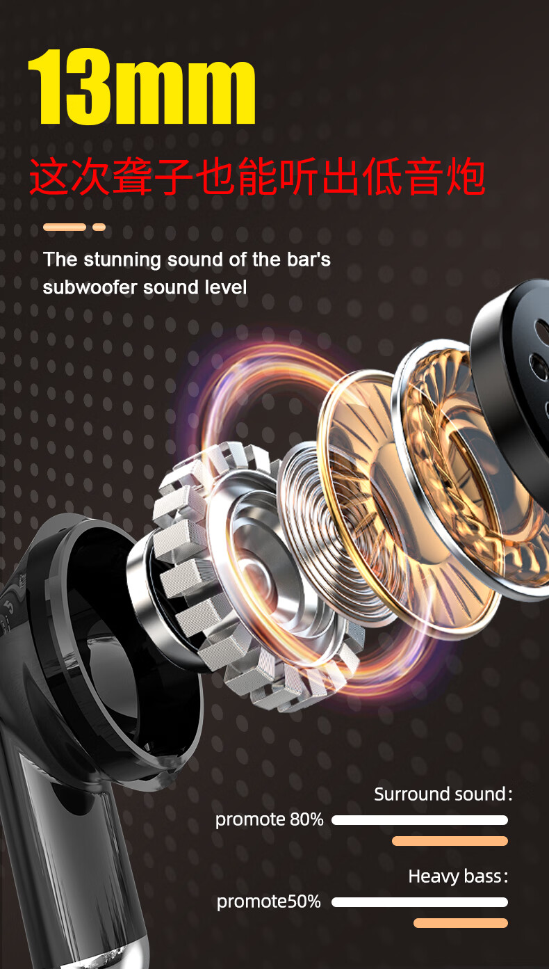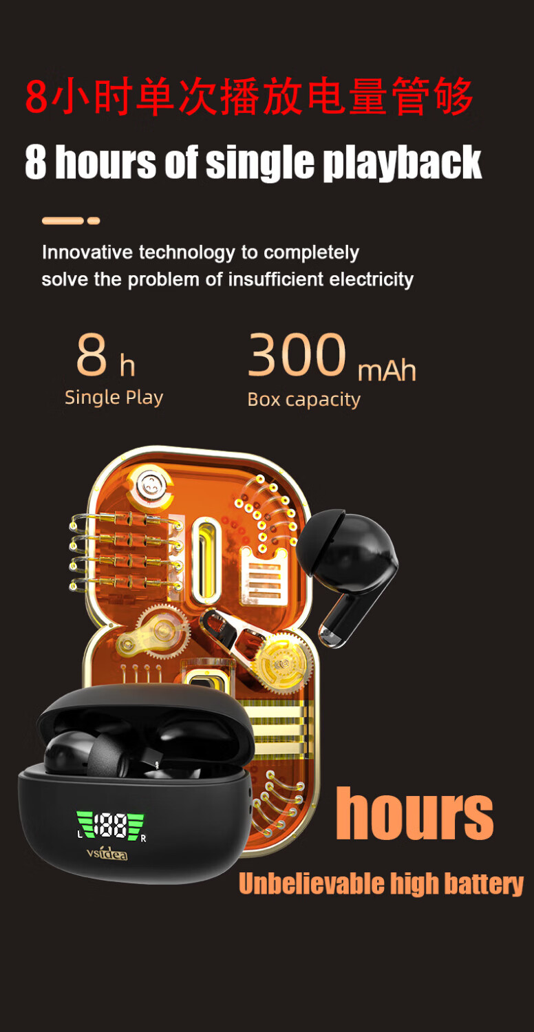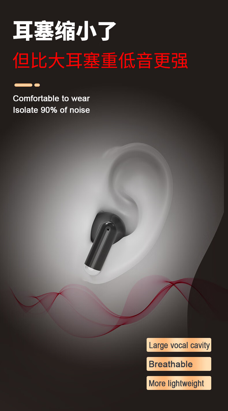 vsidea超重低音炮无线耳机蓝牙5.4迷你半入耳式HIFI立体声环绕大音量长续航超小可爱定制特供版 黑色(有数显)