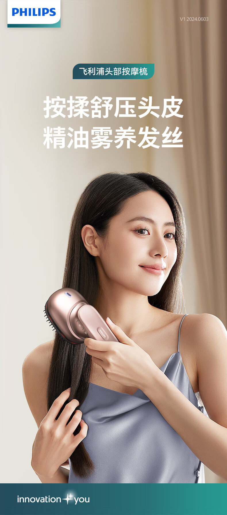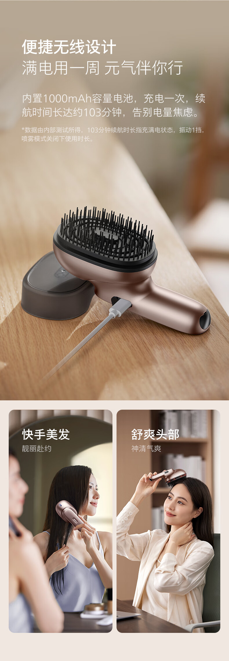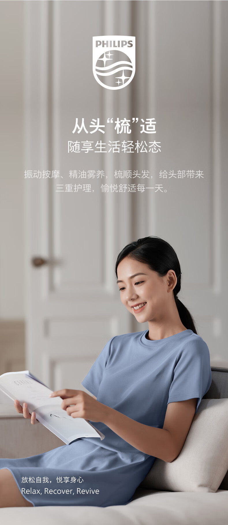 飞利浦(PHILIPS)按摩梳 升级版头皮家用按摩器 无线便携高频微震按摩 头皮护发护理柔顺可雾化精油 伴手礼物