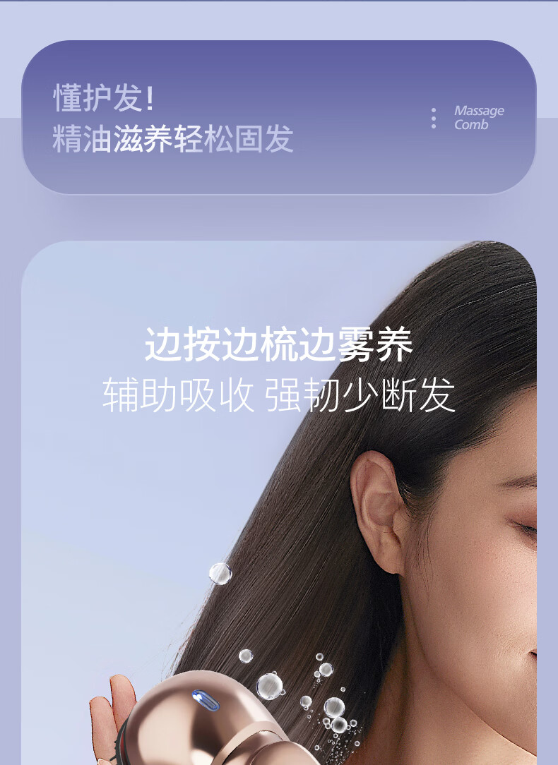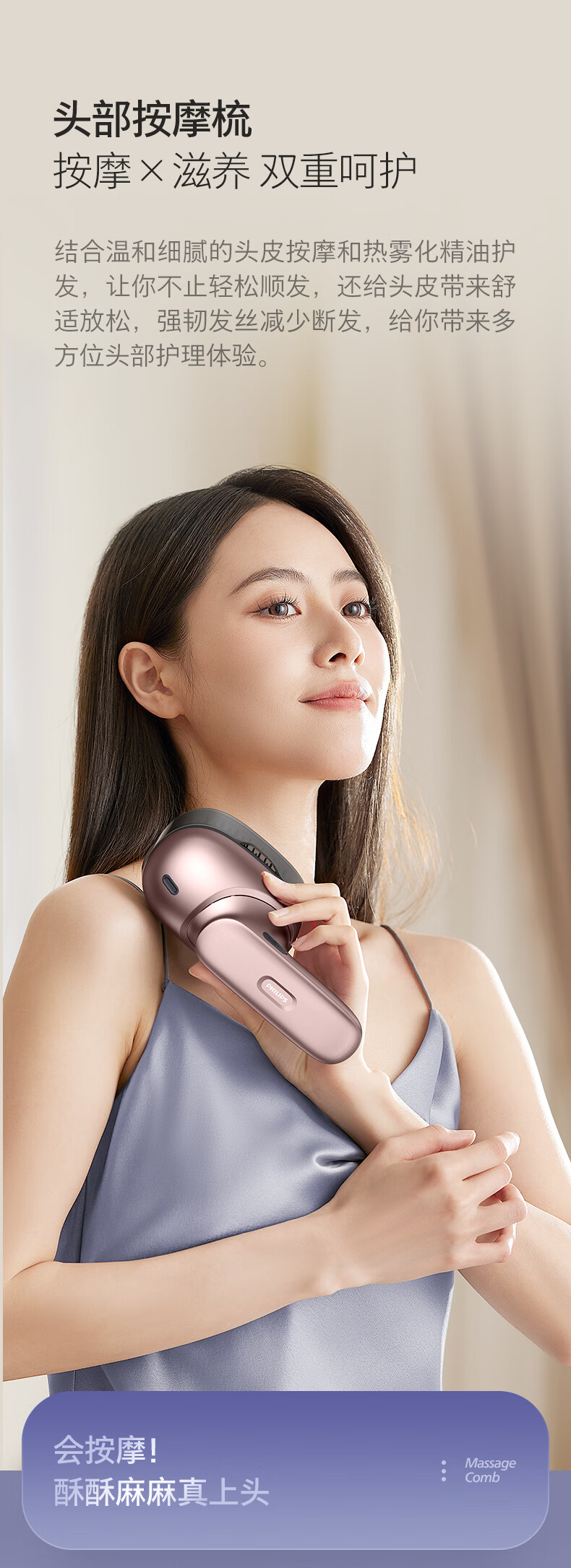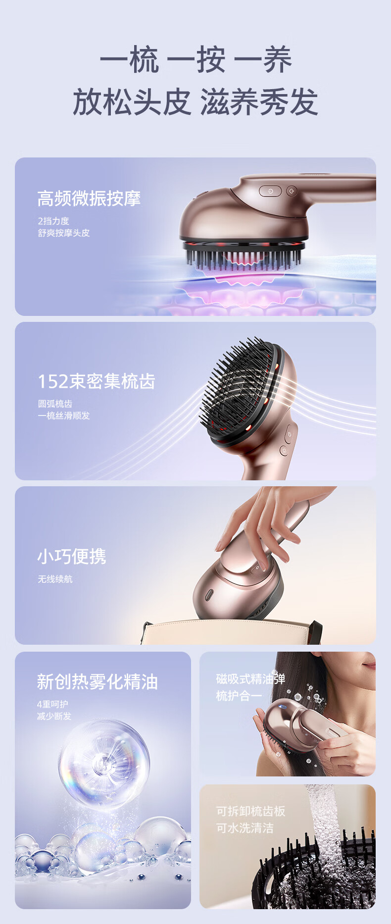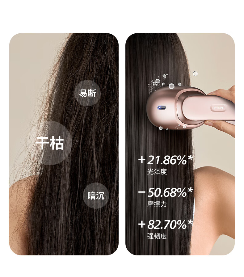 飞利浦(PHILIPS)按摩梳 升级版头皮家用按摩器 无线便携高频微震按摩 头皮护发护理柔顺可雾化精油 伴手礼物