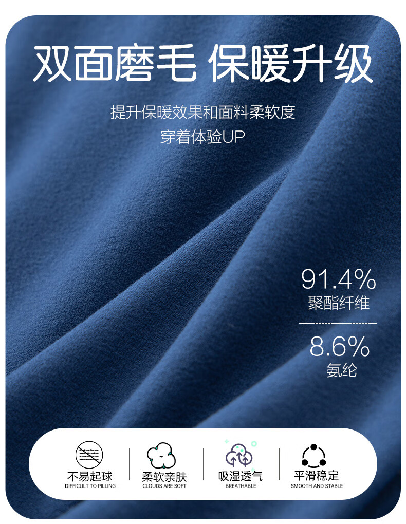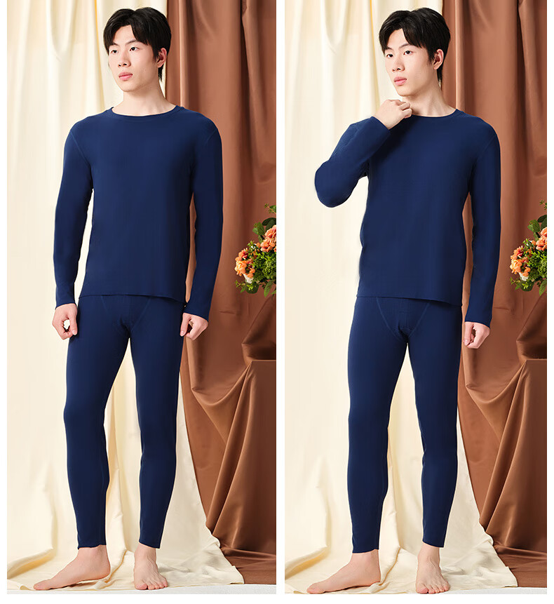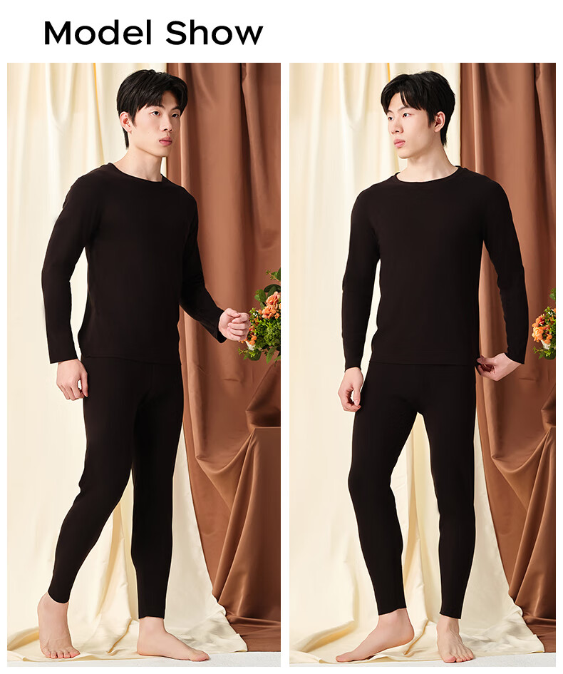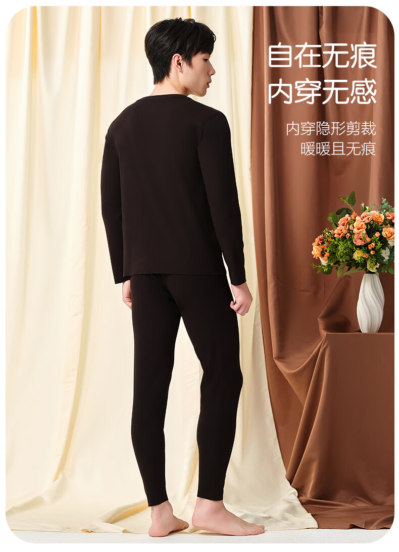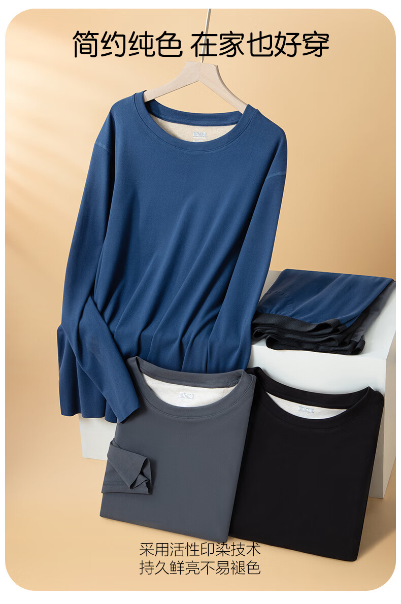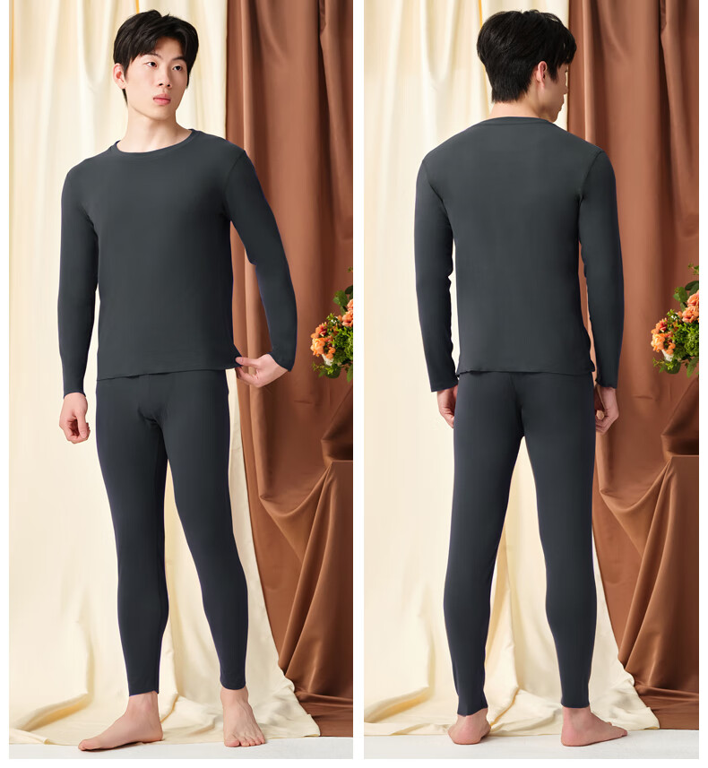 宜而爽【含山羊绒蚕丝】7A抑菌防螨男女保暖内衣套装无痕磨毛秋衣秋裤 男款铁灰 XL(女170/男175)