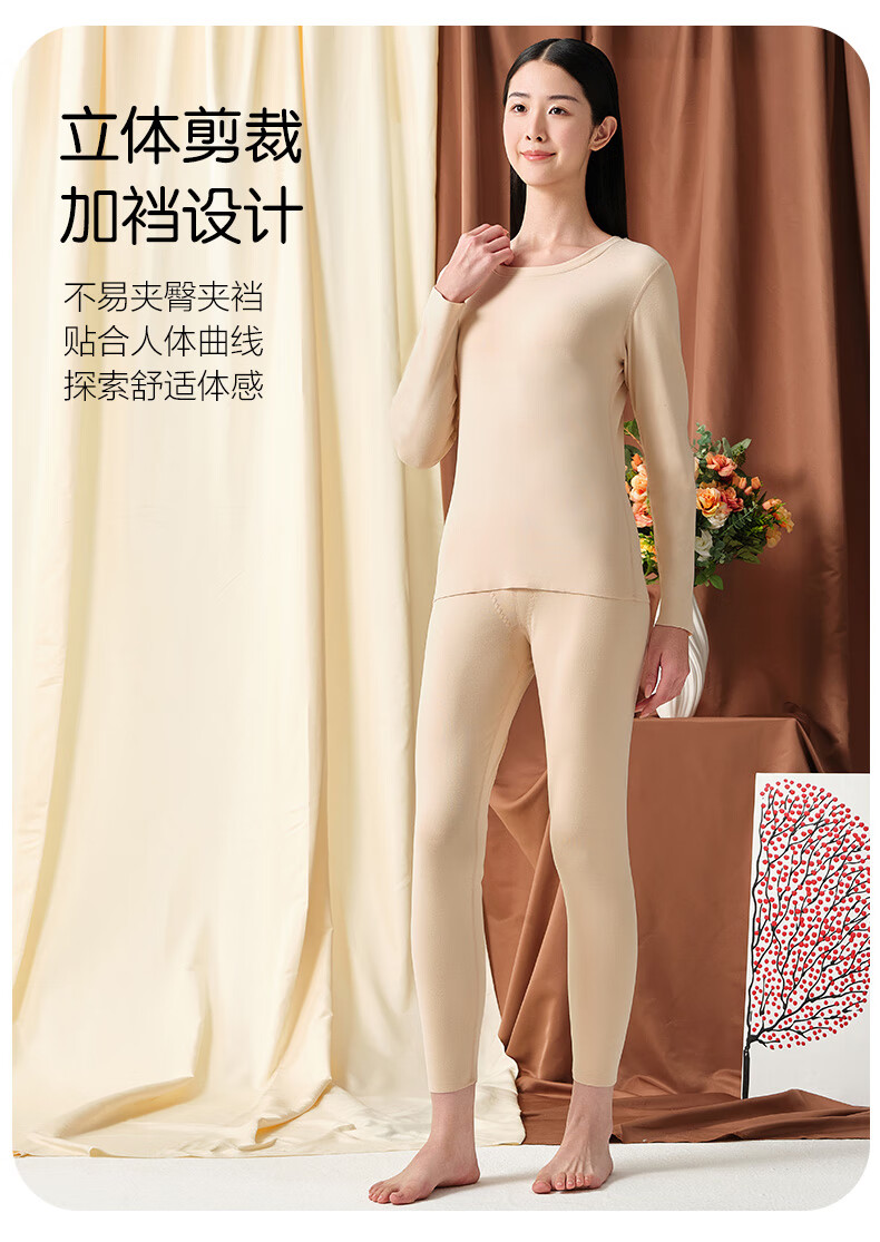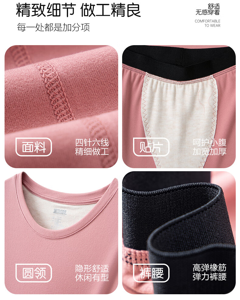 红豆内衣女7A抑菌升级秋衣秋裤纯棉套装圆领薄款打底保暖内衣