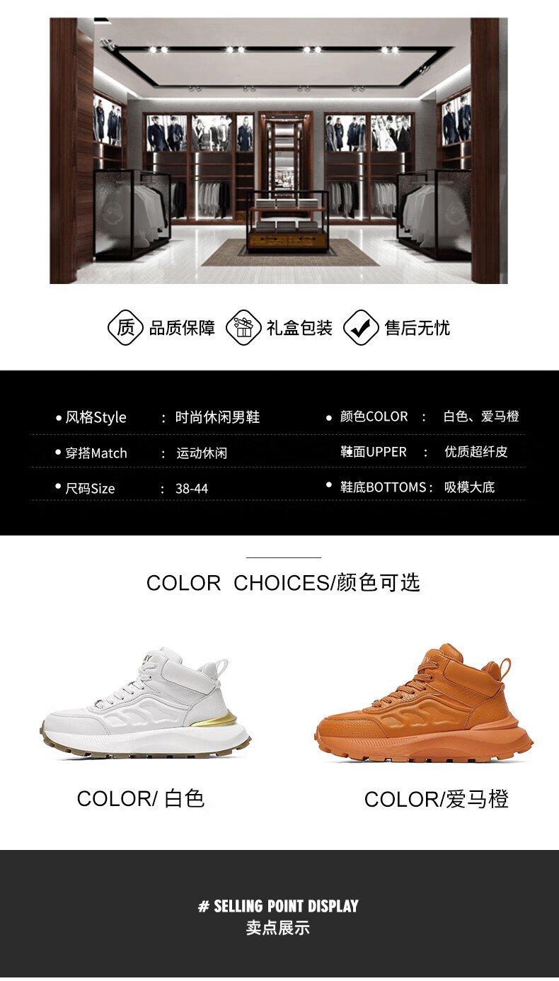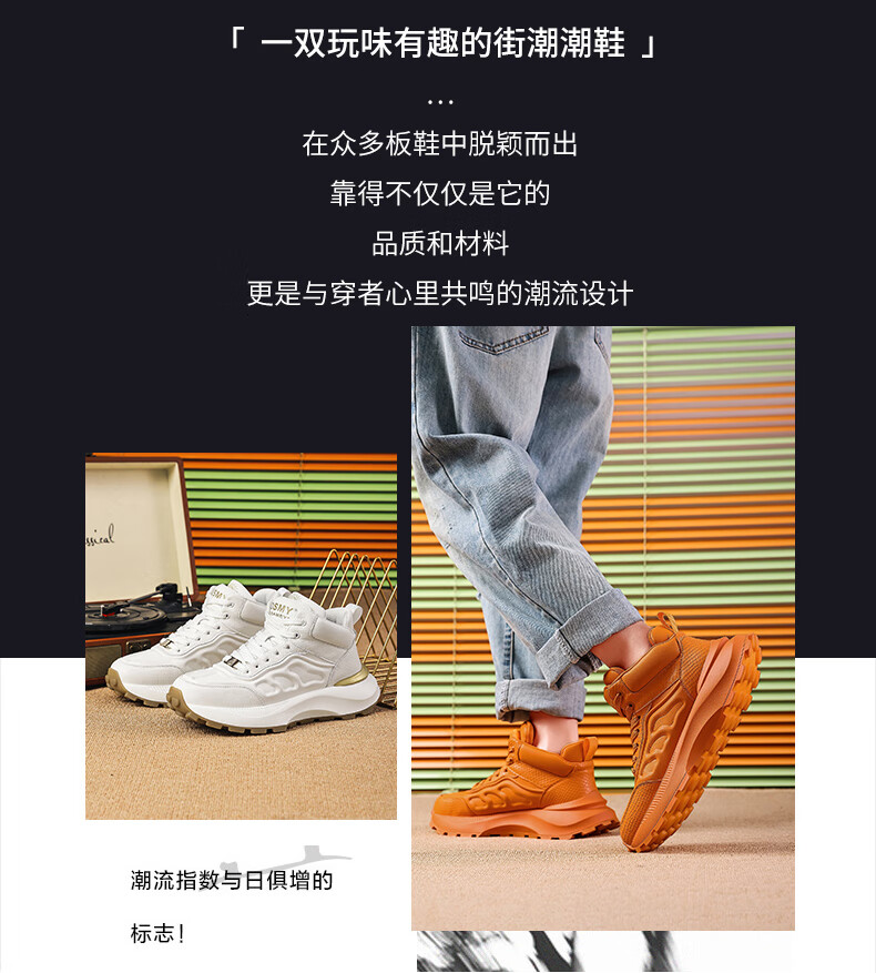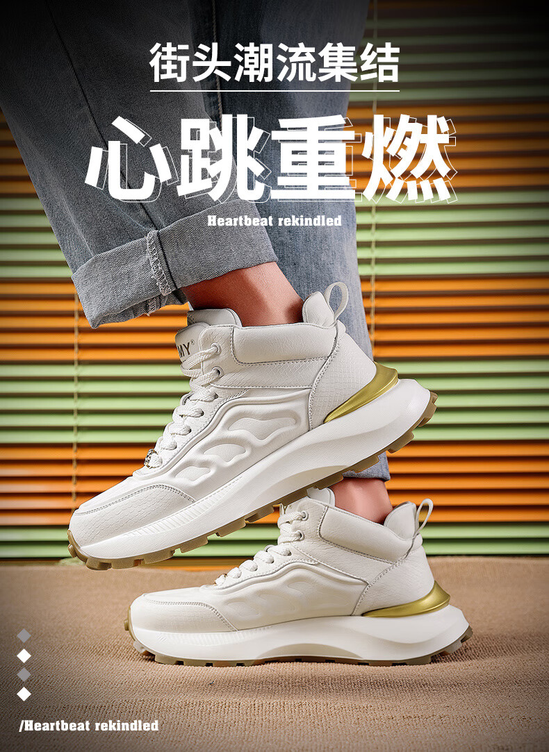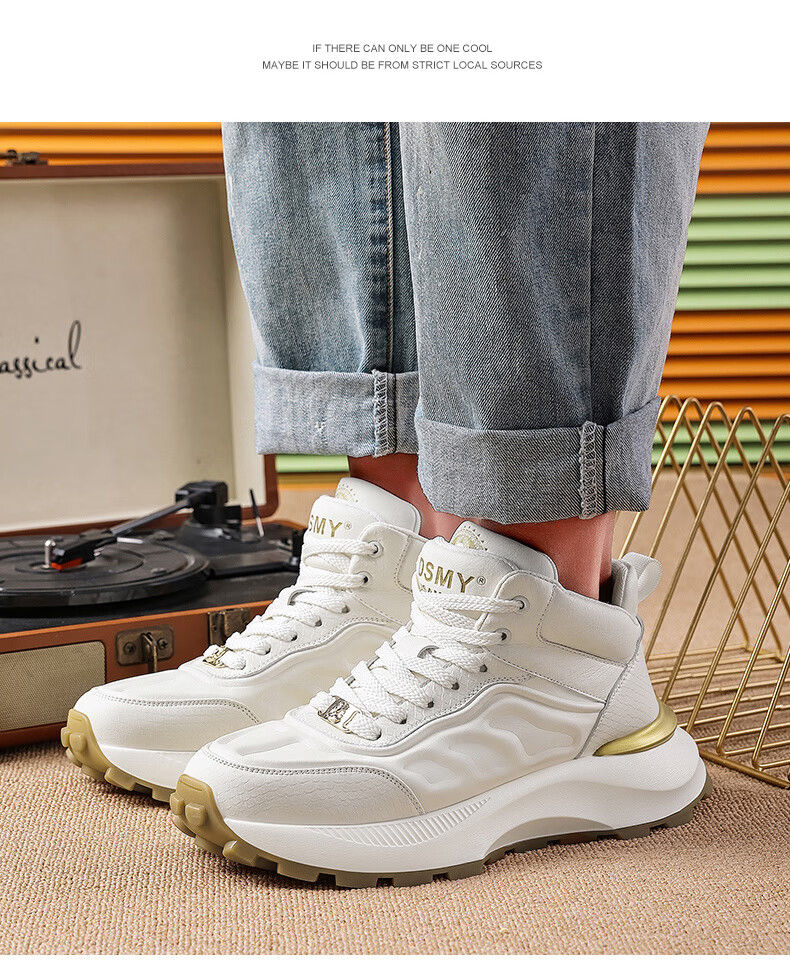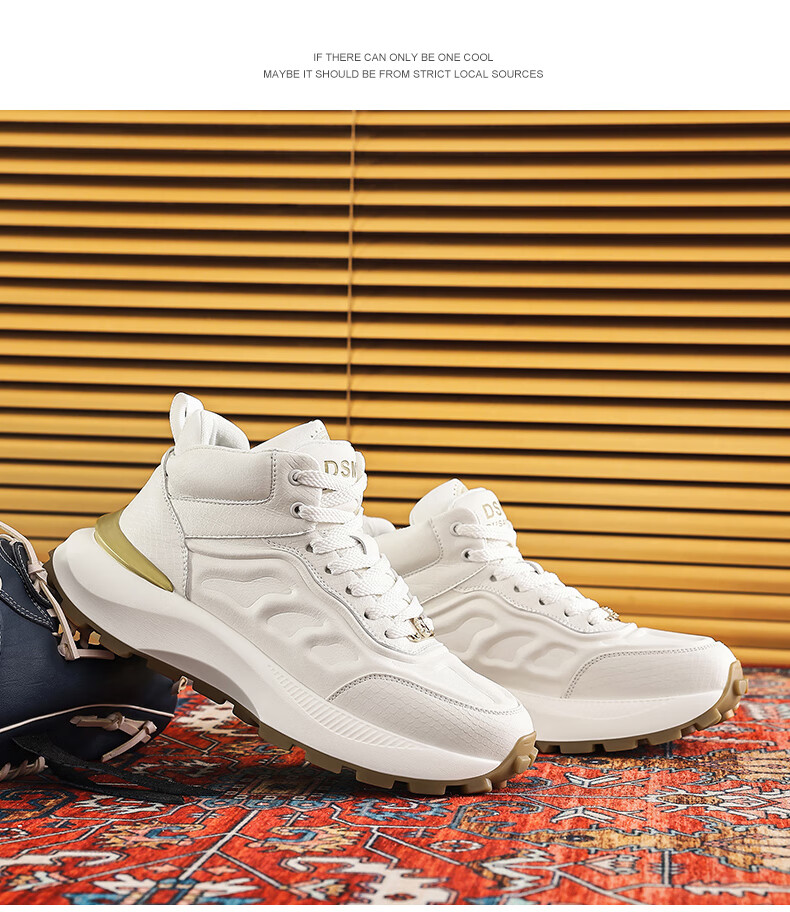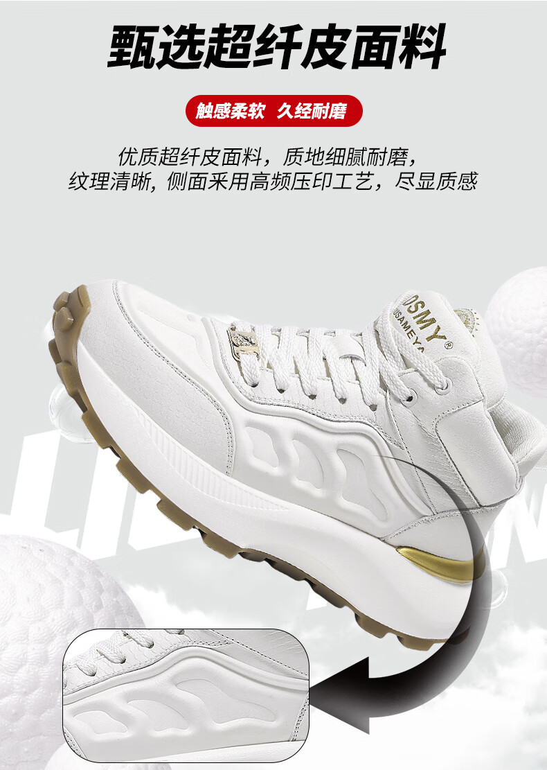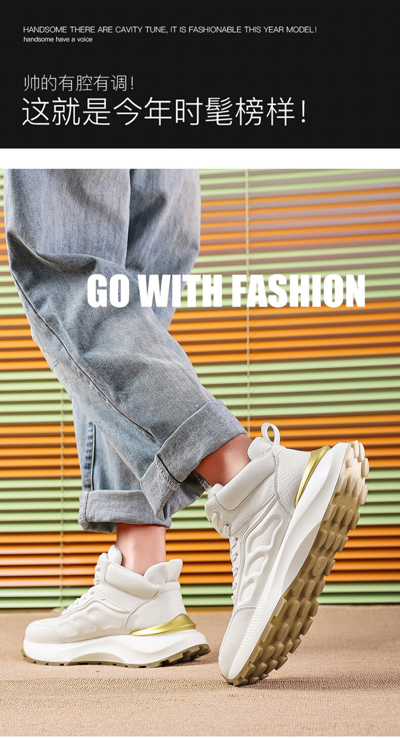 杜莎米娅2025春季新款高帮休闲鞋防风防水保暖厚底增高双鞋舌情侣小白鞋 白色 42