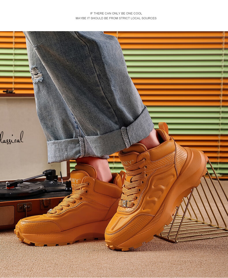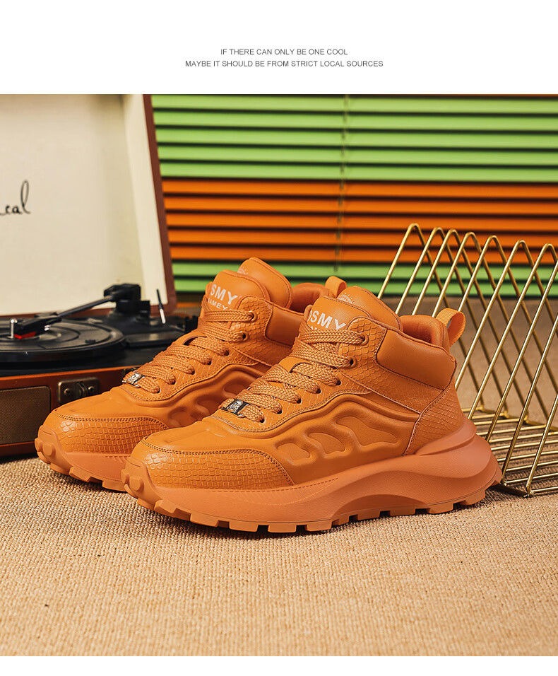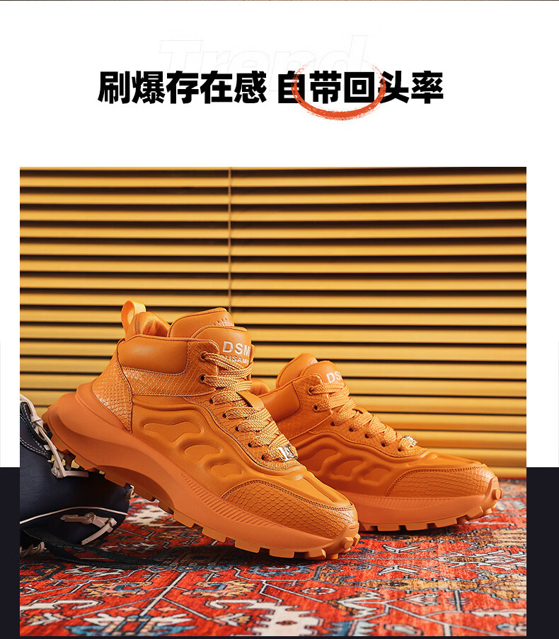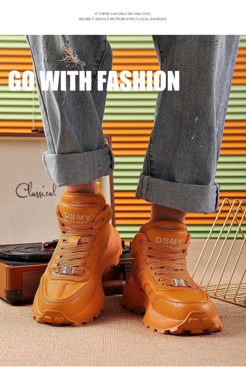 SKYANSELM轻奢男鞋夏季新款透气休闲鞋男增高运动鞋男百搭老爹鞋时尚鞋子男 白酒红-增高款 40