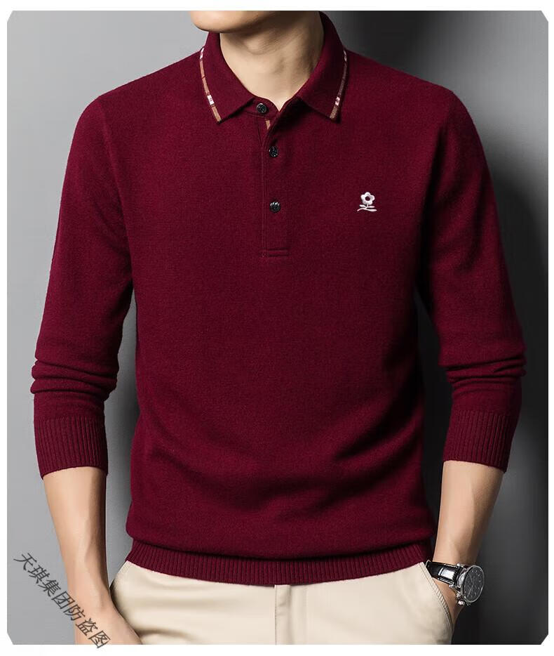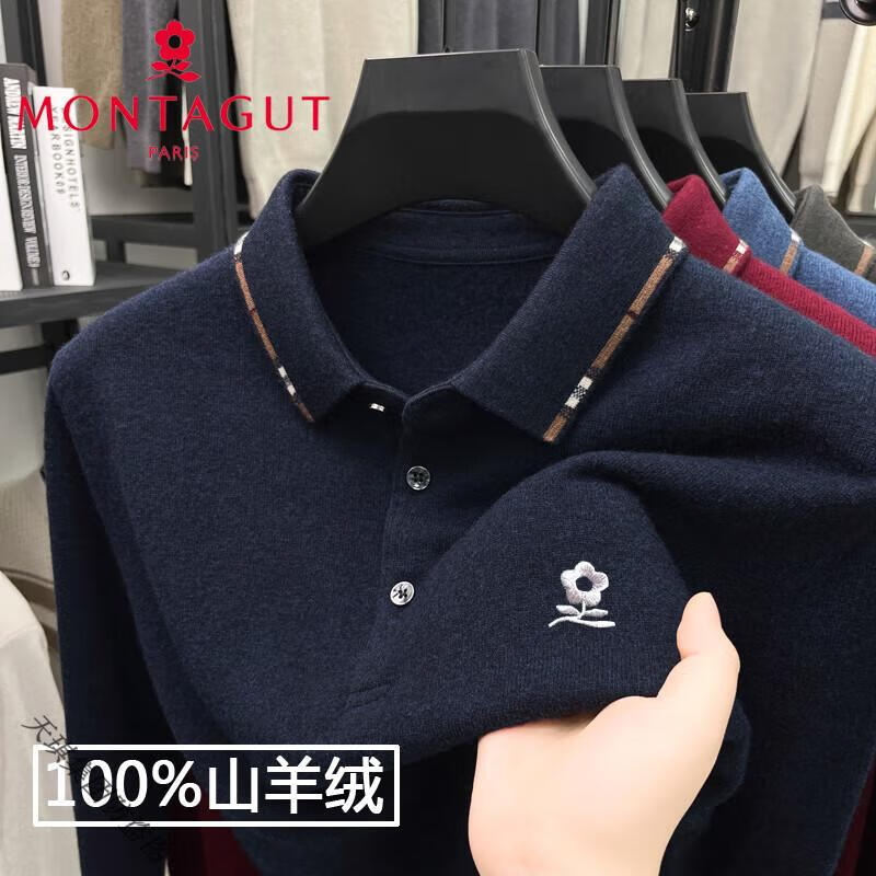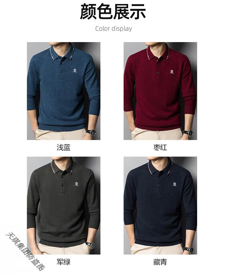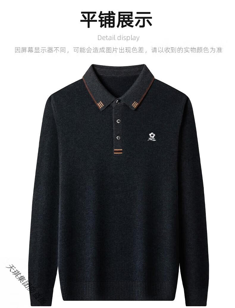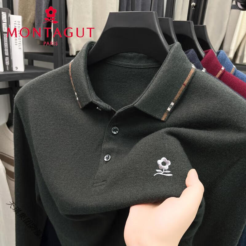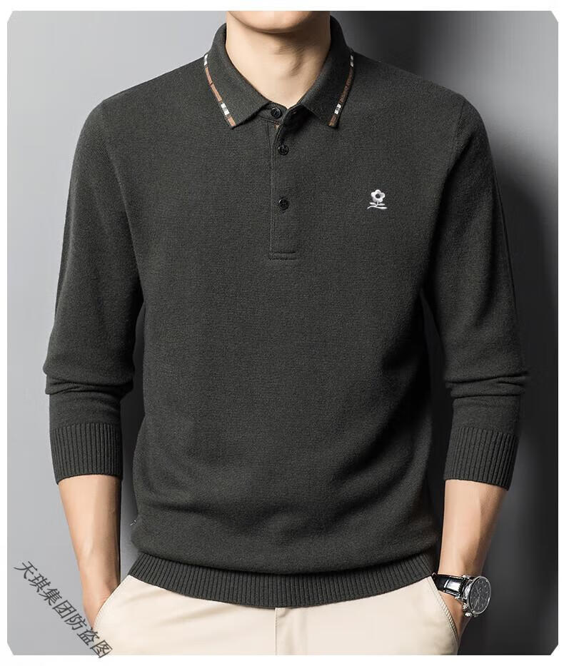 梦特娇春秋100纯山羊绒衫男中年爸爸装翻领长袖打底羊毛Polo衫T恤 98659军绿 3XL 190/104A