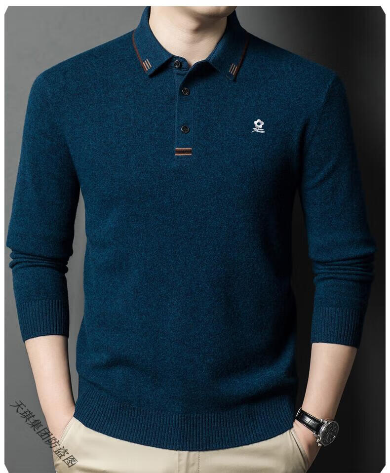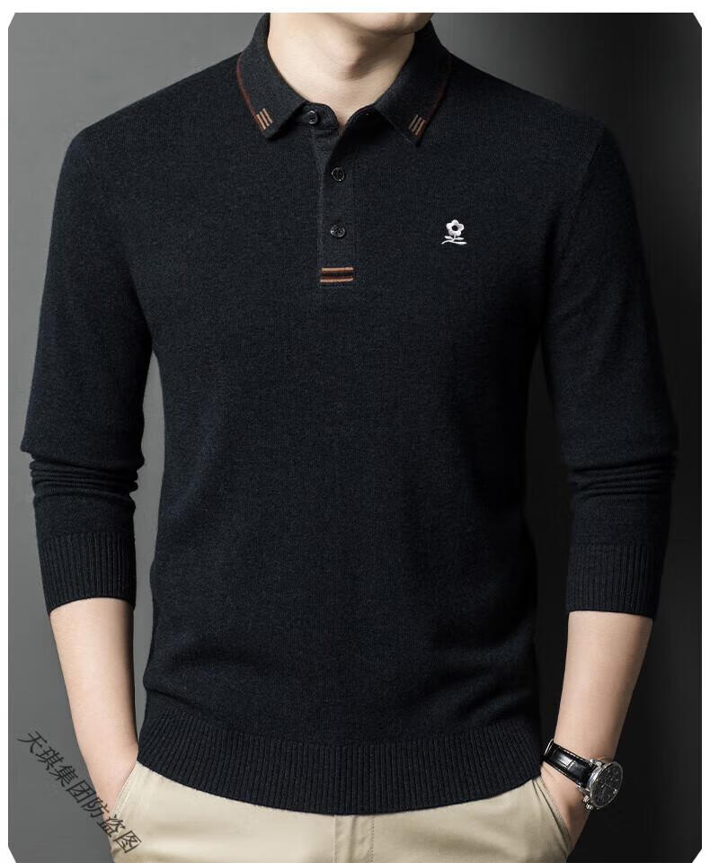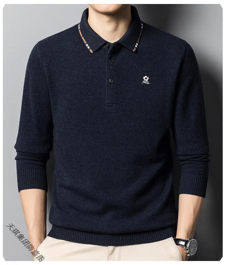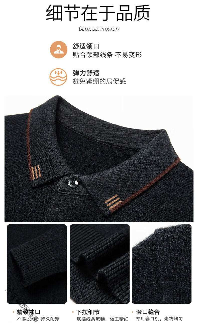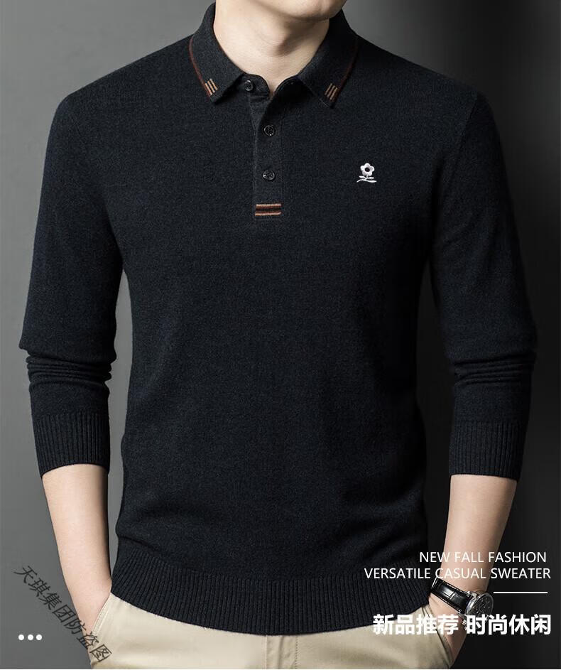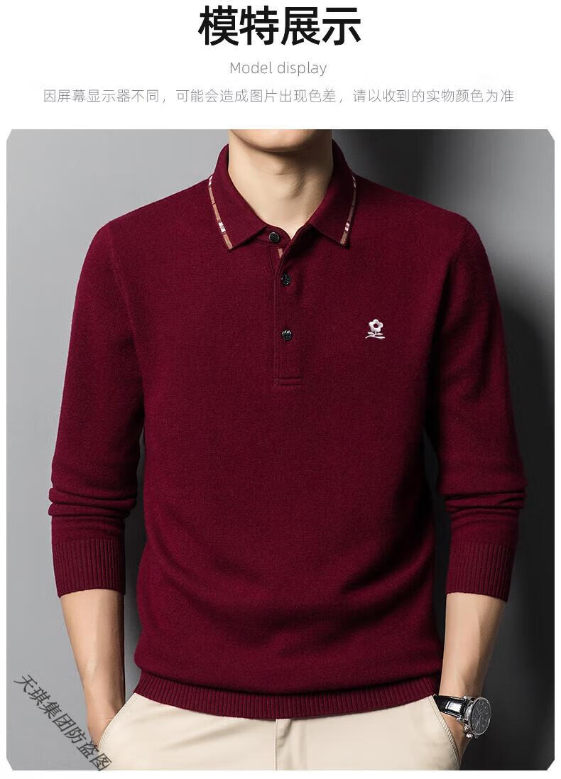 梦特娇春秋100纯山羊绒衫男中年爸爸装翻领长袖打底羊毛Polo衫T恤 98659军绿 3XL 190/104A